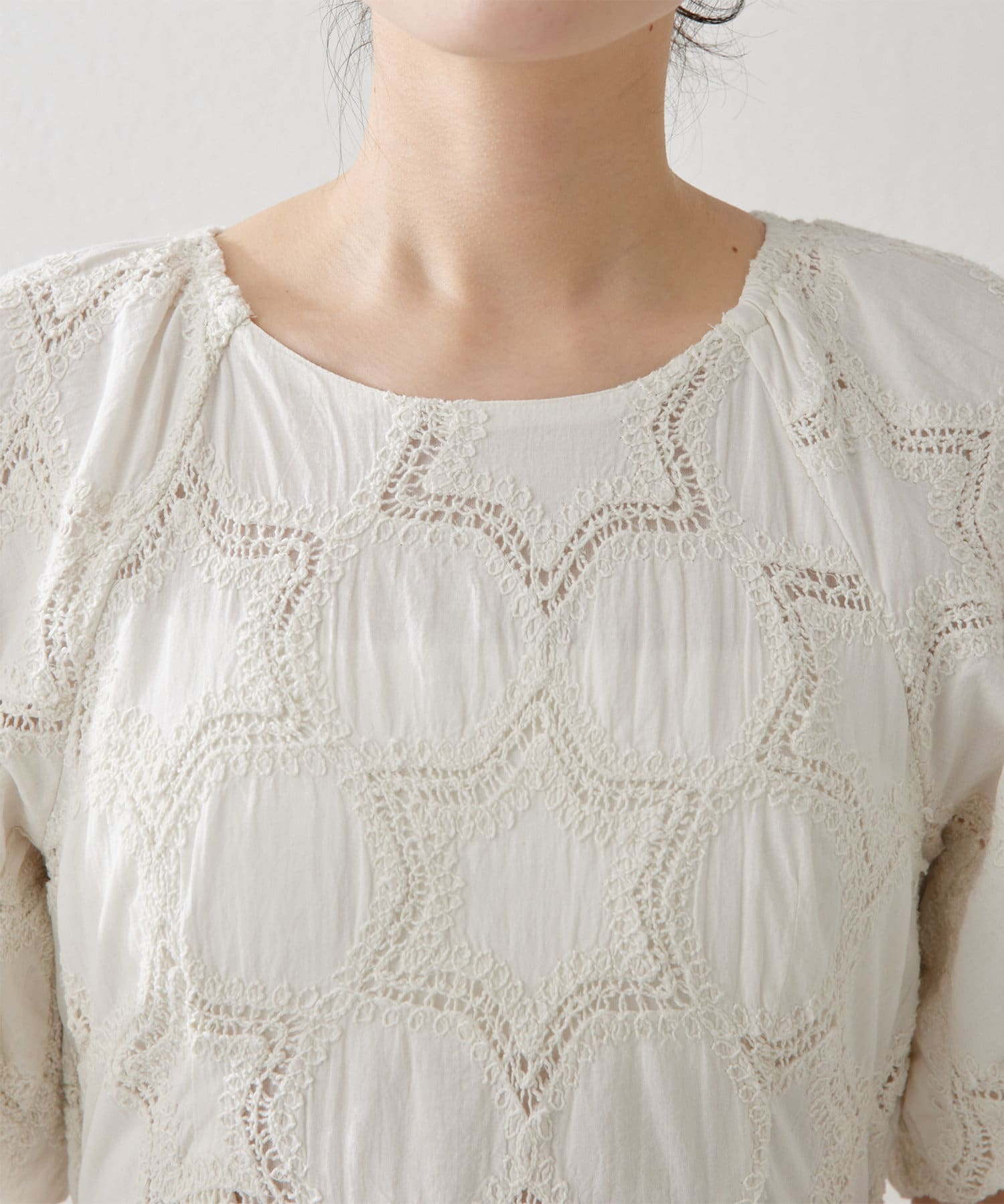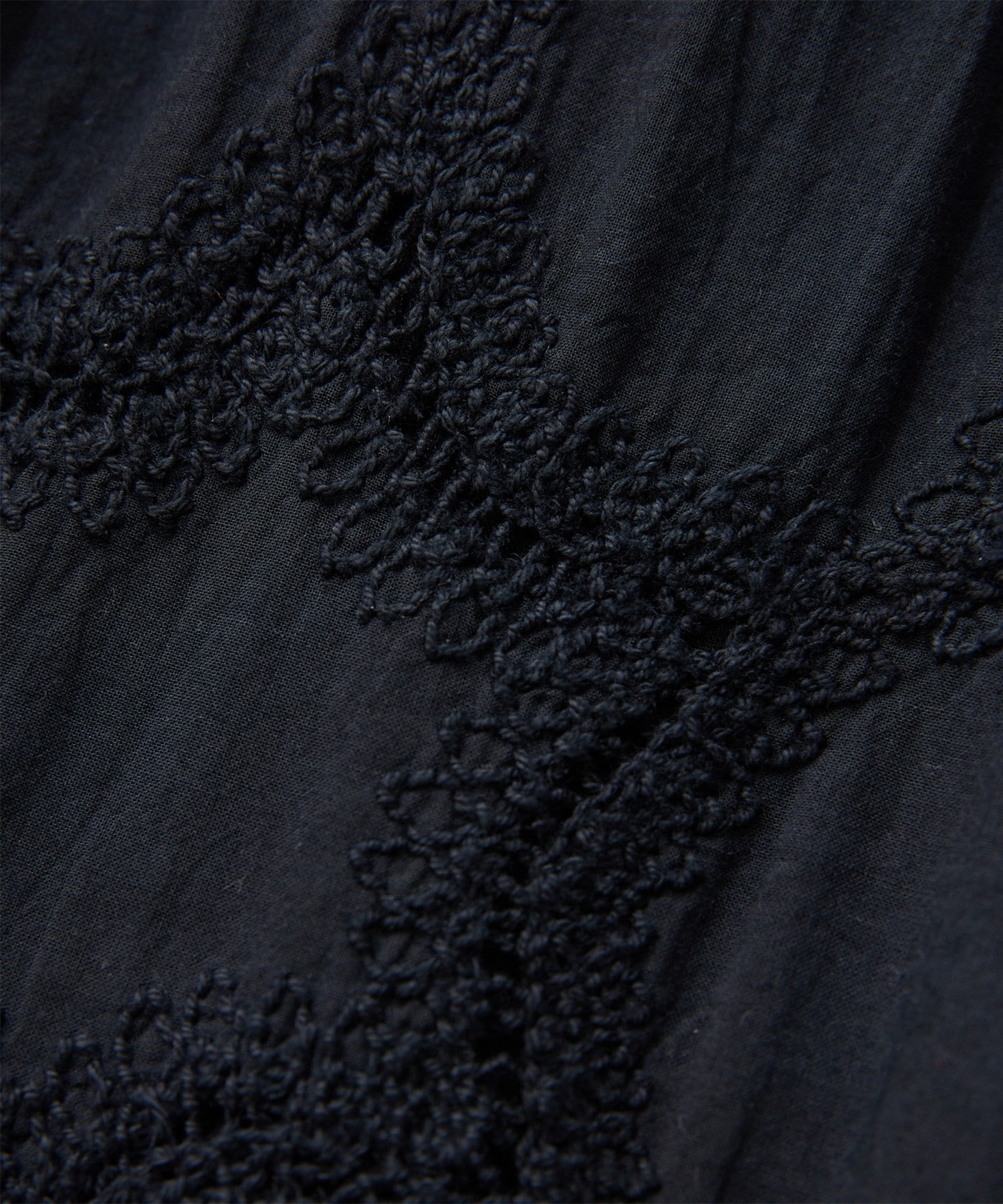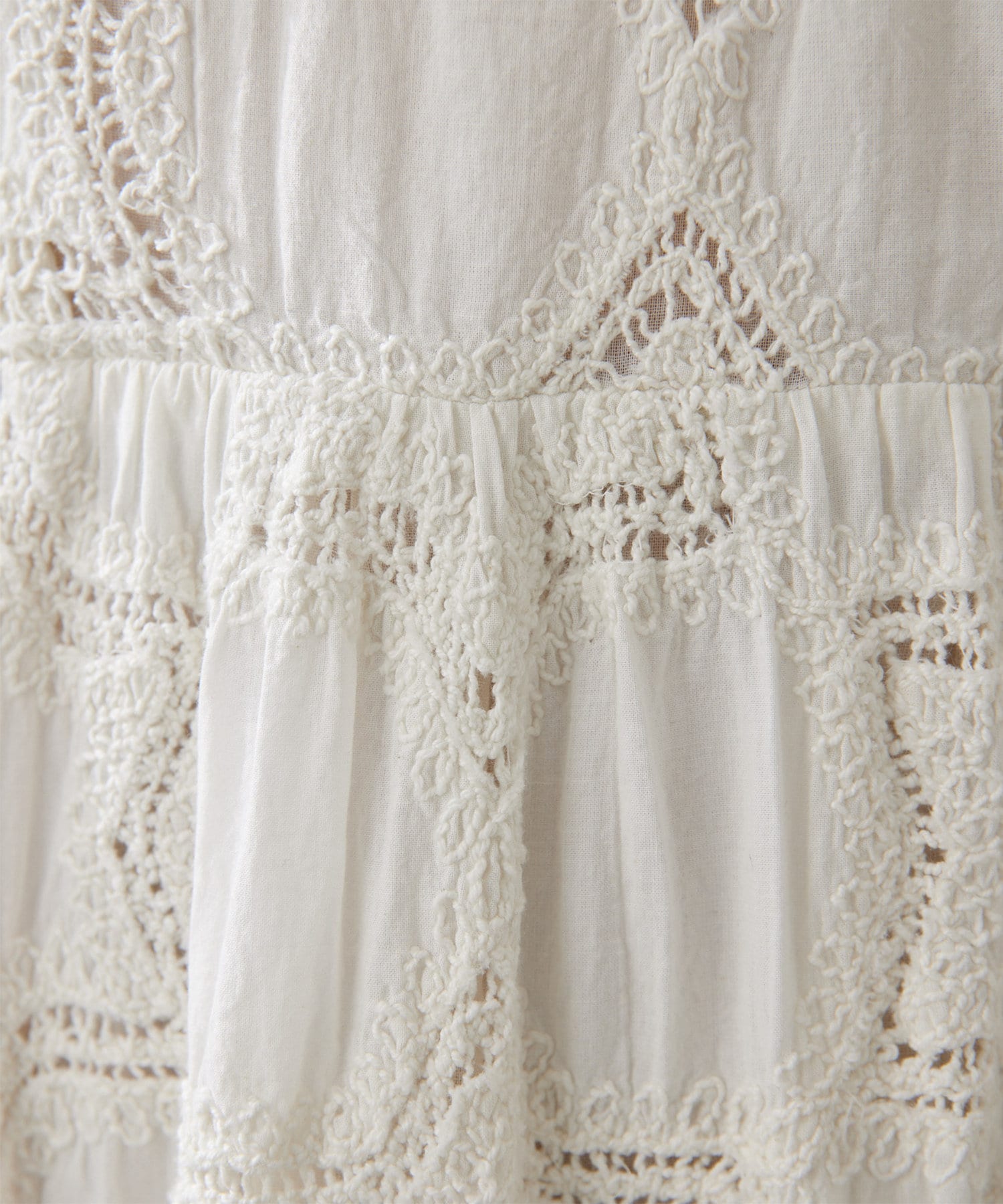 コットン生地に立体的な刺繍をふんだんに入れた素材。