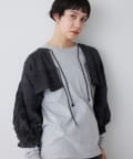 ■スリーブ部分には生地の上から大柄の機械刺繍を施し、部分的に生地をカットすることで立体感のあるスカシのレース柄を表現。