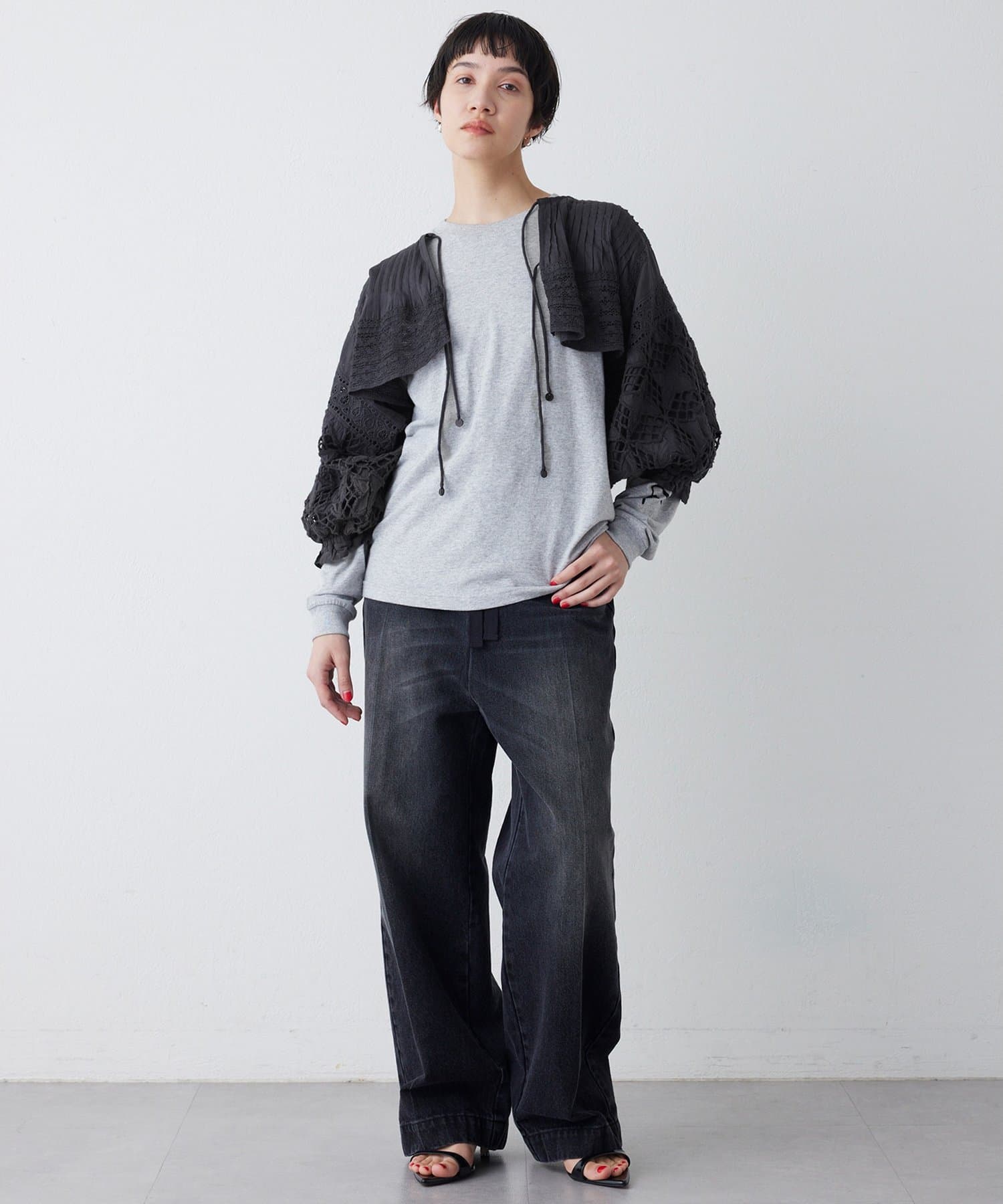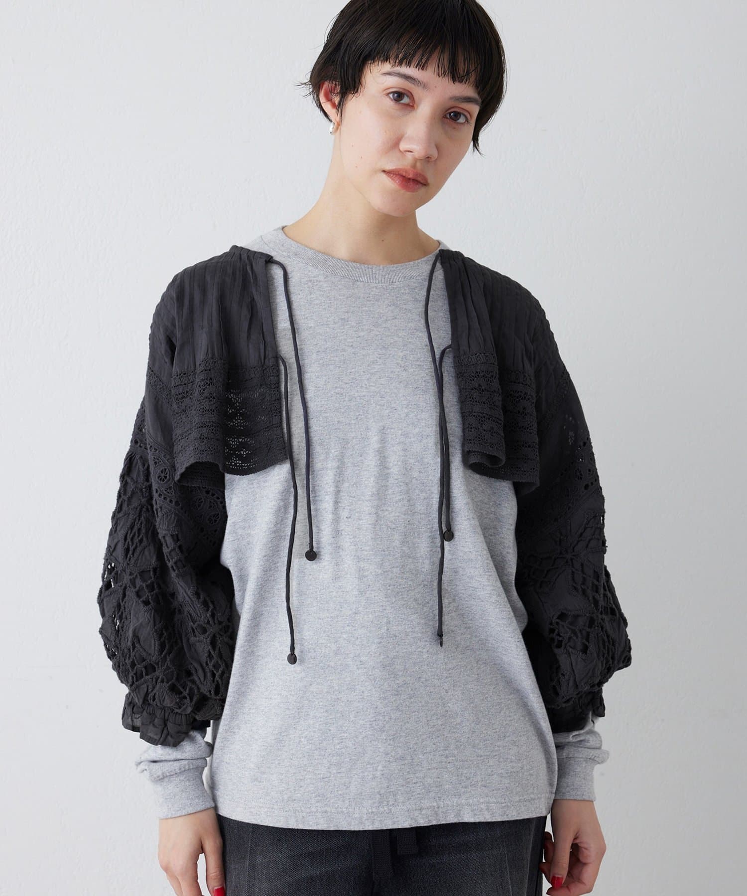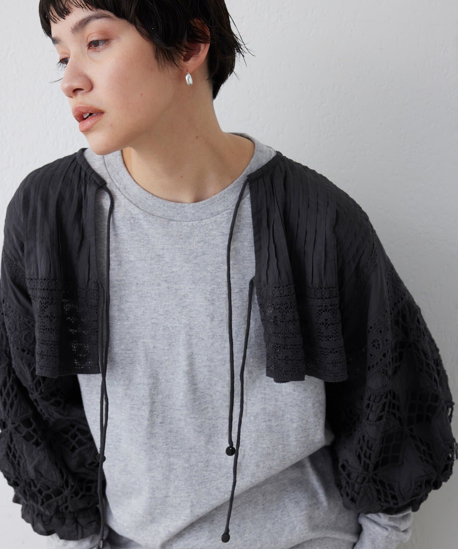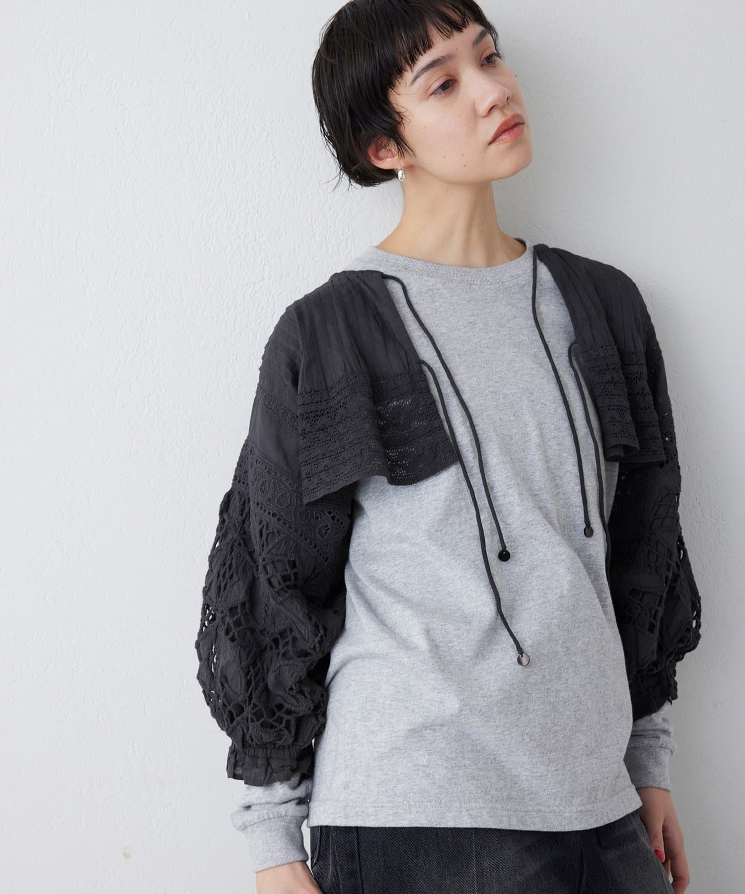 コーディネートに奥行きと抜け感をプラスするレースボレロ