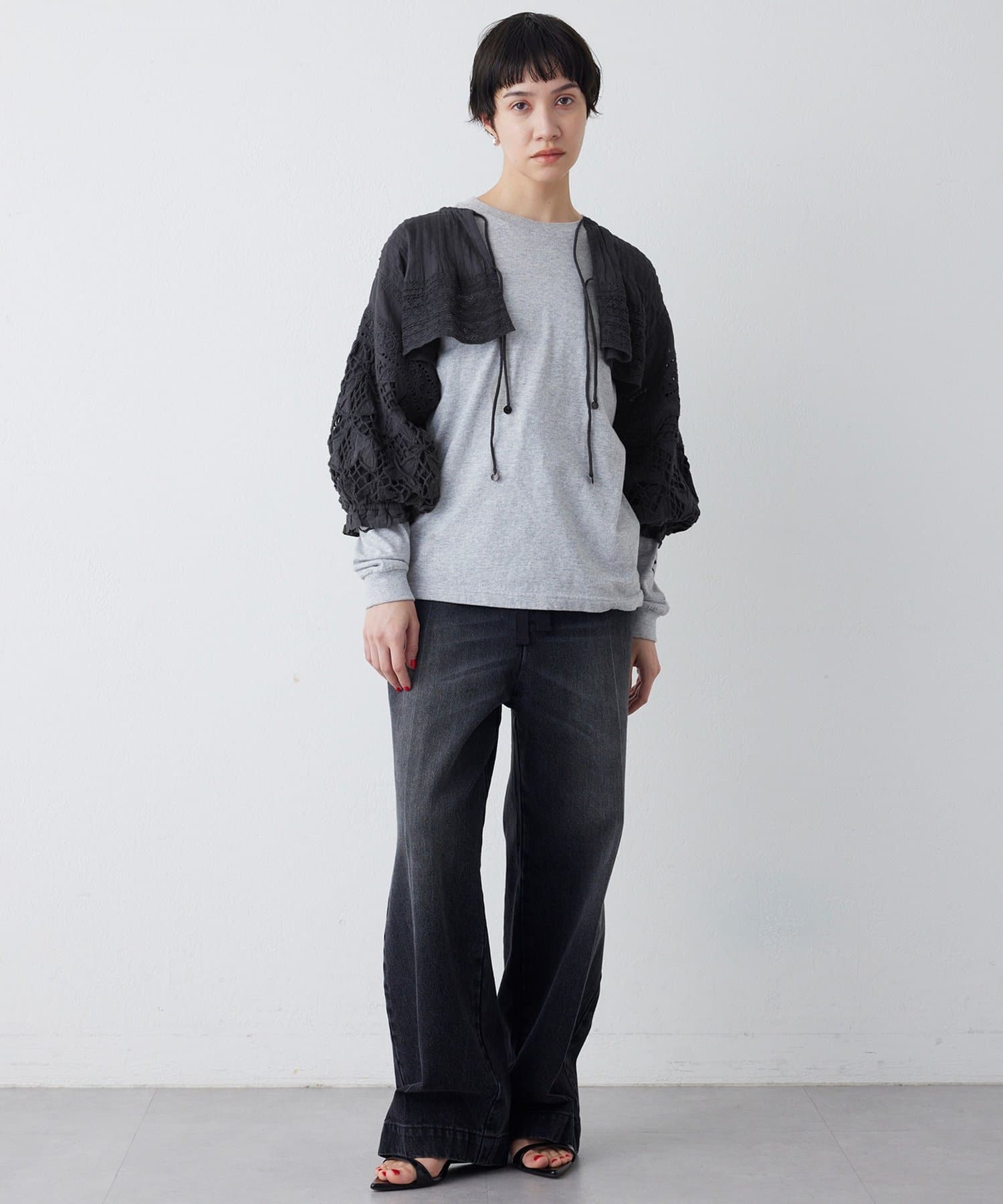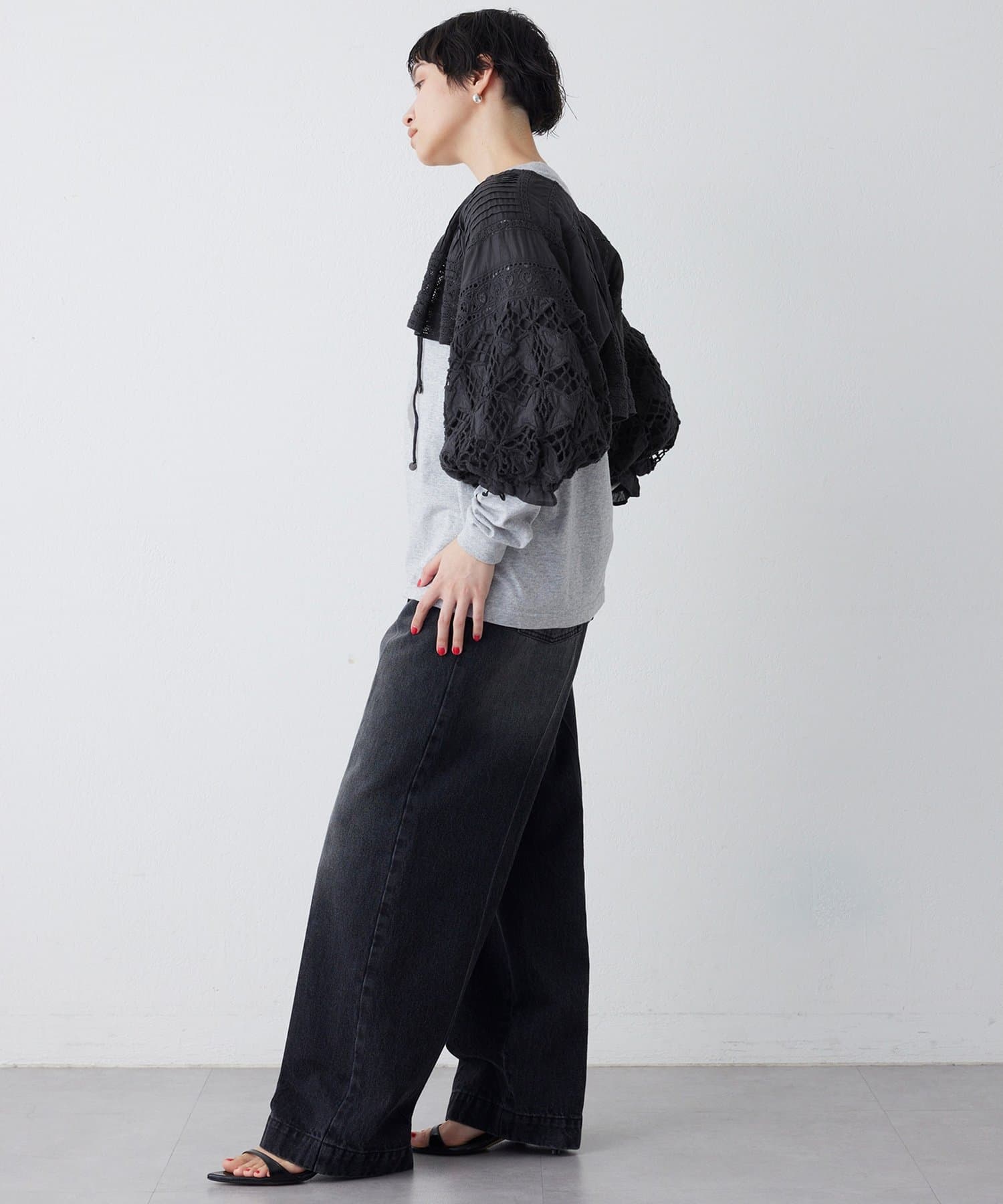 ■立体感のあるスリーブデザインが、羽織るだけでスタイリングに華やぎを添える一枚。