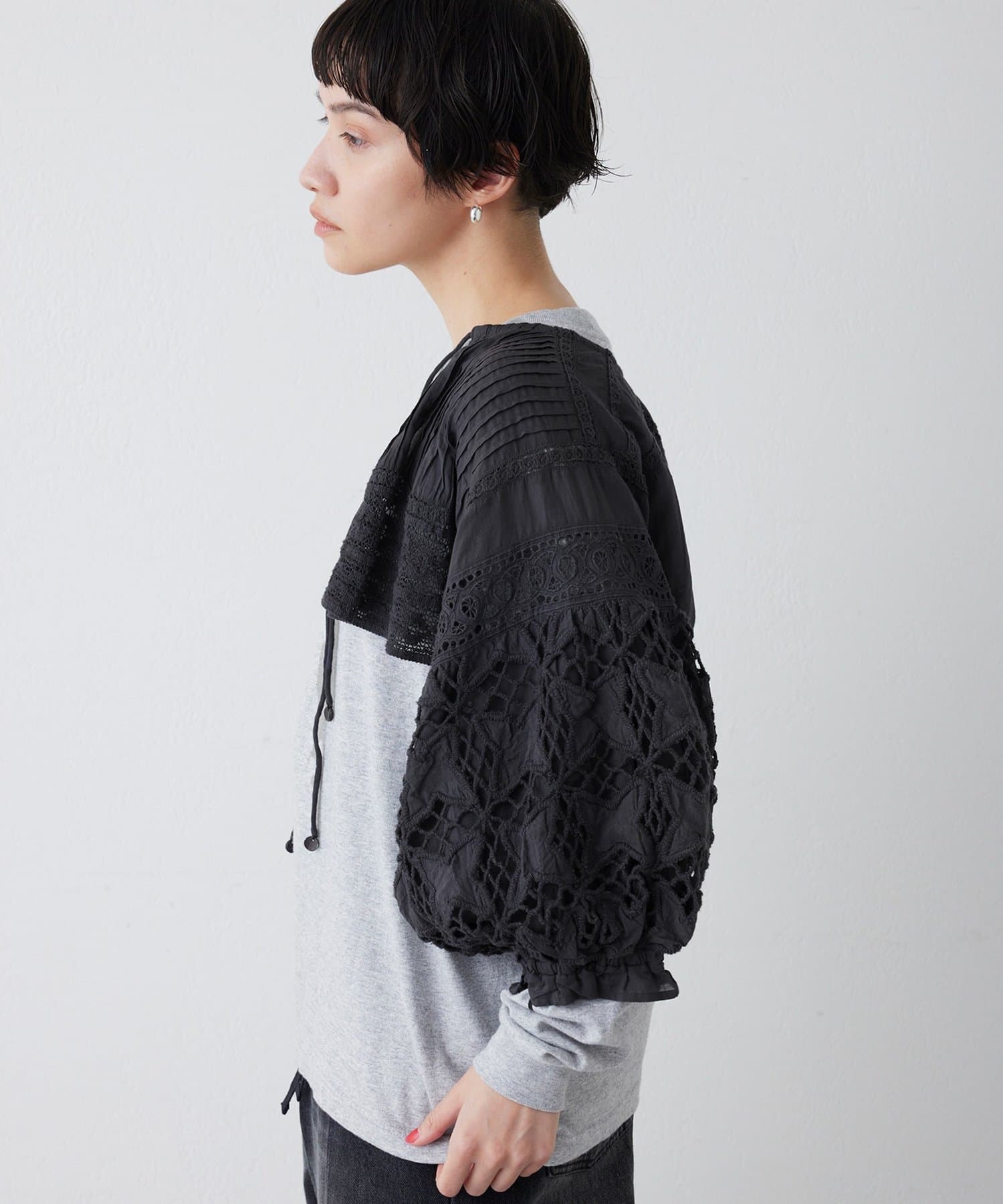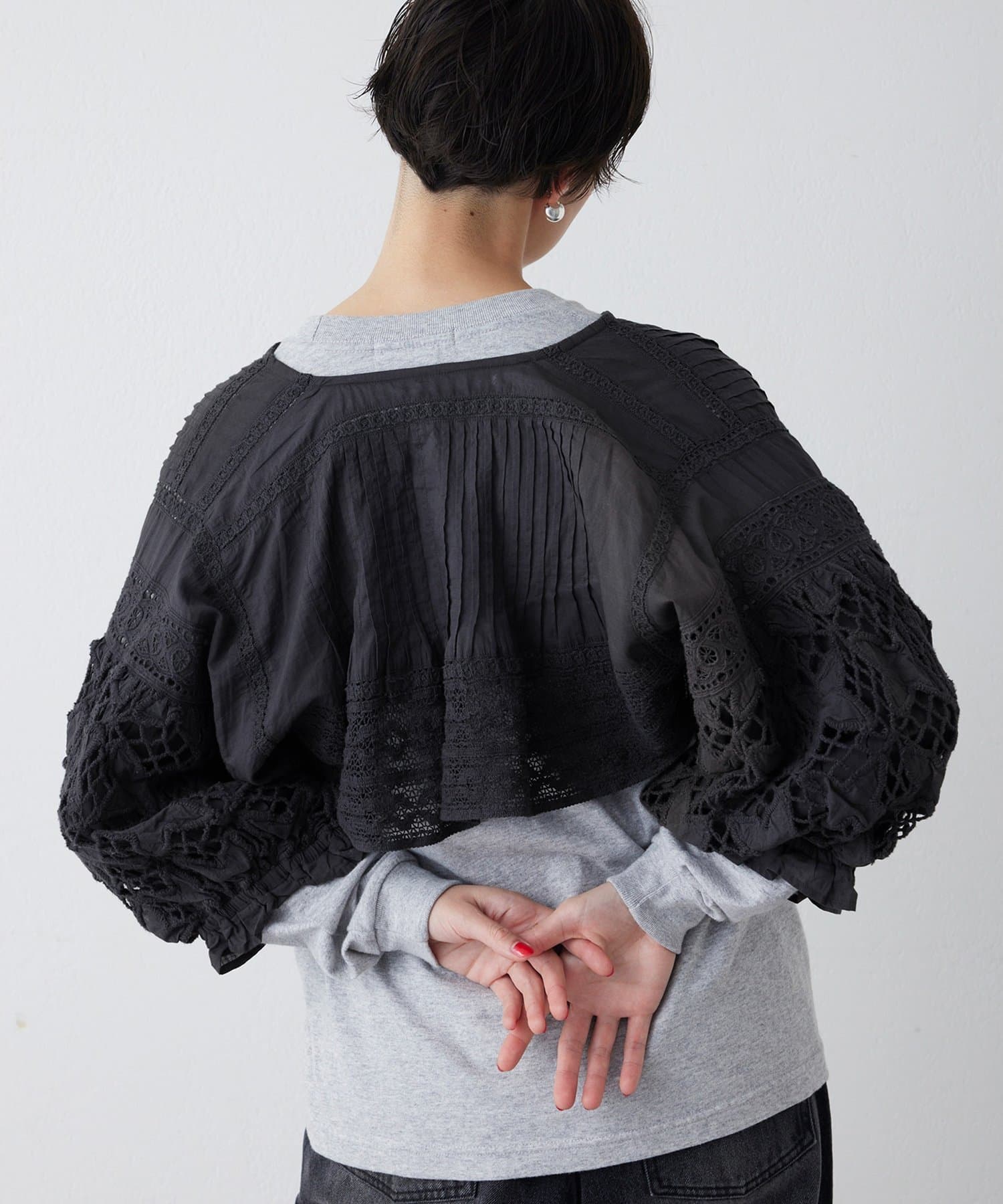 ■異なる表情のレースを組み合わせた存在感のあるボレロ。