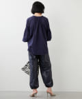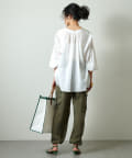 前後着用が可能なので、スキッパーを前にしてリラックス感のある表情を見せたり、スタンドカラーを前にしてバックの紐を結びポイントにしたりと、その日のコーディネイトに合わせて楽しむことができます。