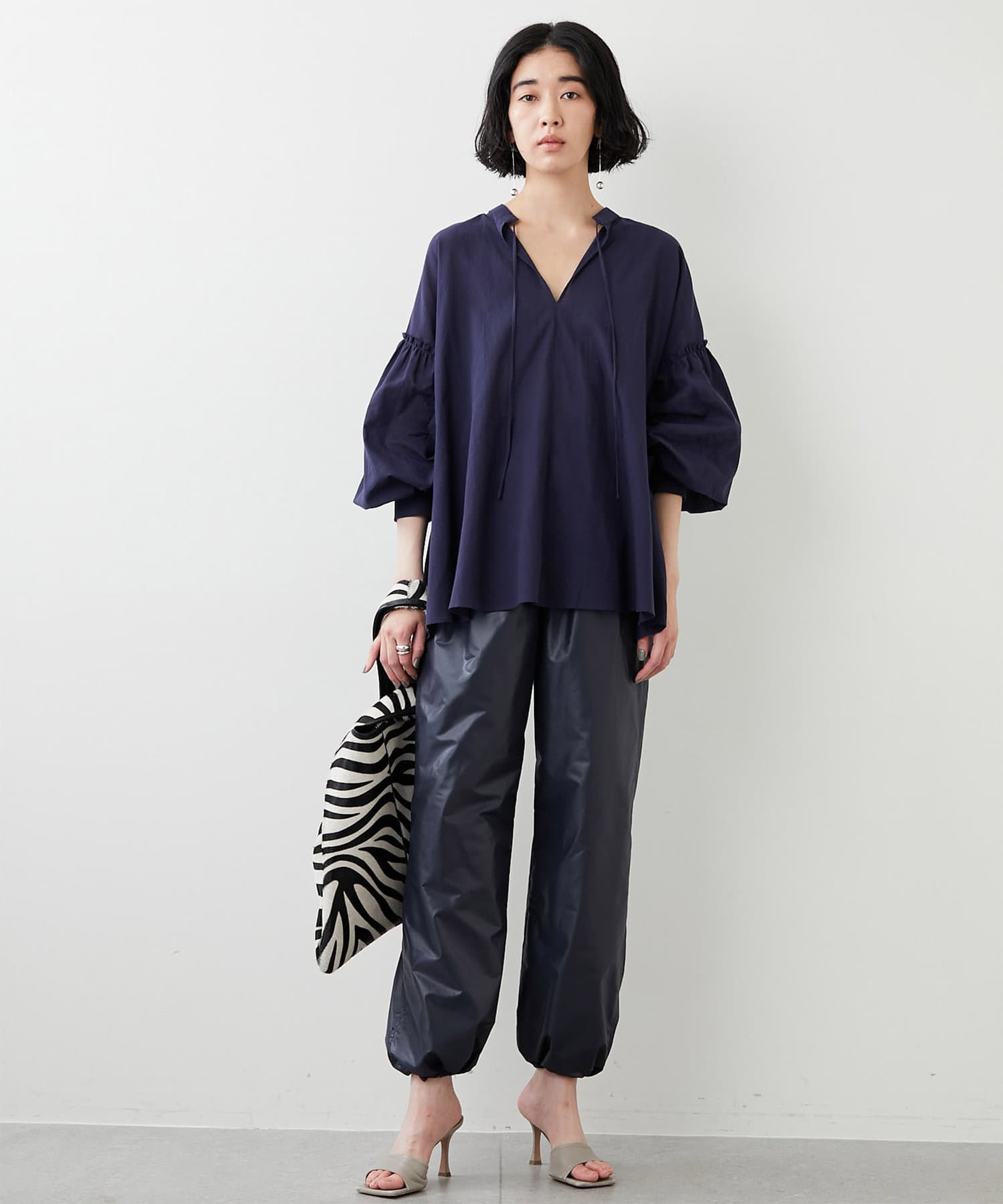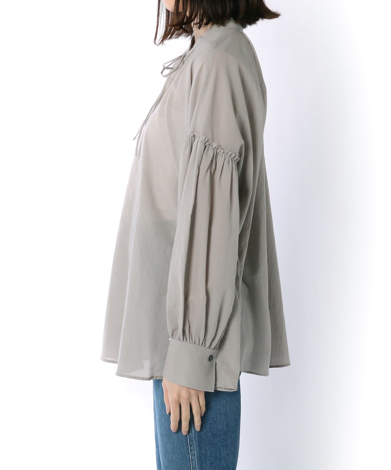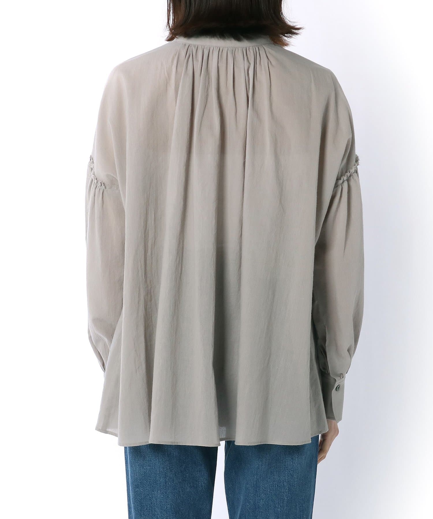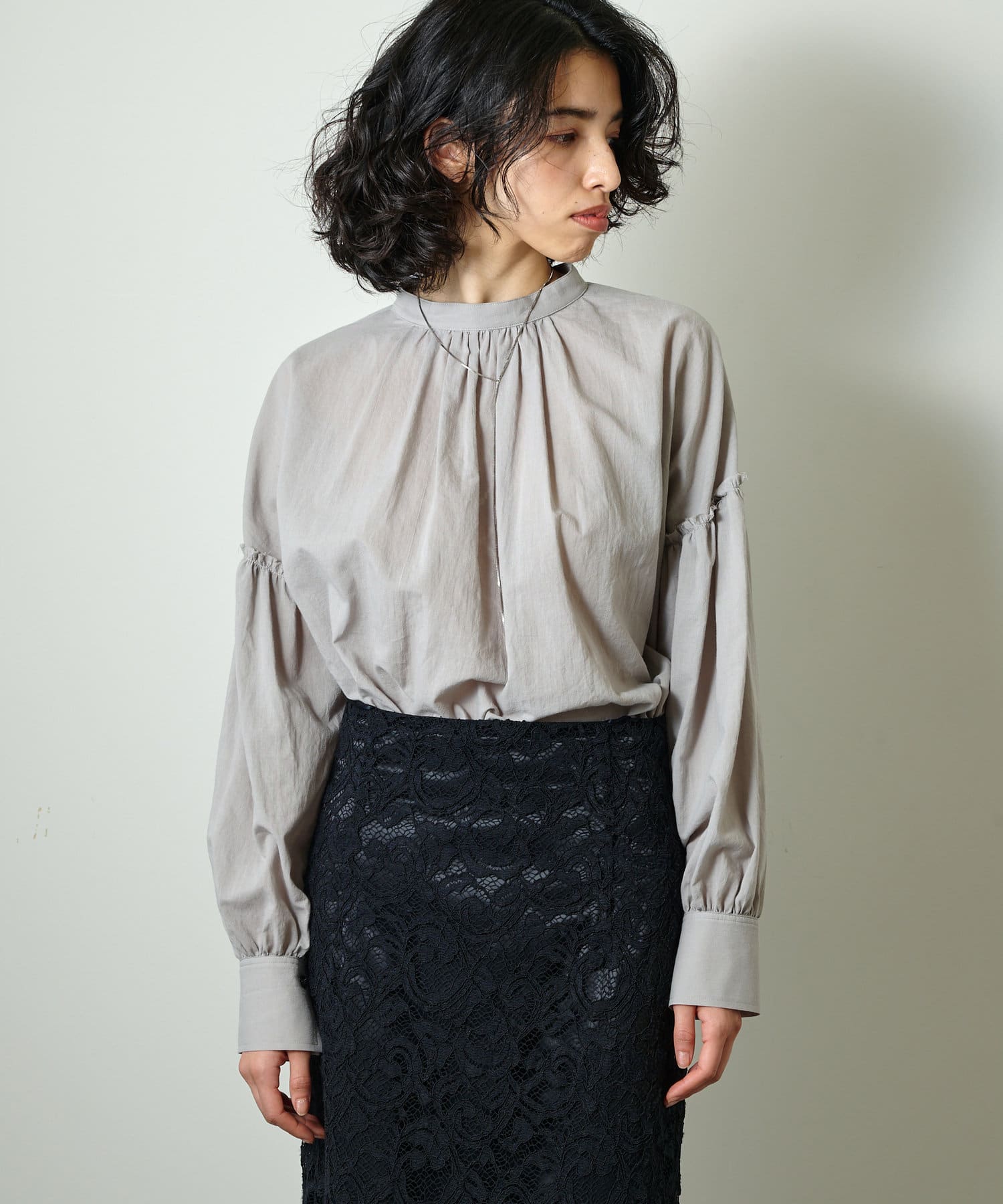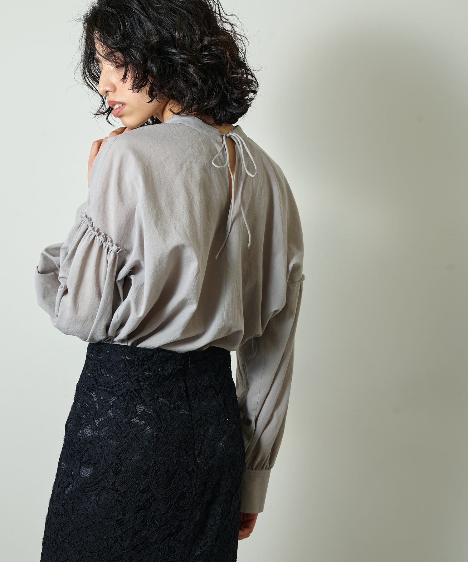 ふんわりと風をはらむような女性らしいシルエットのギャザーブラウス。