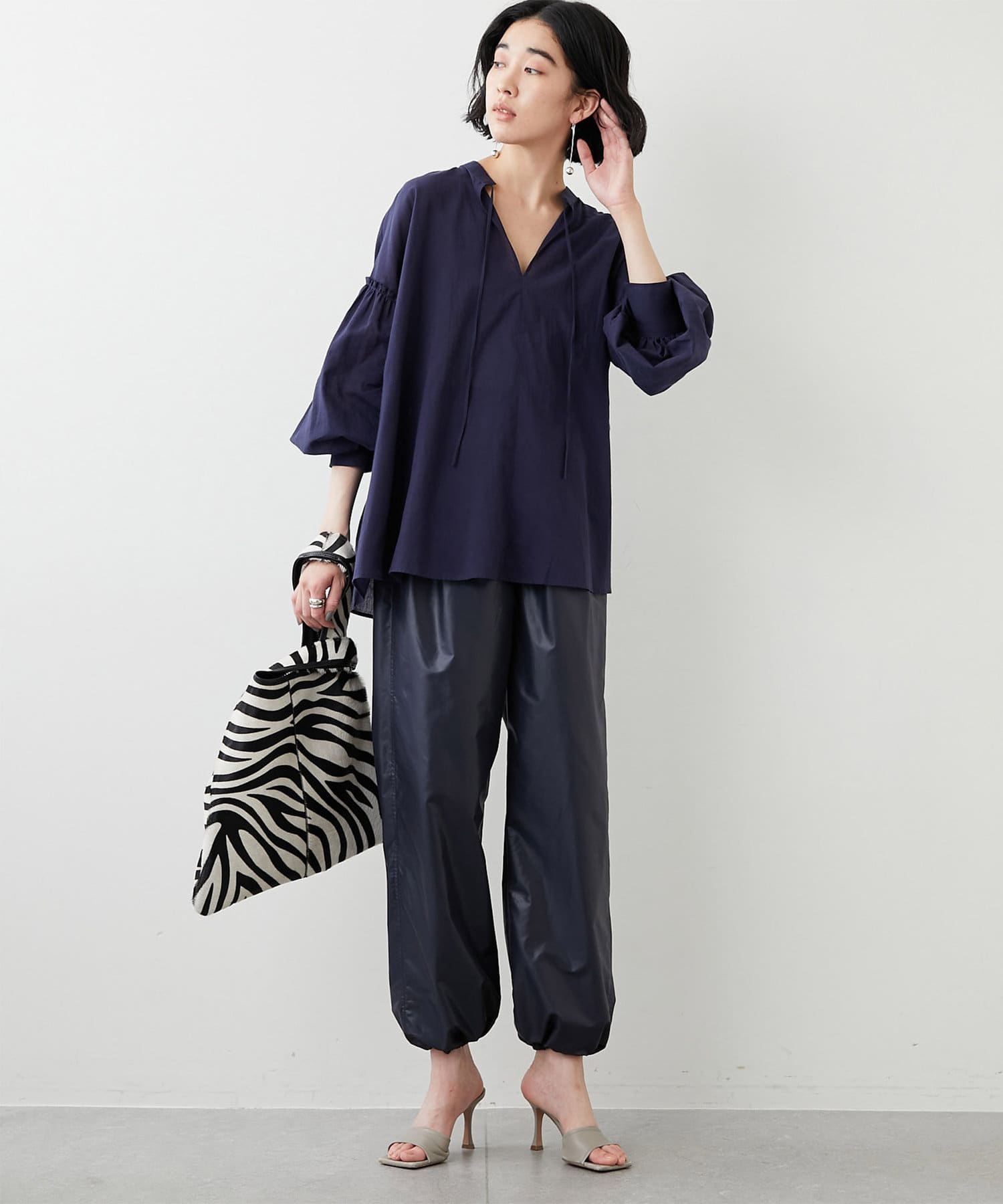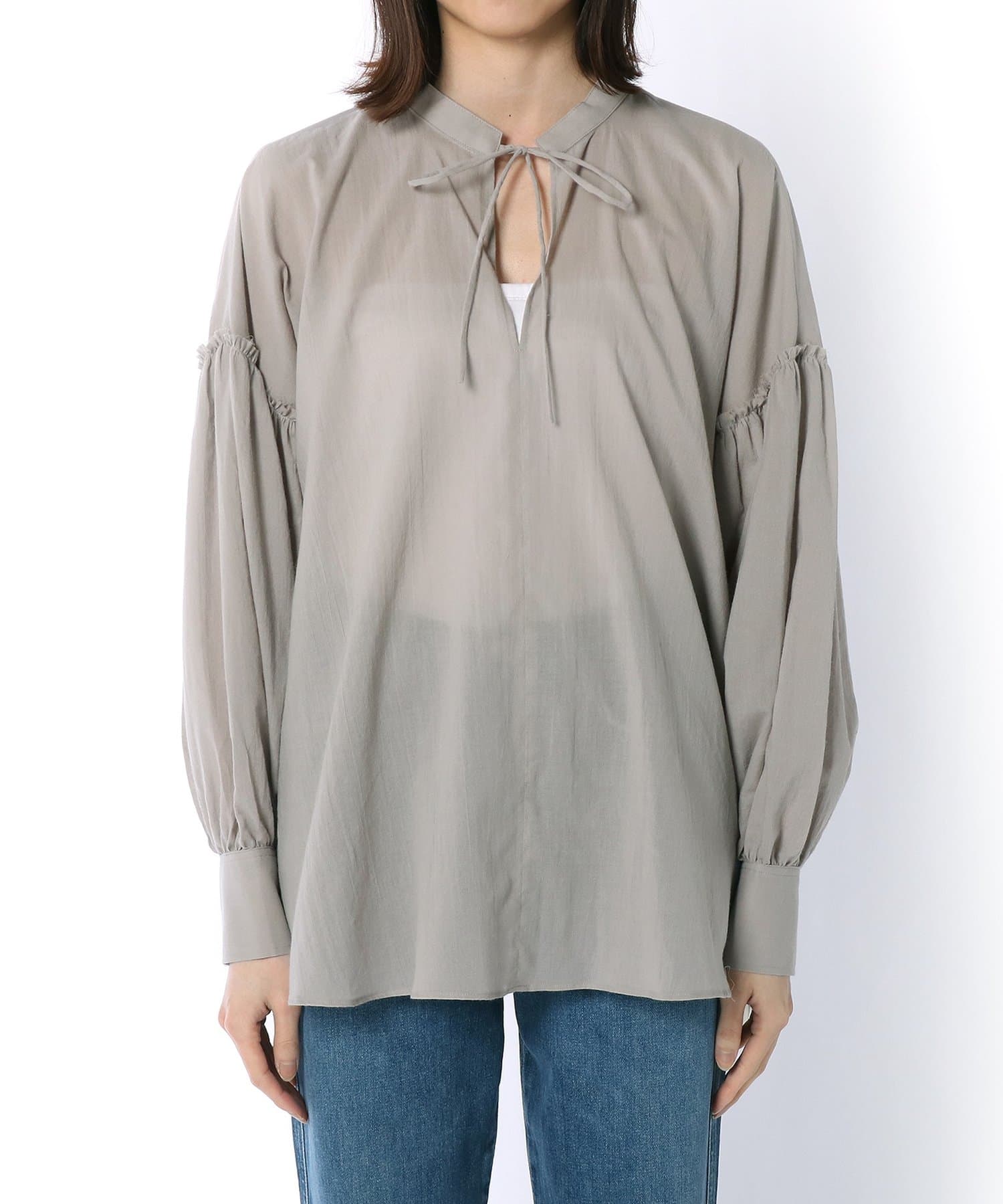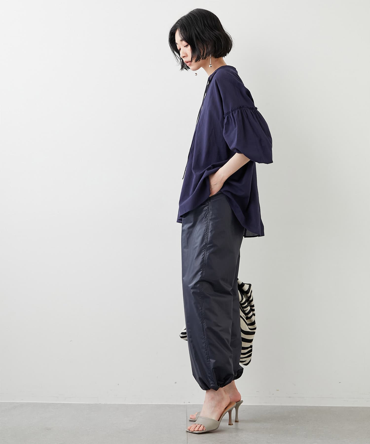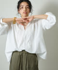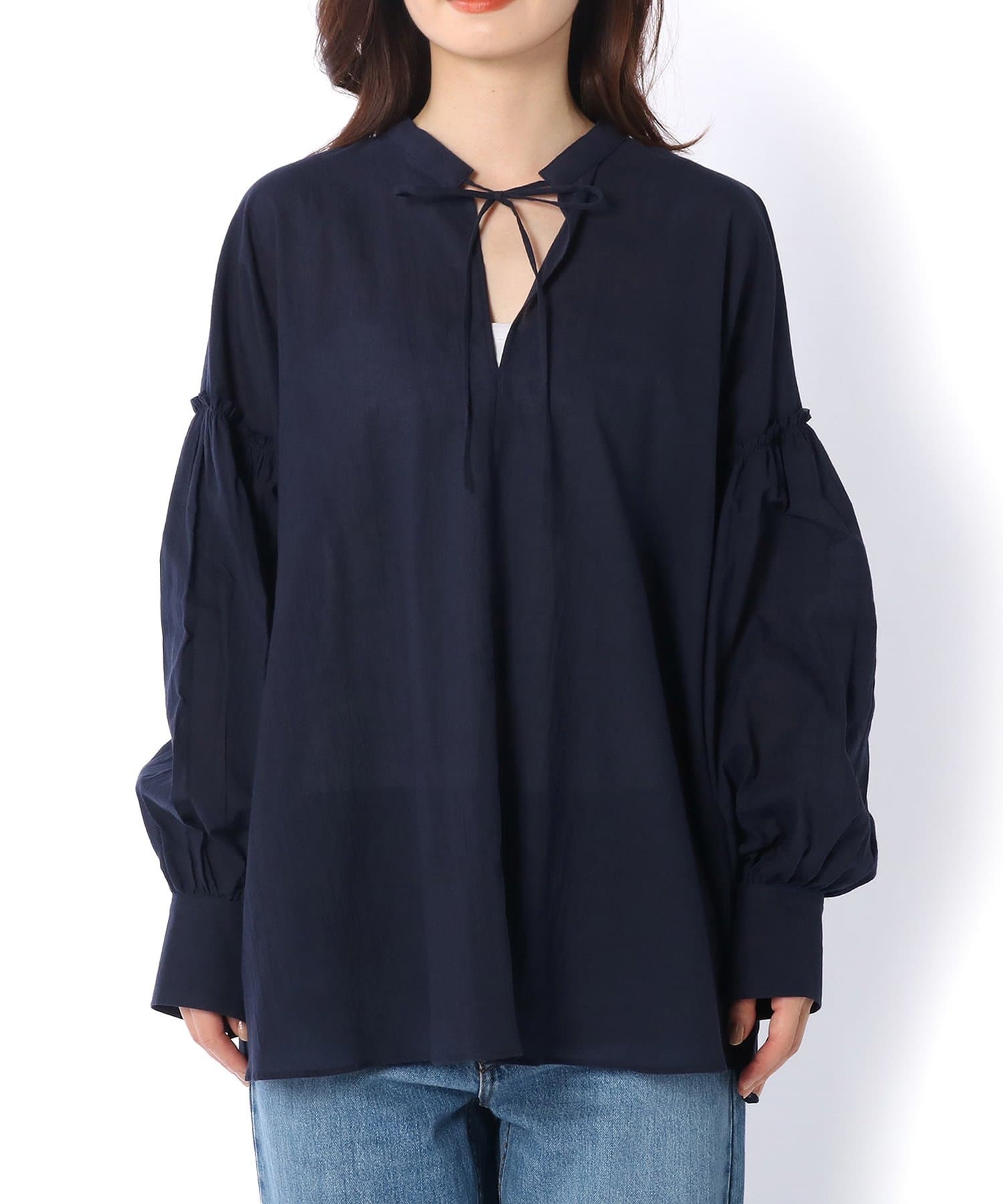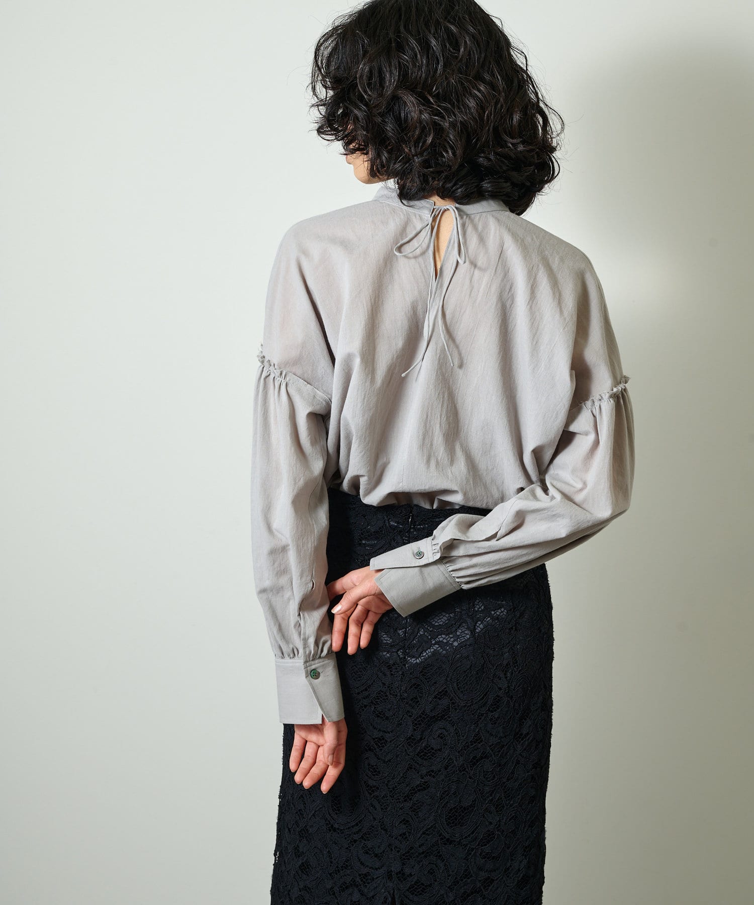 ふんわりと風をはらむような女性らしいシルエットのギャザーブラウス。