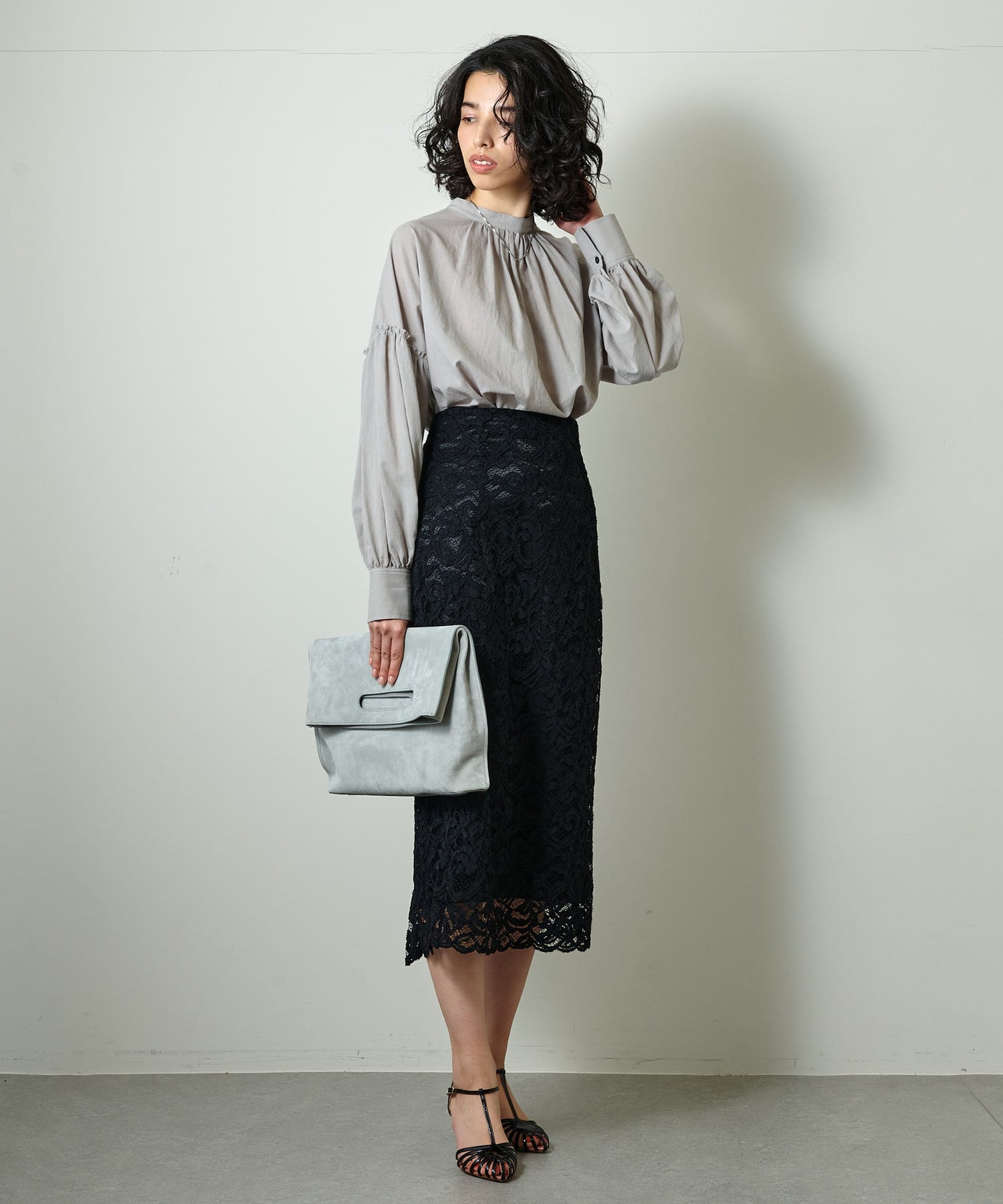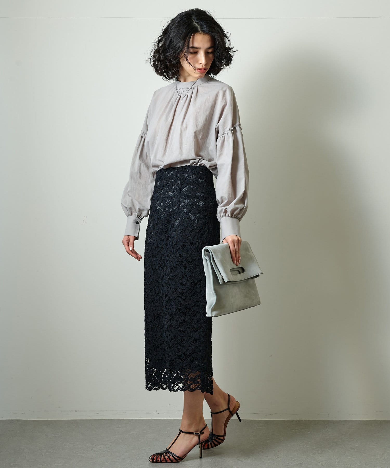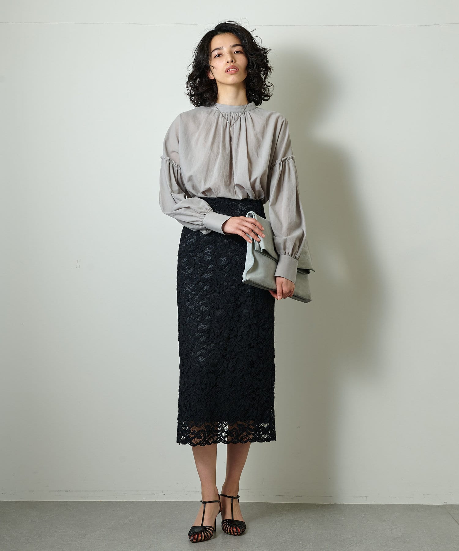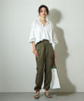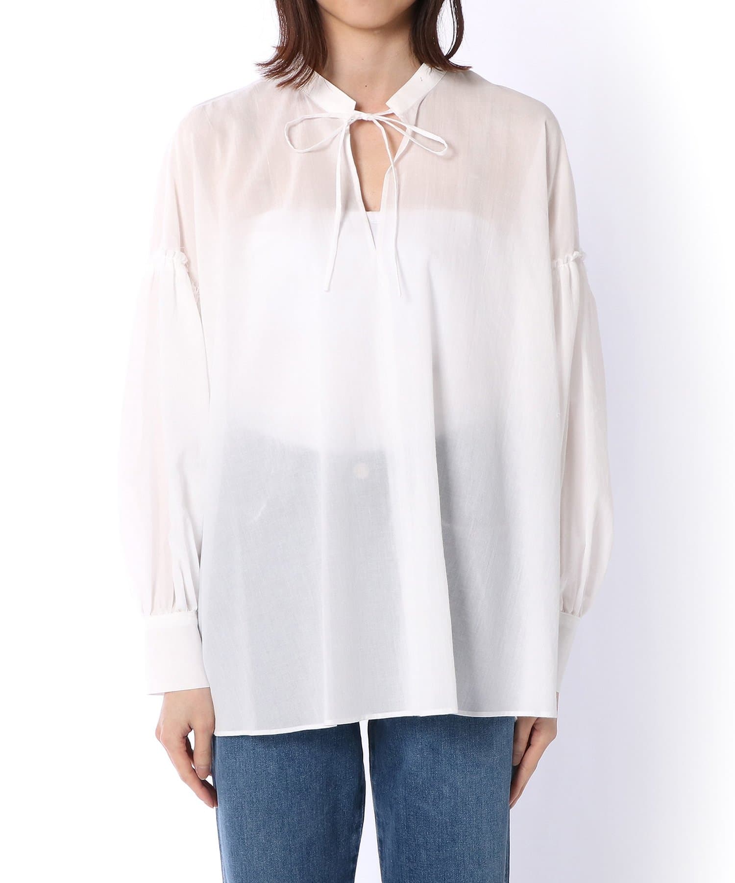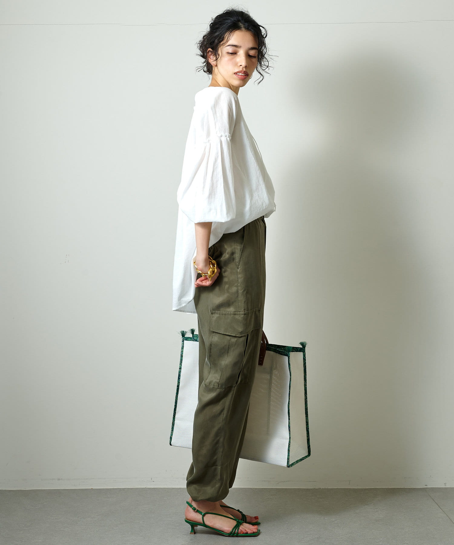 ふんわりと風をはらむような女性らしいシルエットのギャザーブラウス。