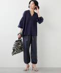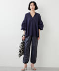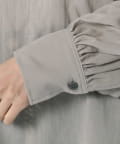 スキッパーネックで首元をすっきり見せつつ、ネック周りとショルダーにギャザーをたっぷりと寄せて女性らしさを出しました。
