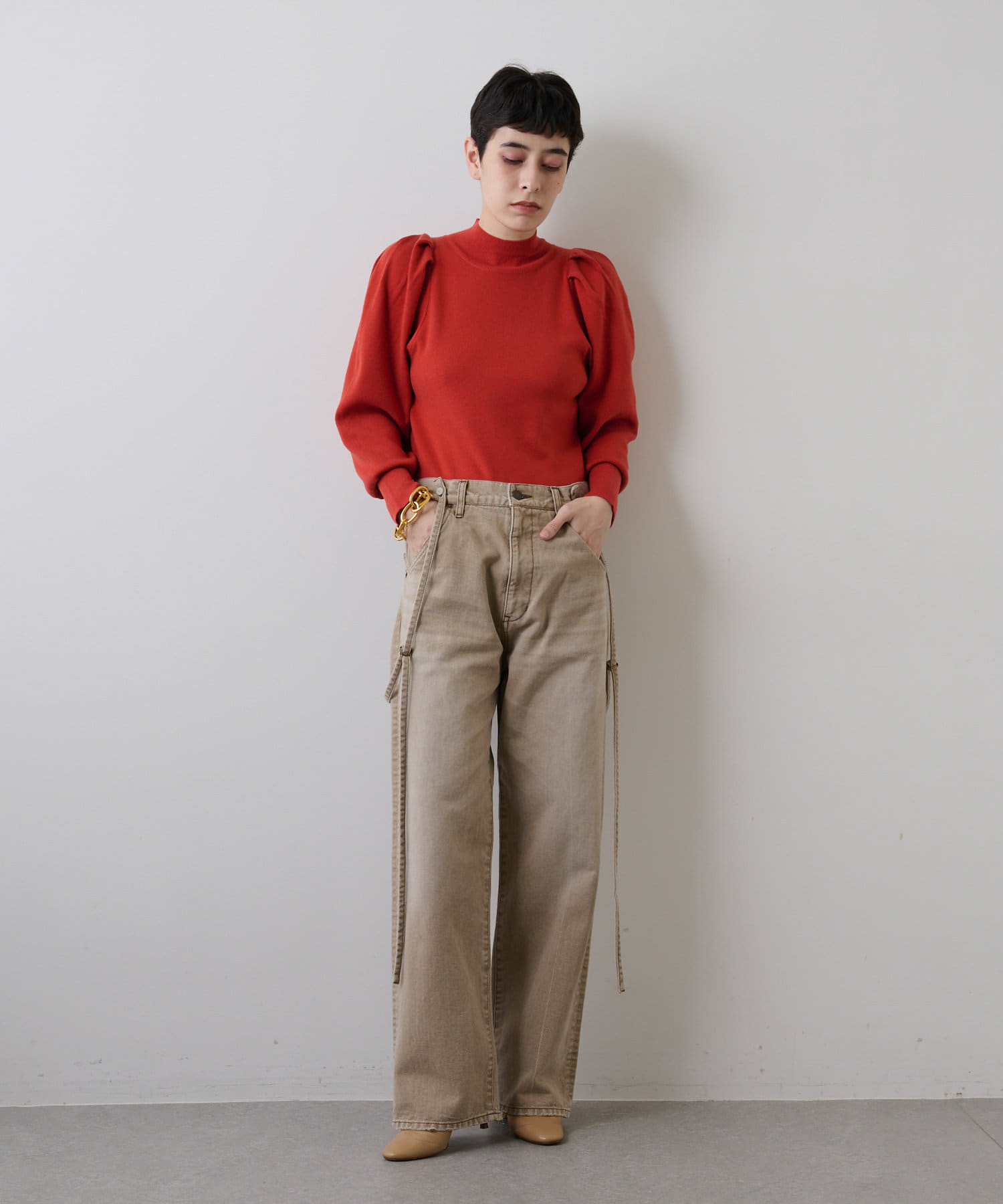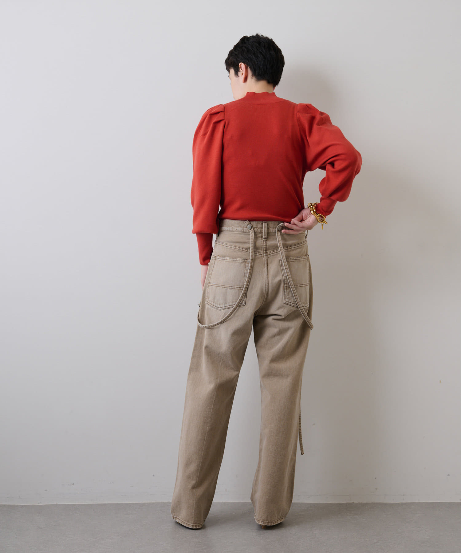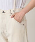 肩ヒモはボタンで取り外し可能にしているので、ラフなストレートパンツとしても楽しめます。