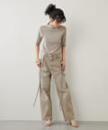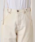 展開カラーそれぞれの生地に別の加工を施した、ユーズド感がこだわりのサスペンダーパンツ。