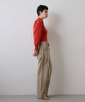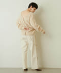 サンドベージュ:タテ糸とヨコ糸の染色法を変えることで奥行きのある風合いの素材を使用。洗いとシェービングによりユーズド感を表現しています。