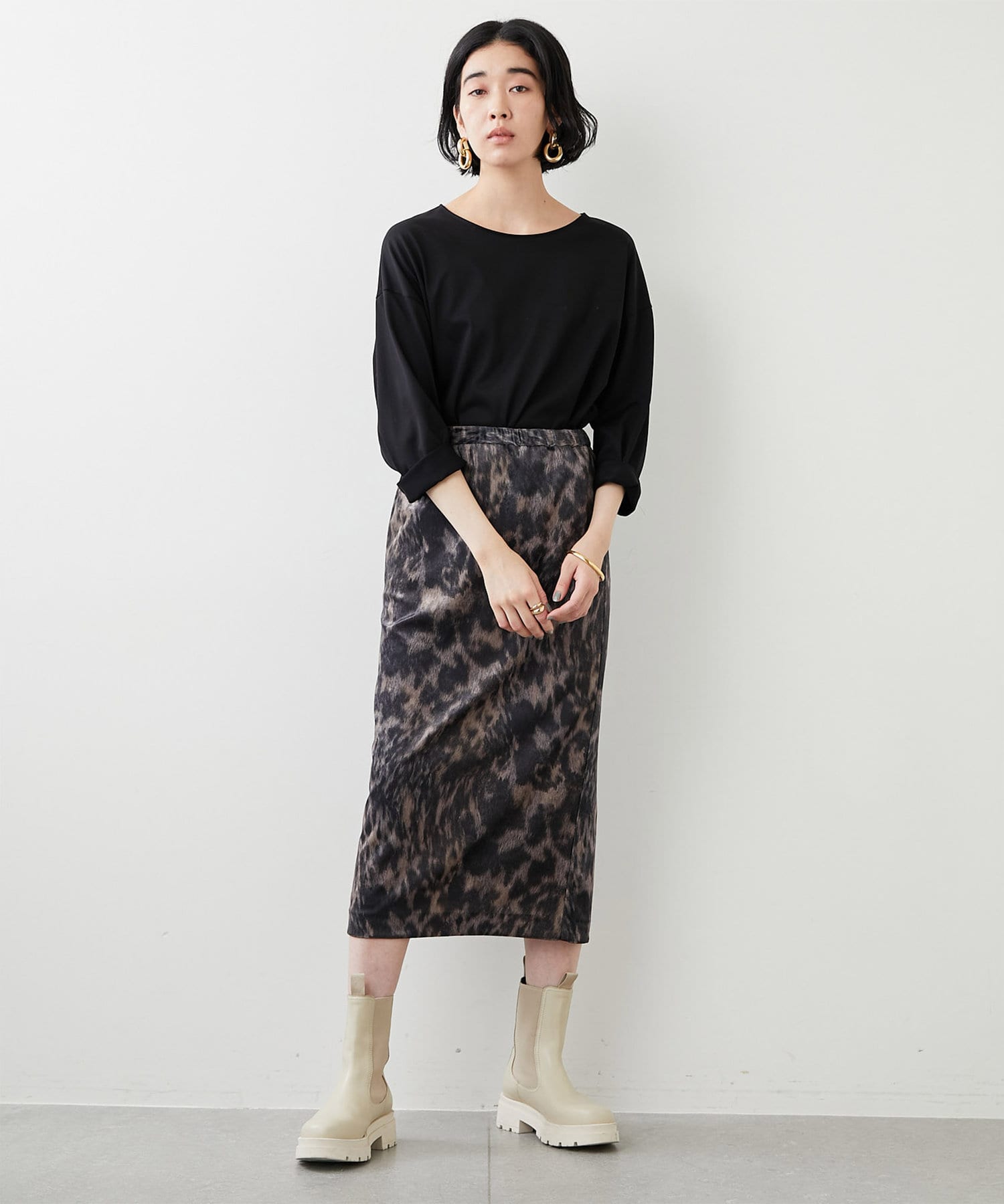 オリジナルのハイエナ柄が独特な魅力を放つタイトスカート。