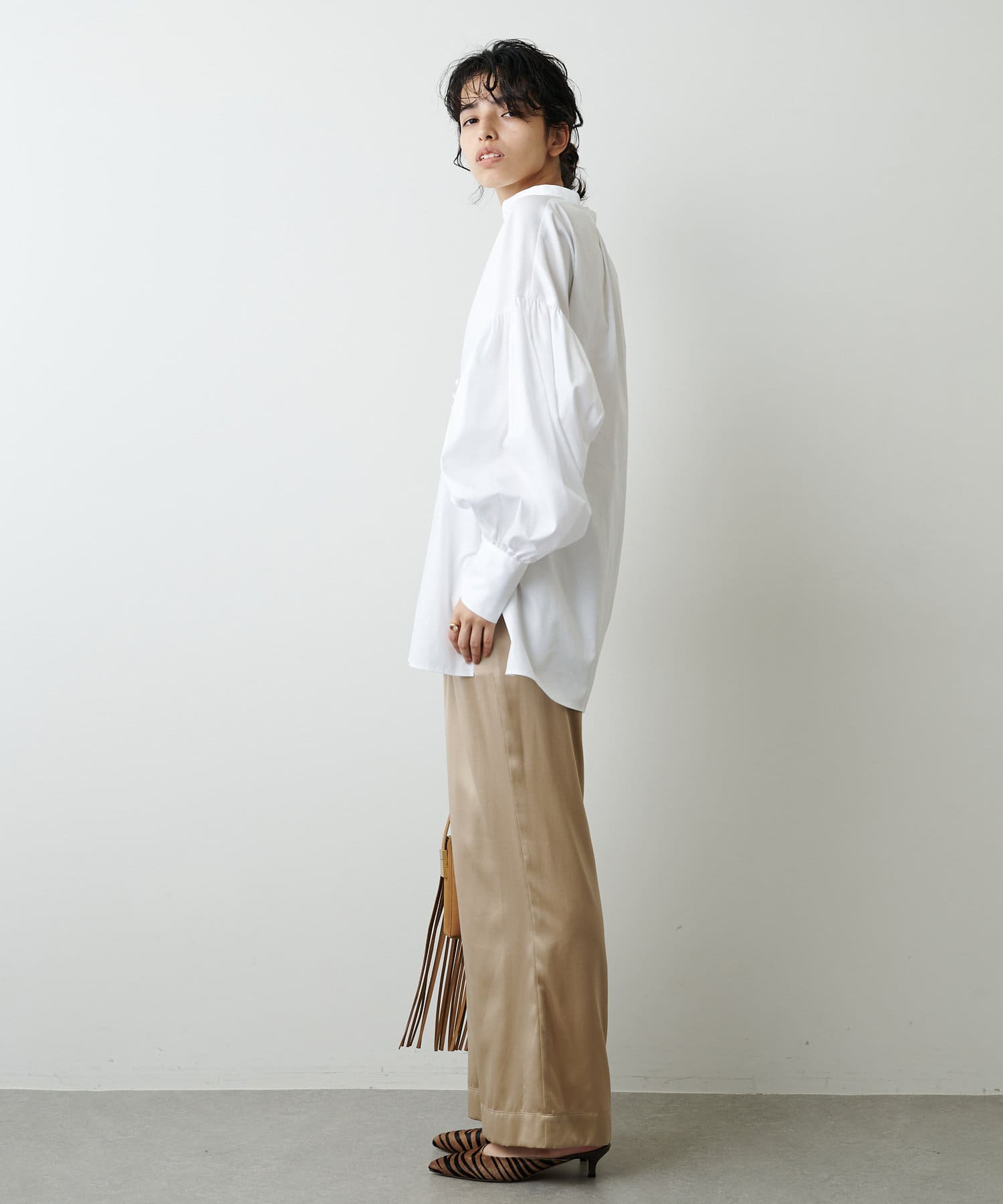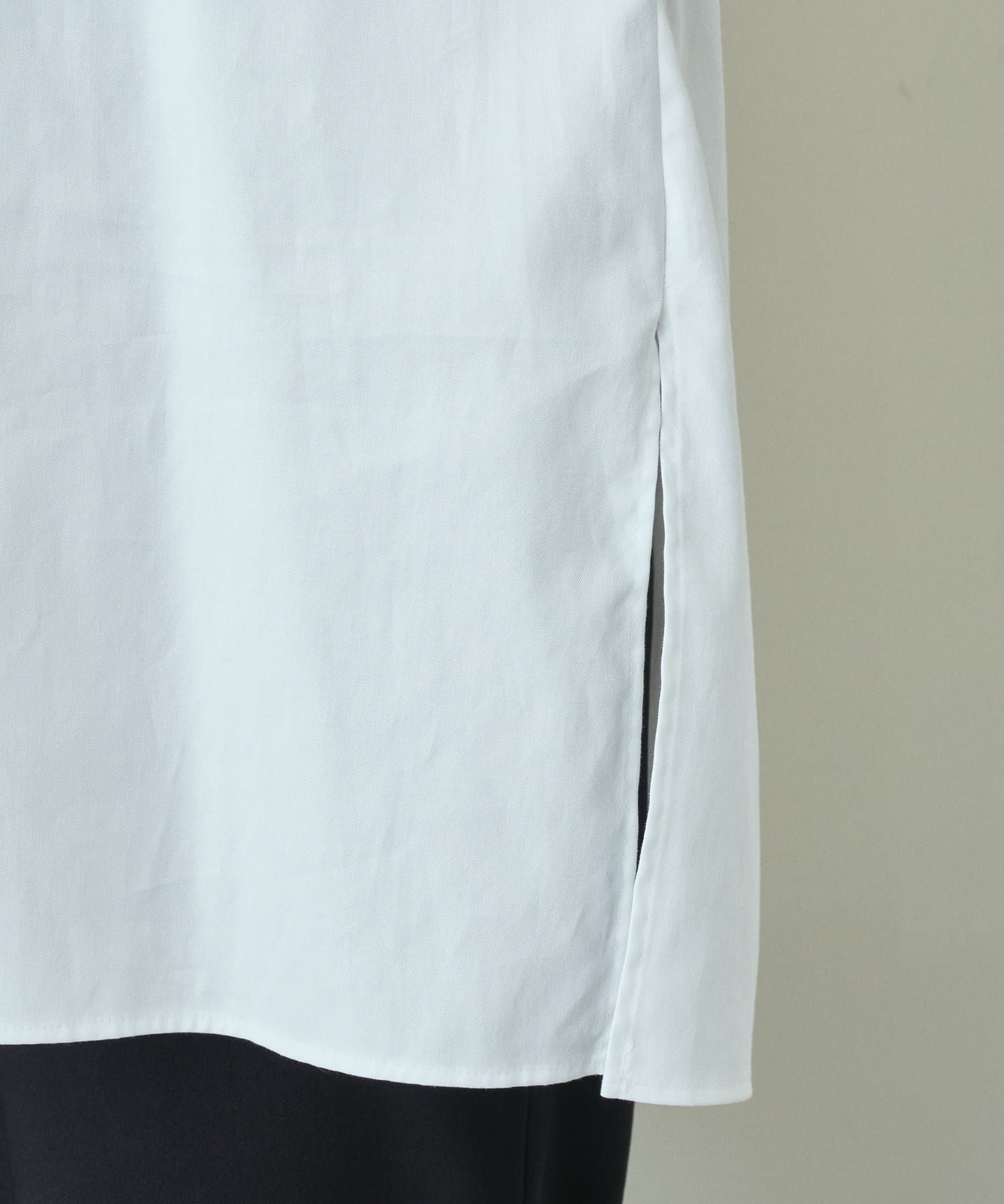 ピンオックス生地ならではの上品なツヤ感と繊細な風合いが魅力的な一着。