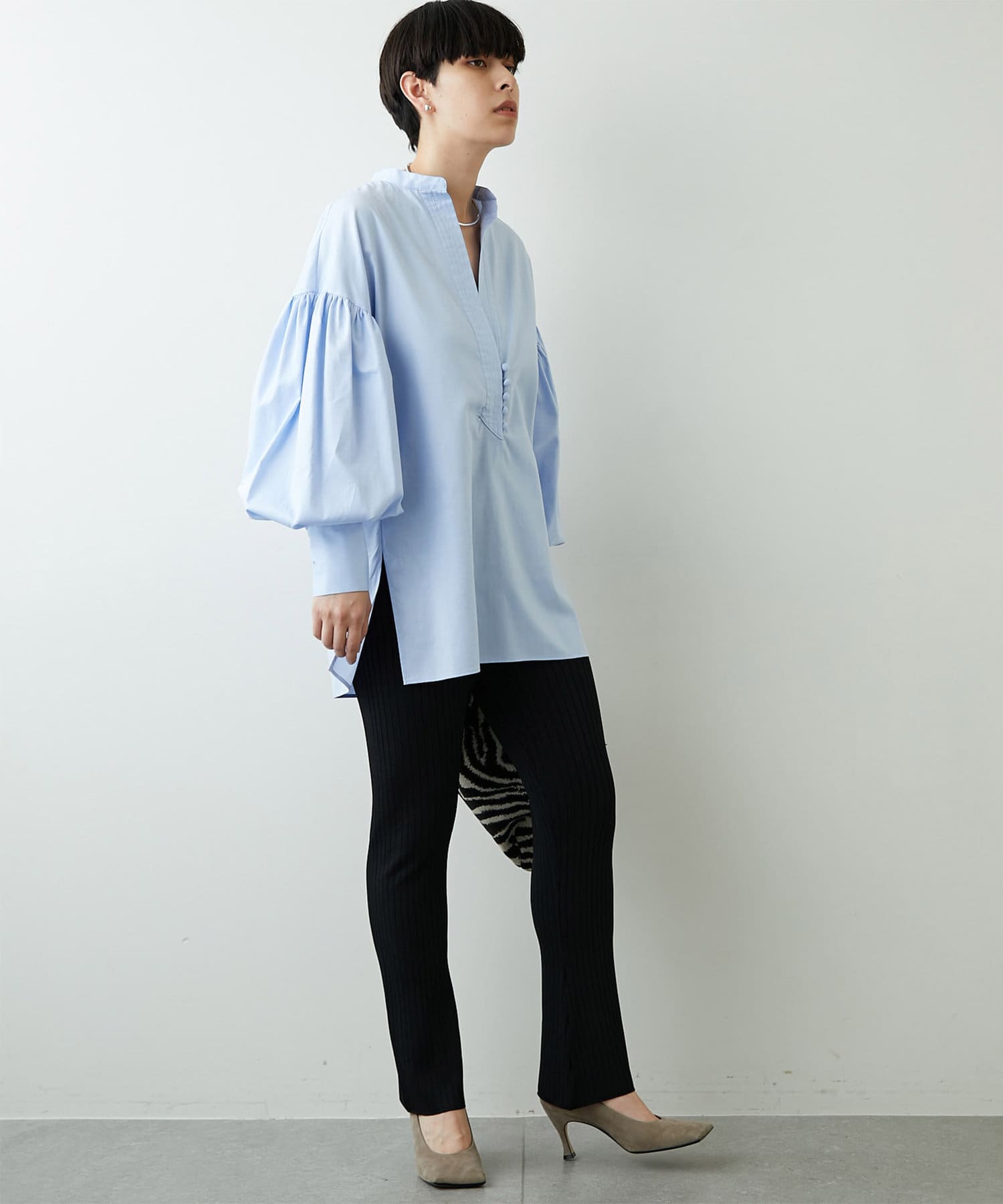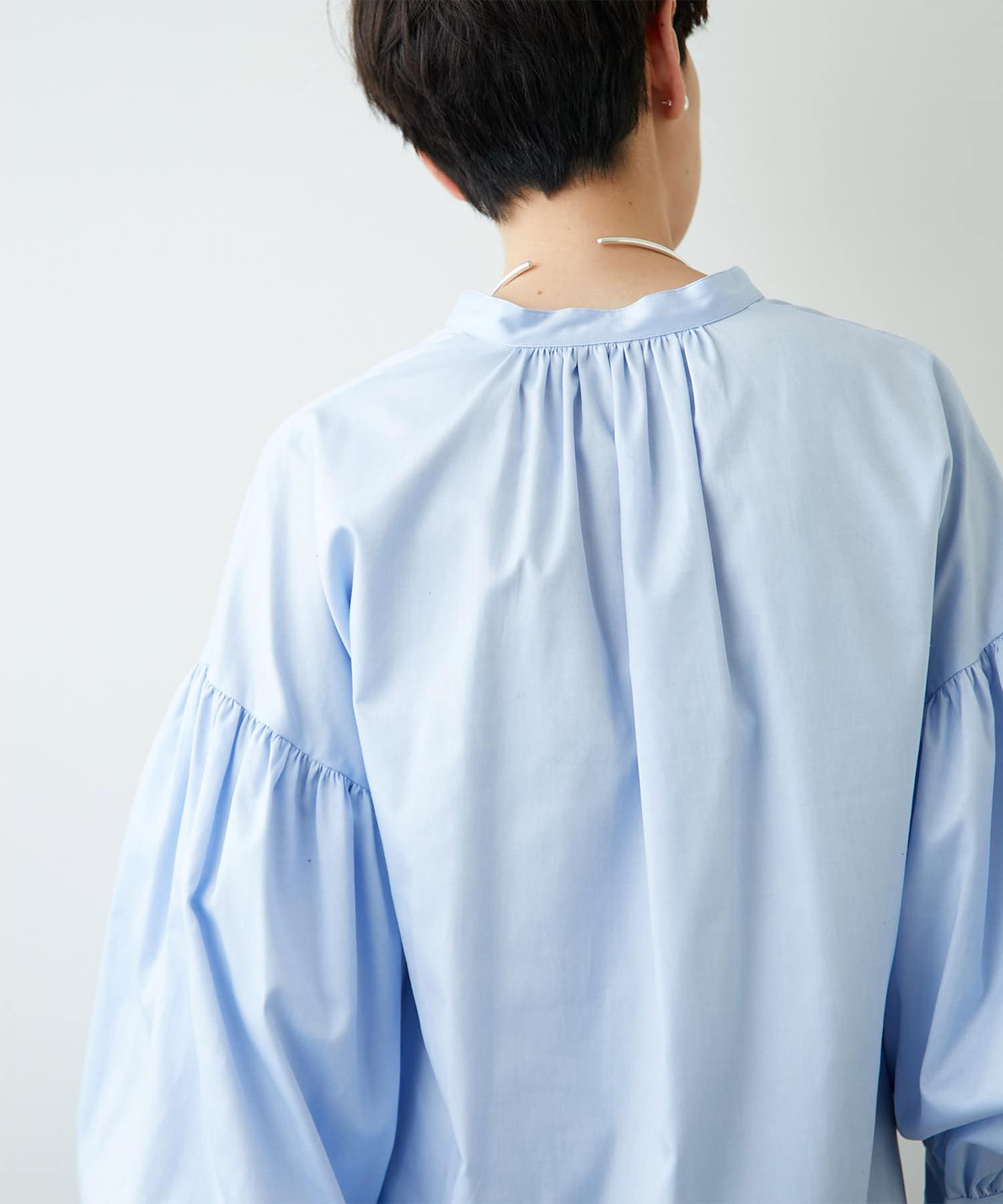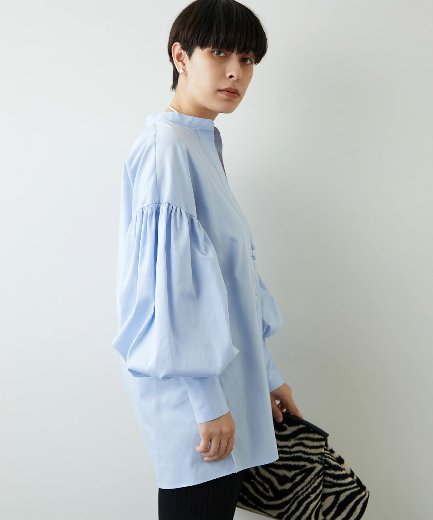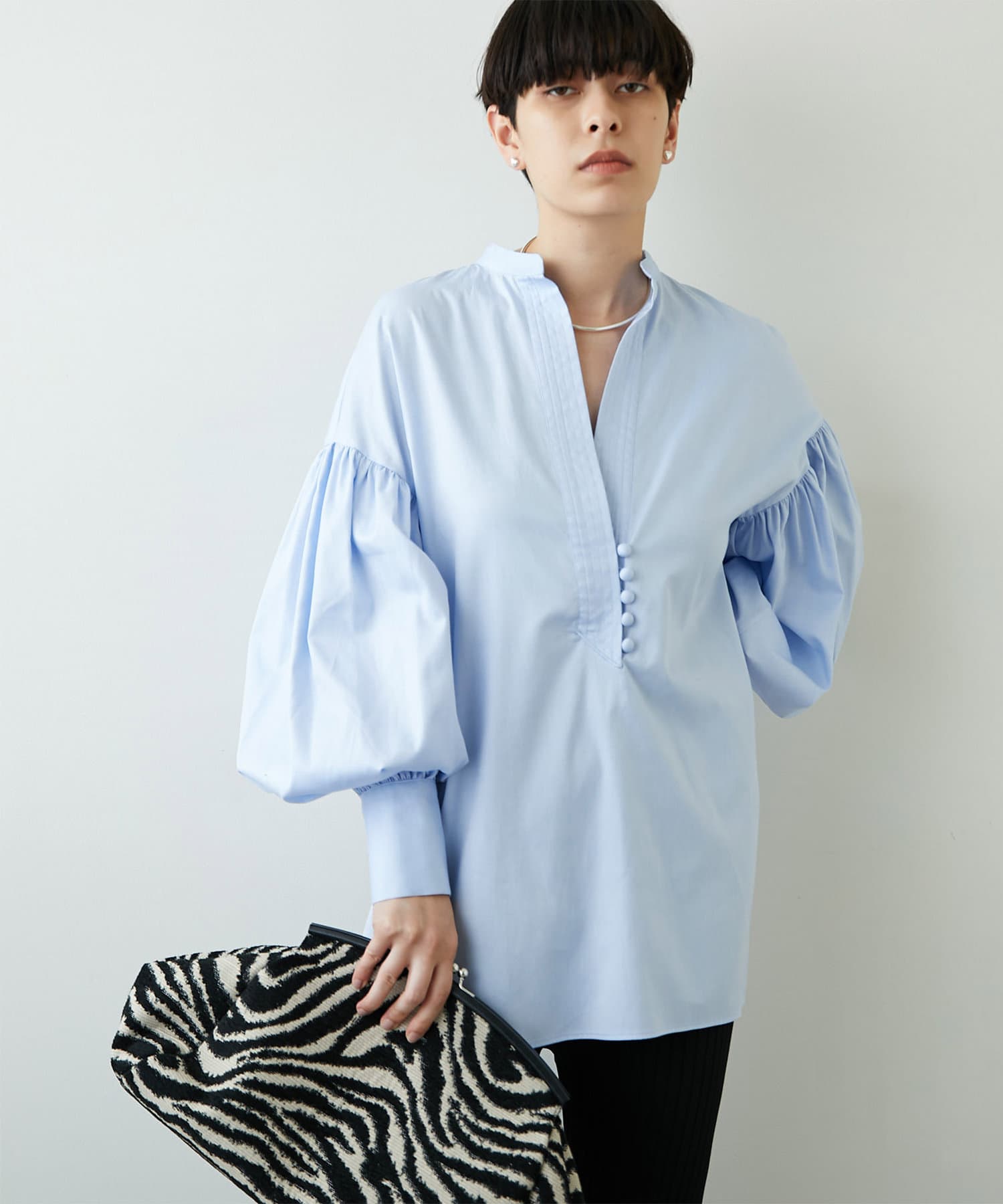 たっぷりとしたボリューム感のある袖が目を惹くブラウス。