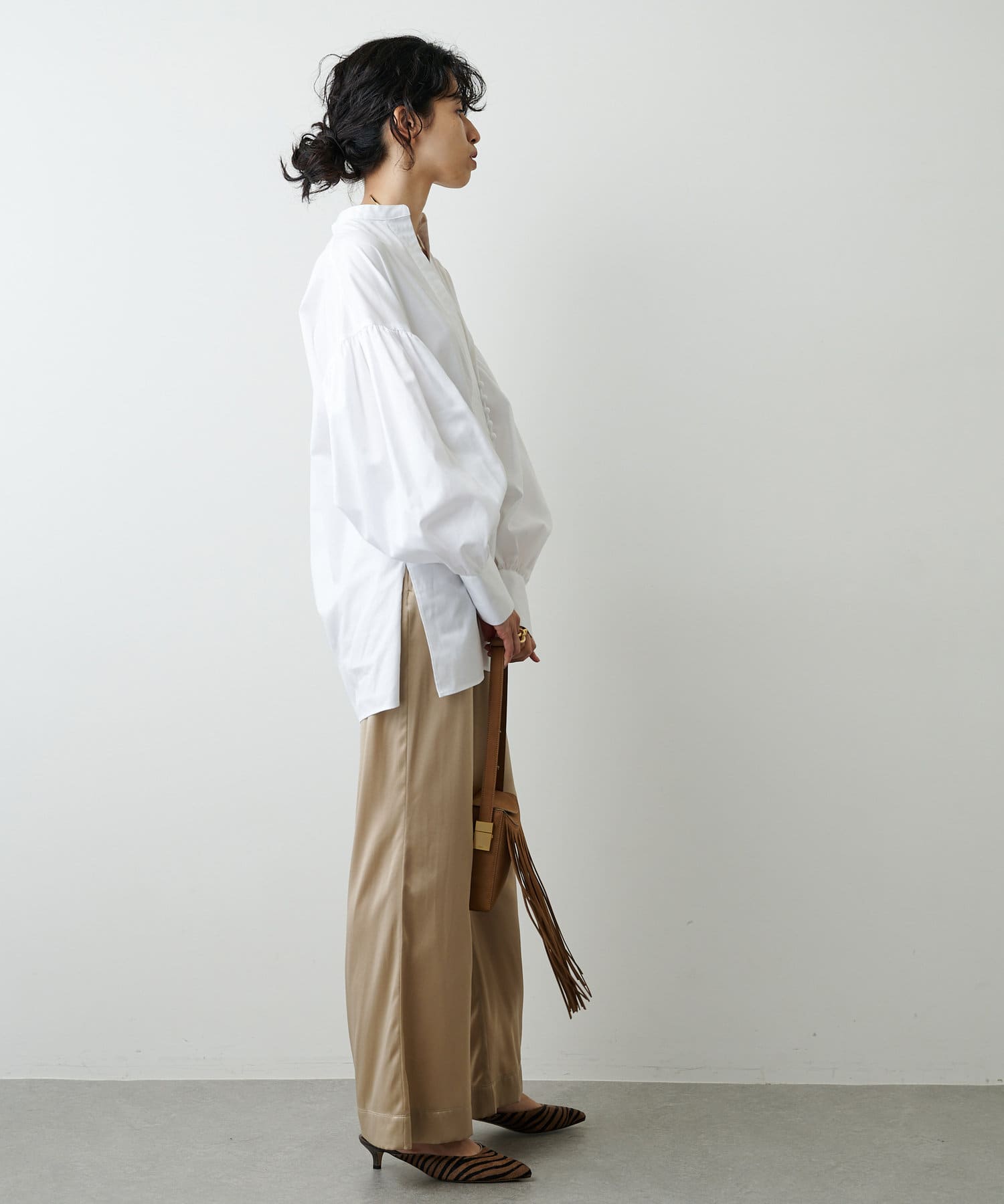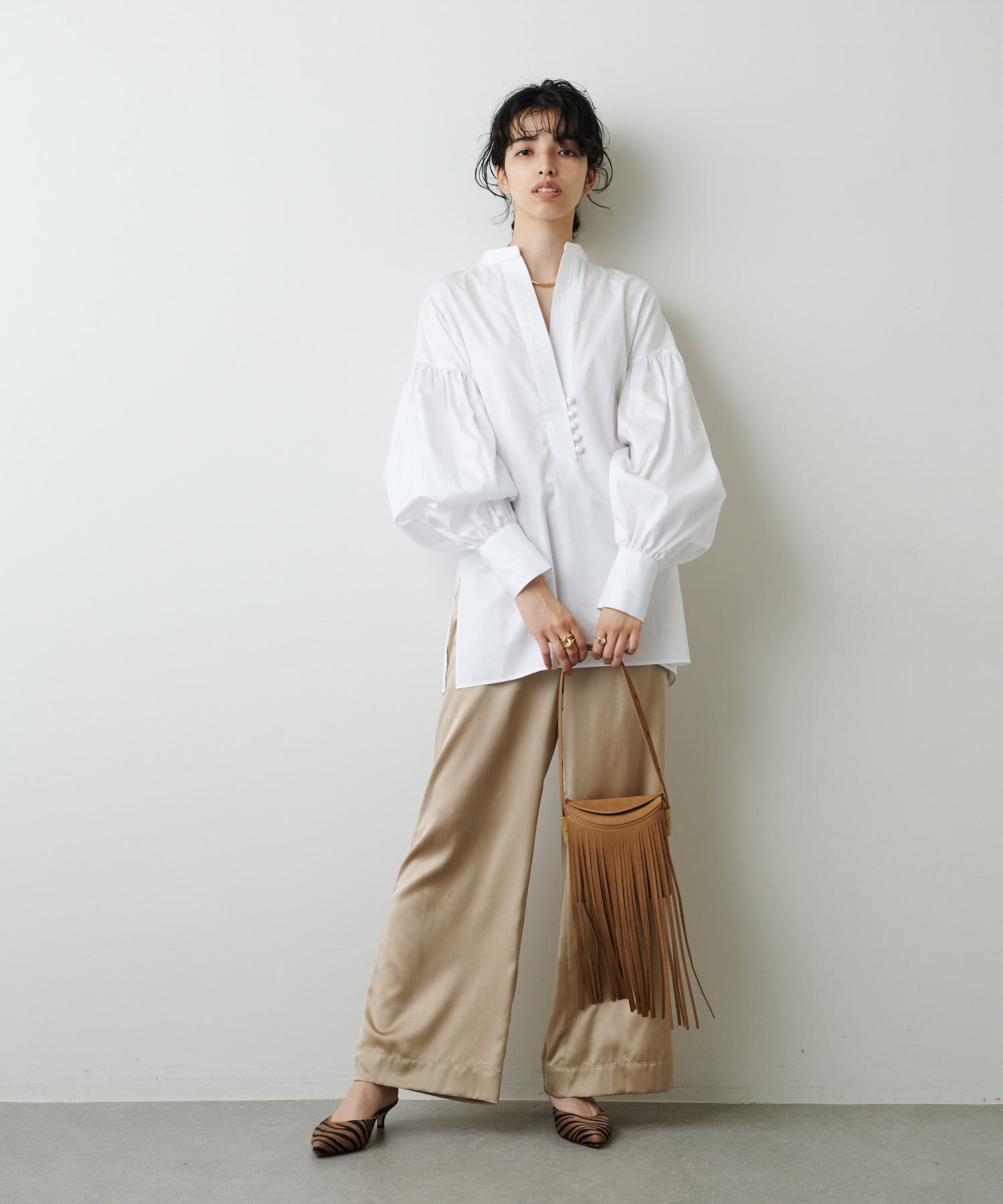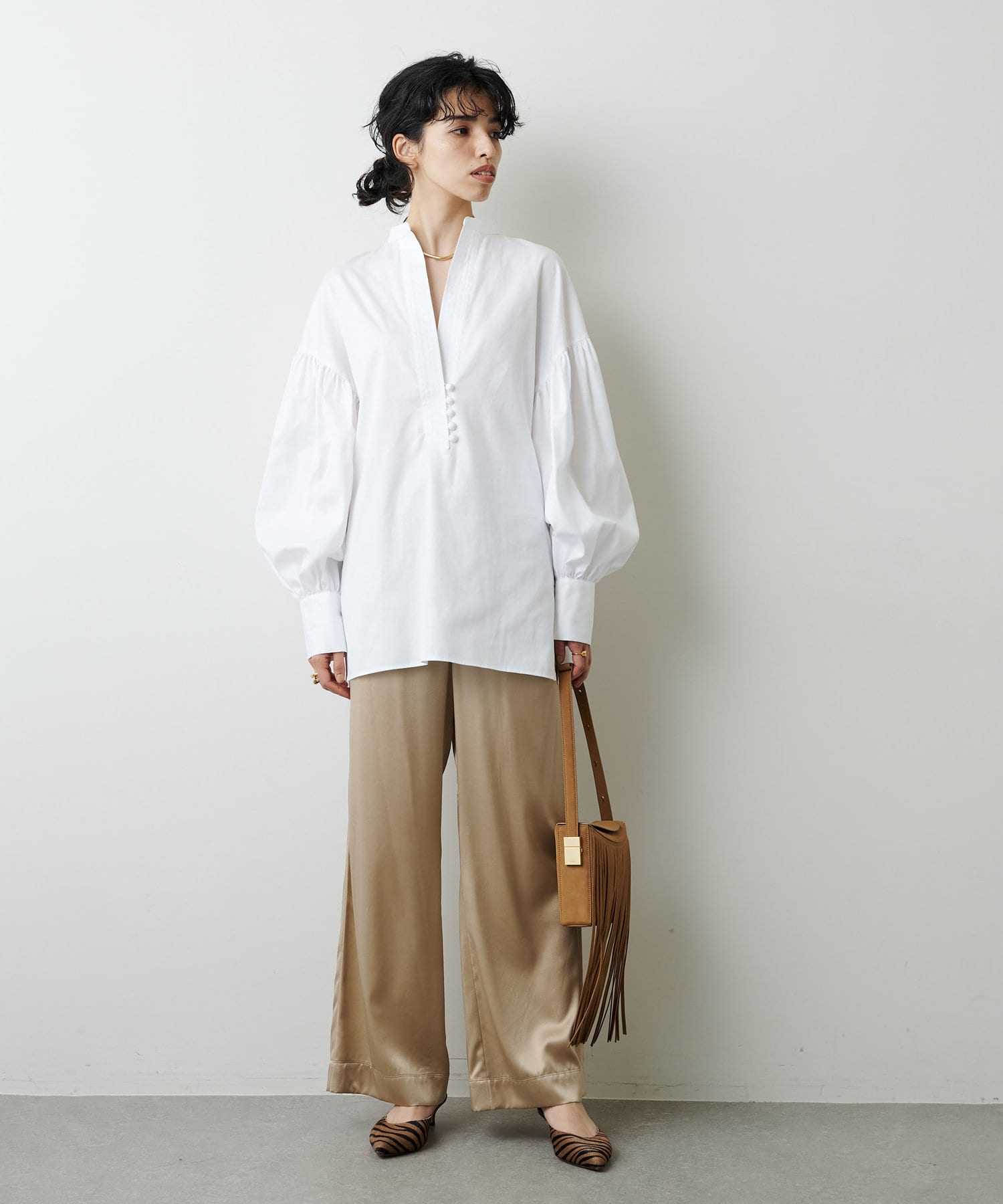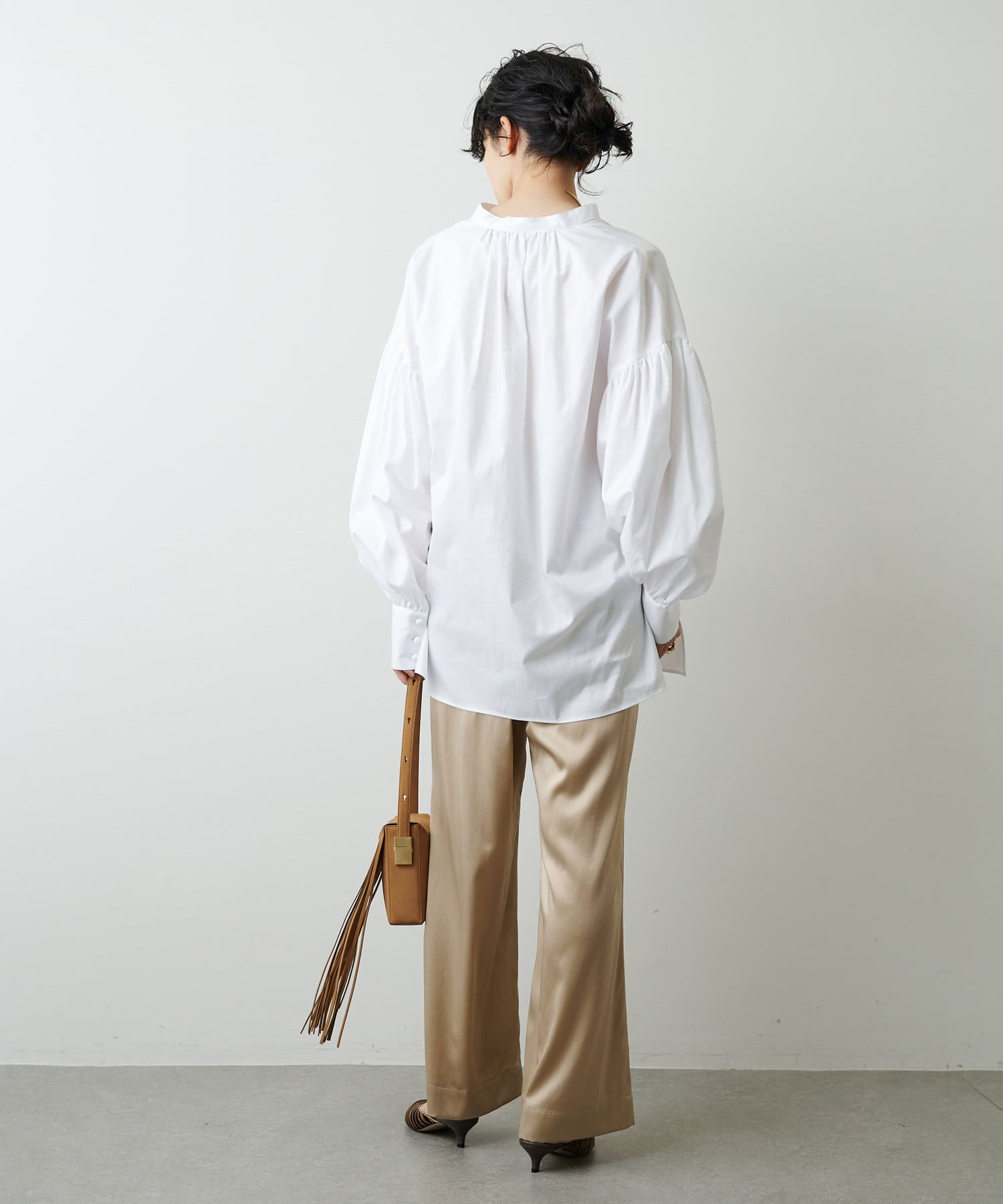 たっぷりとしたボリューム感のある袖が目を惹くブラウス。