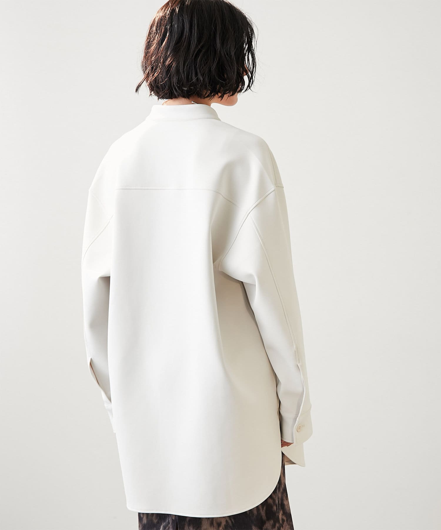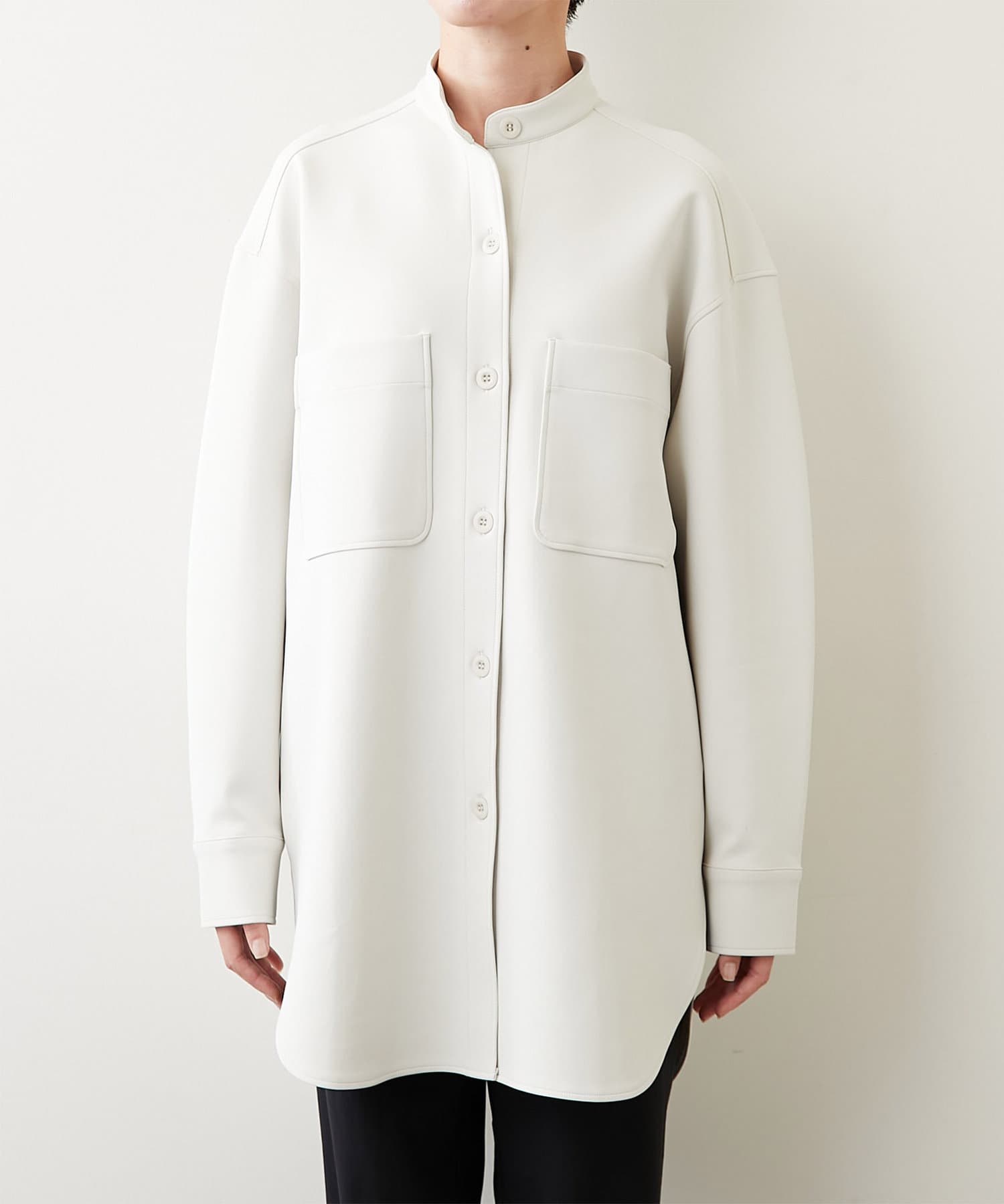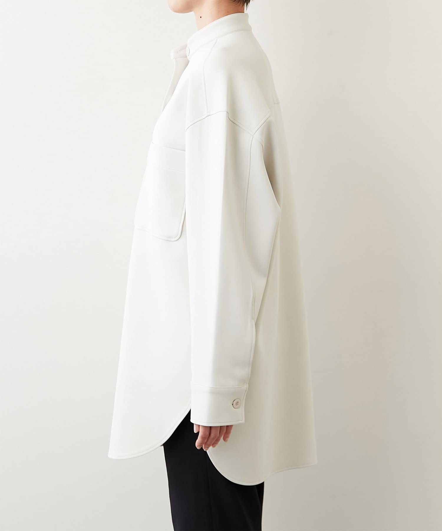 パッチポケットを備え、ミリタリーモチーフらしいCPO型の機能的な雰囲気はそのままに、シャツテールにする事で着まわしやすいライトなデザインが魅力。