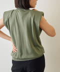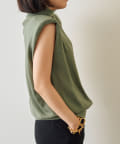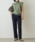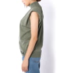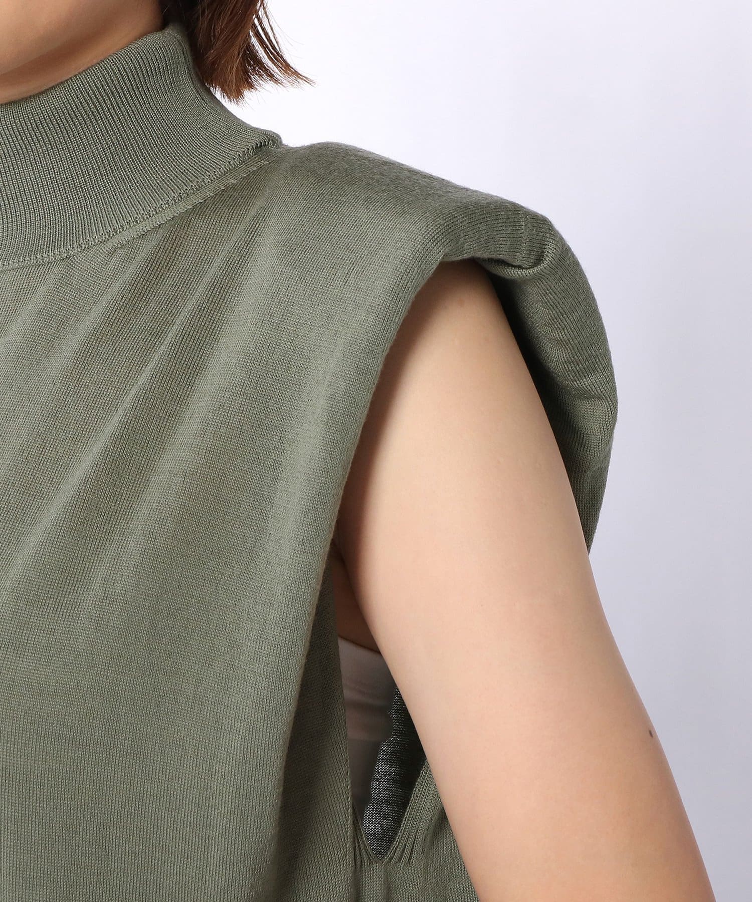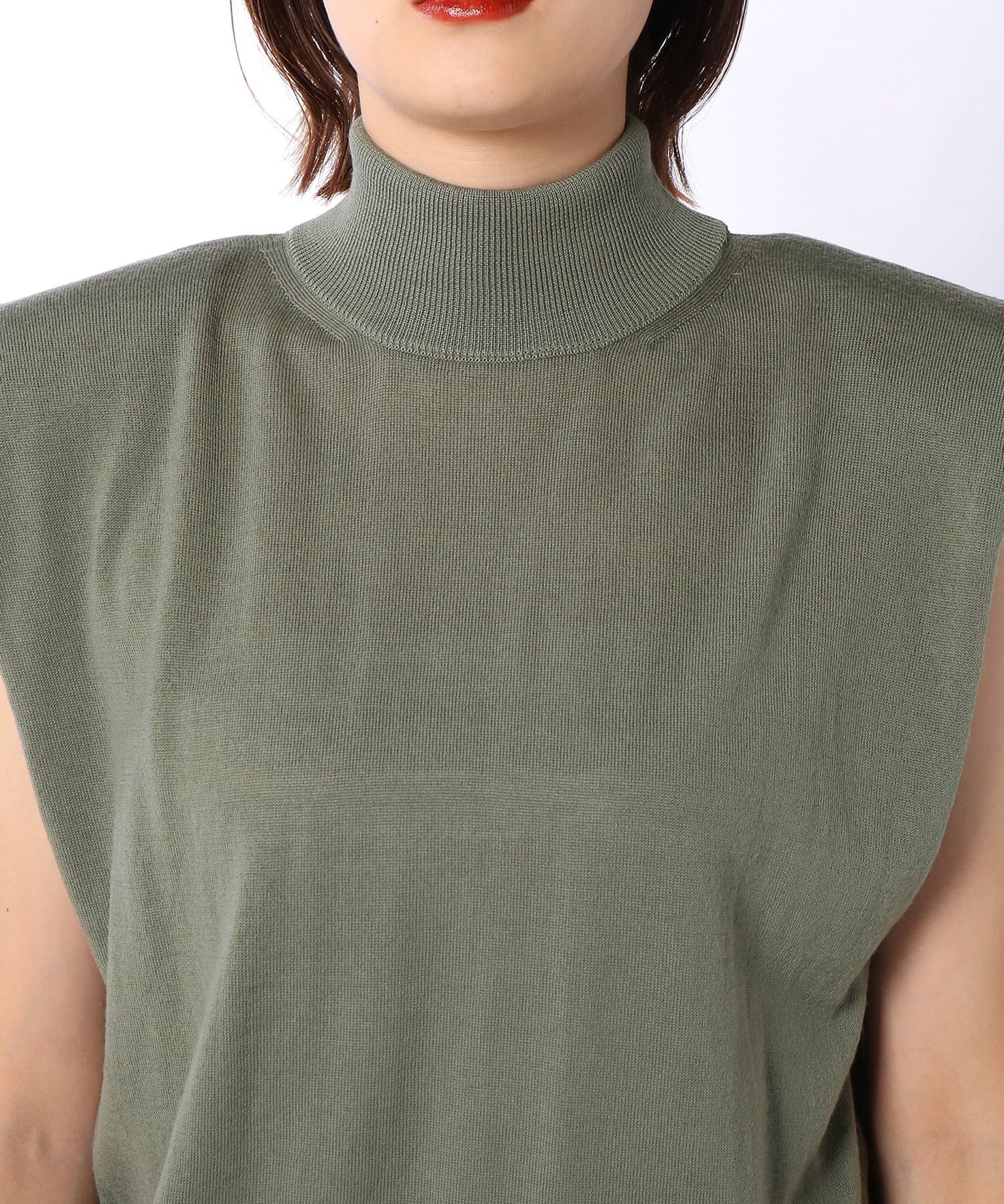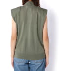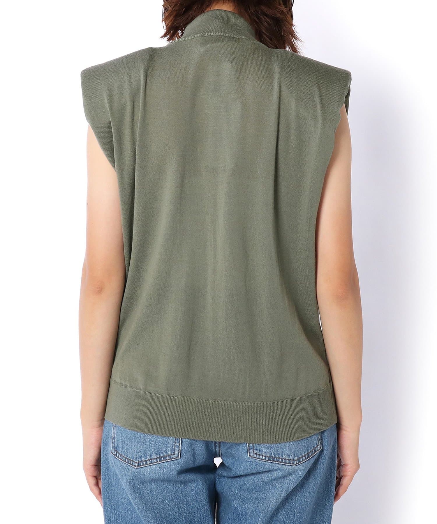 ■肩にパッドを施したエッジの効いたデザインのノースリーブニット。
