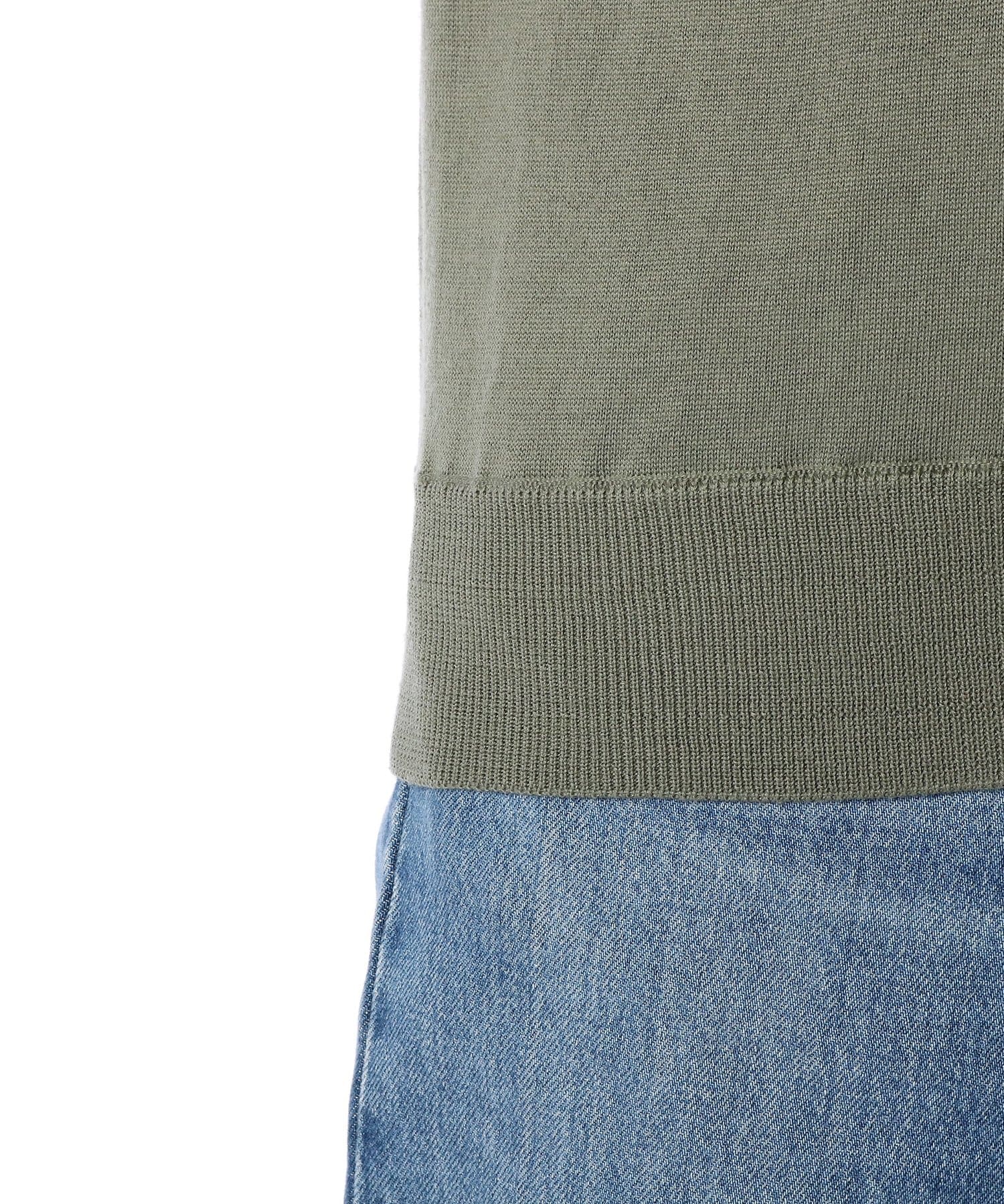 程よい光沢感とややシアー感のある薄手のウールニット。