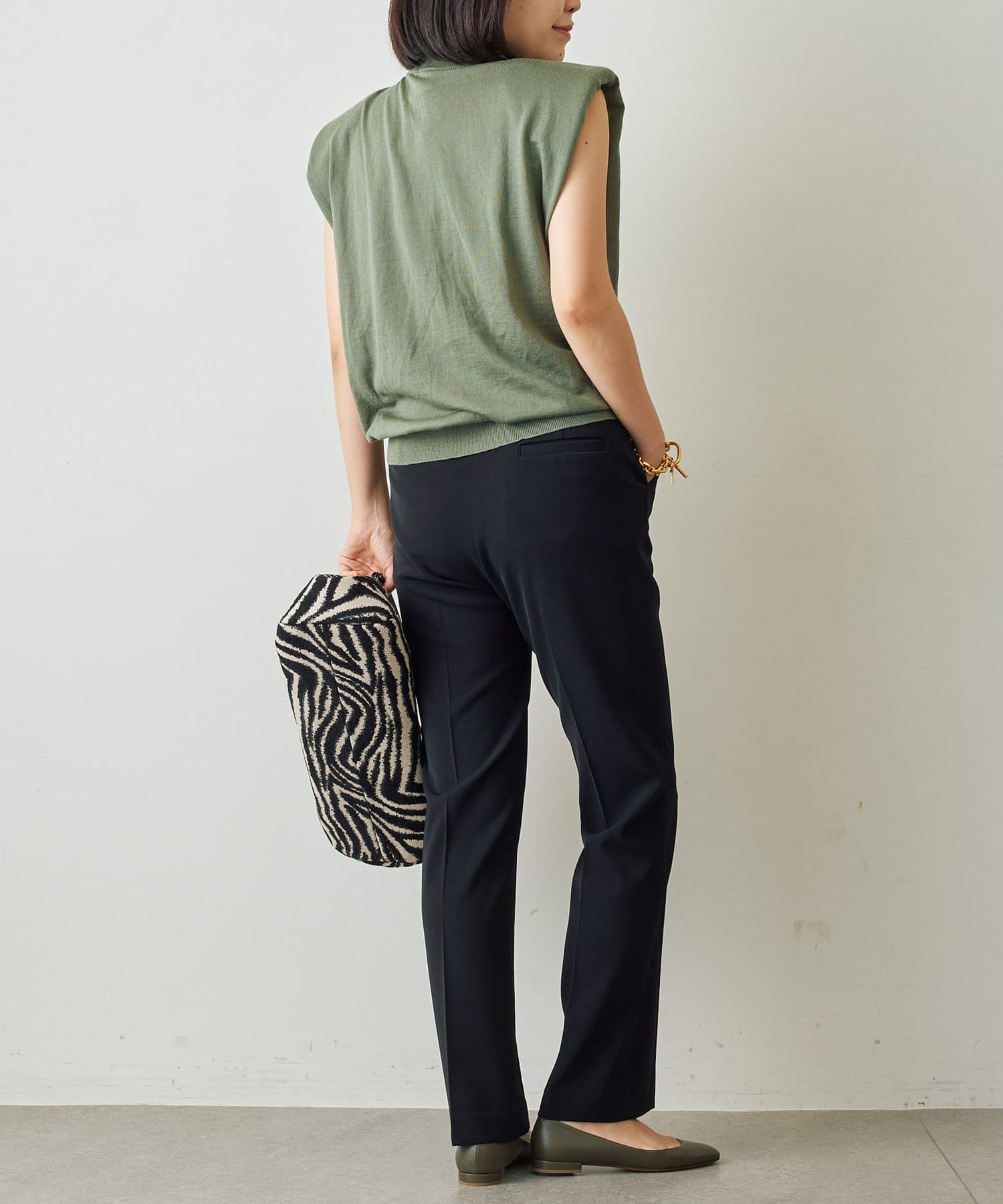 ■上半身の華奢見えを演出するパワーショルダーシルエット。