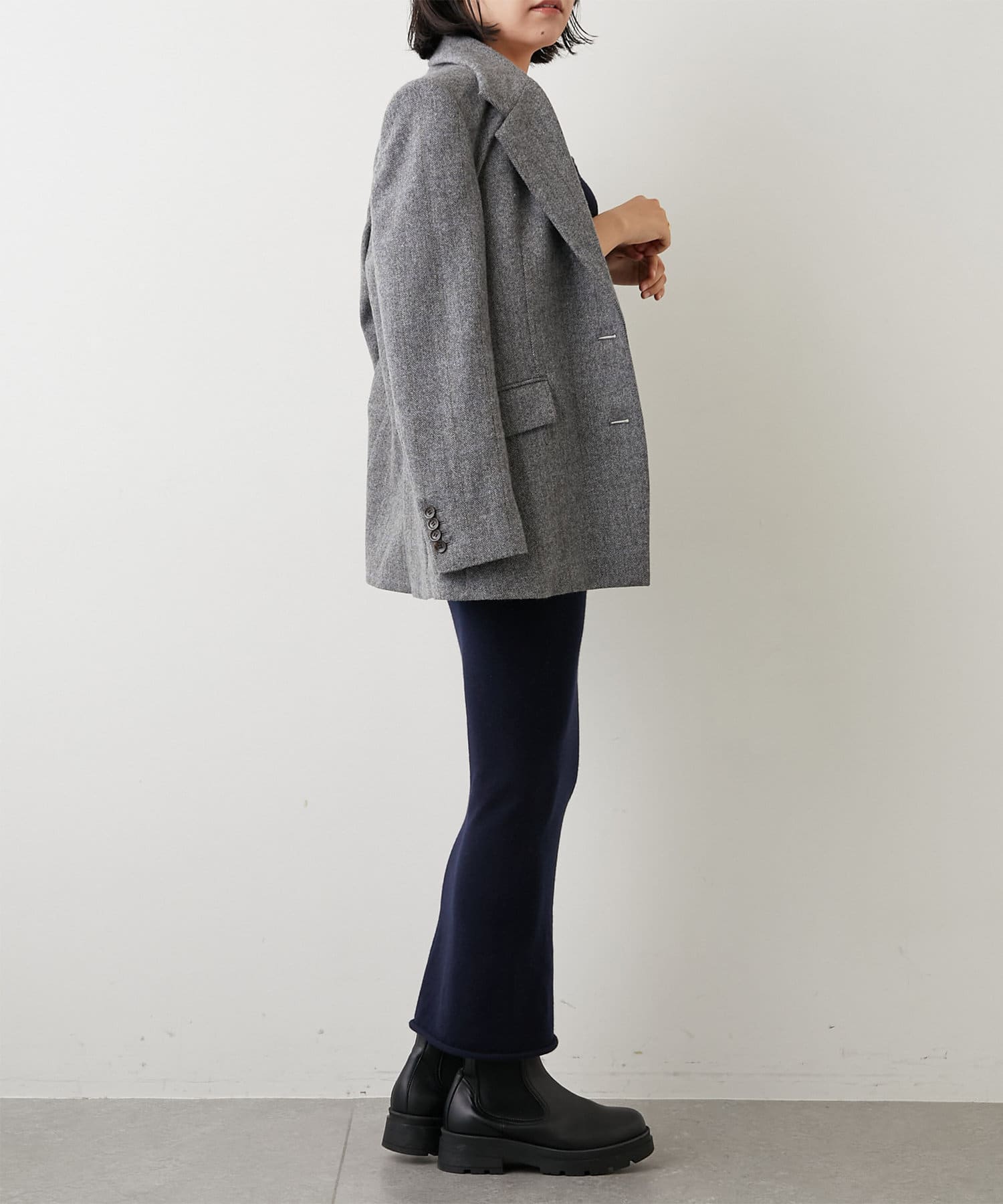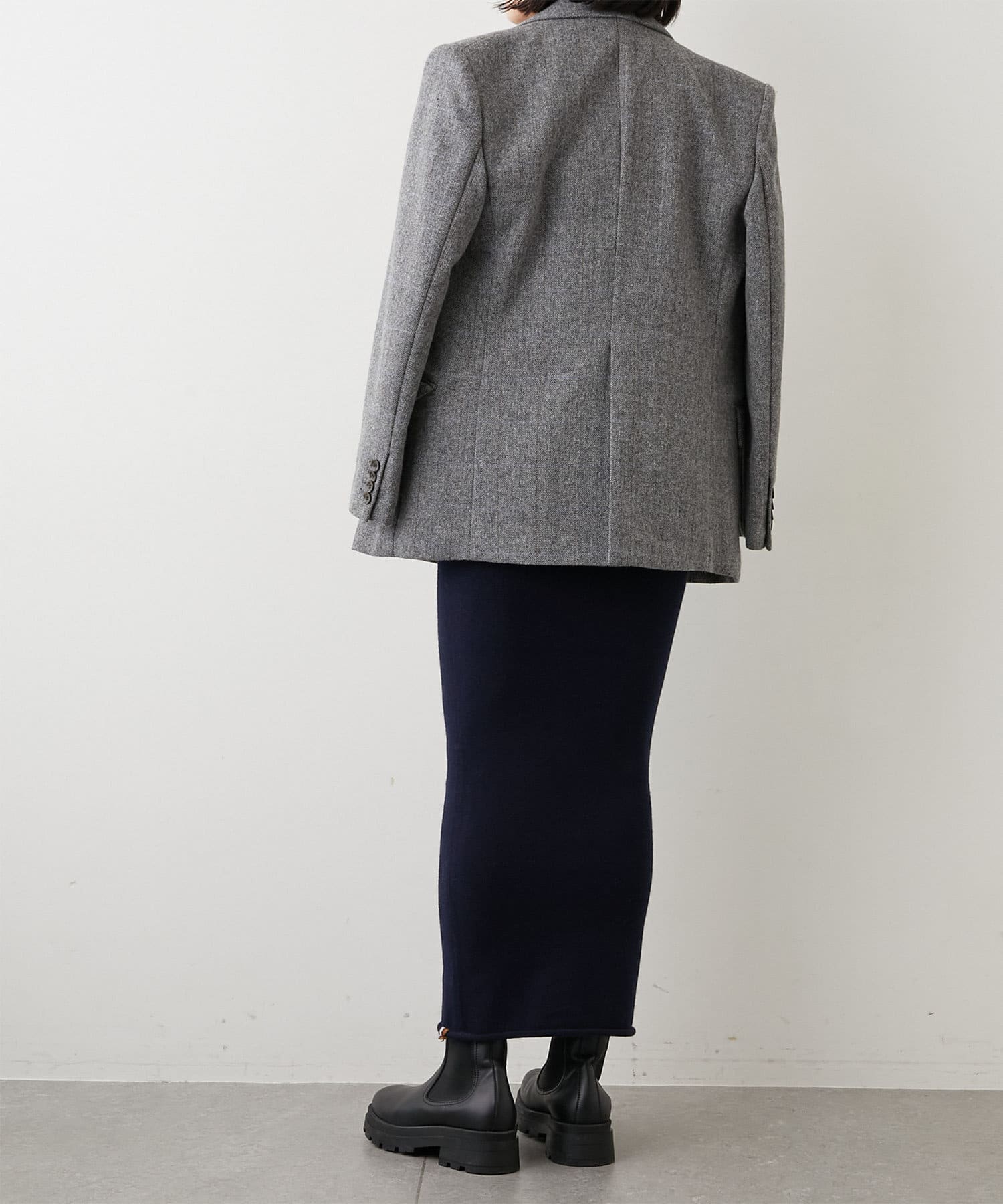 ■柔らかなストレッチカシミアを使用したチューブロングニット。