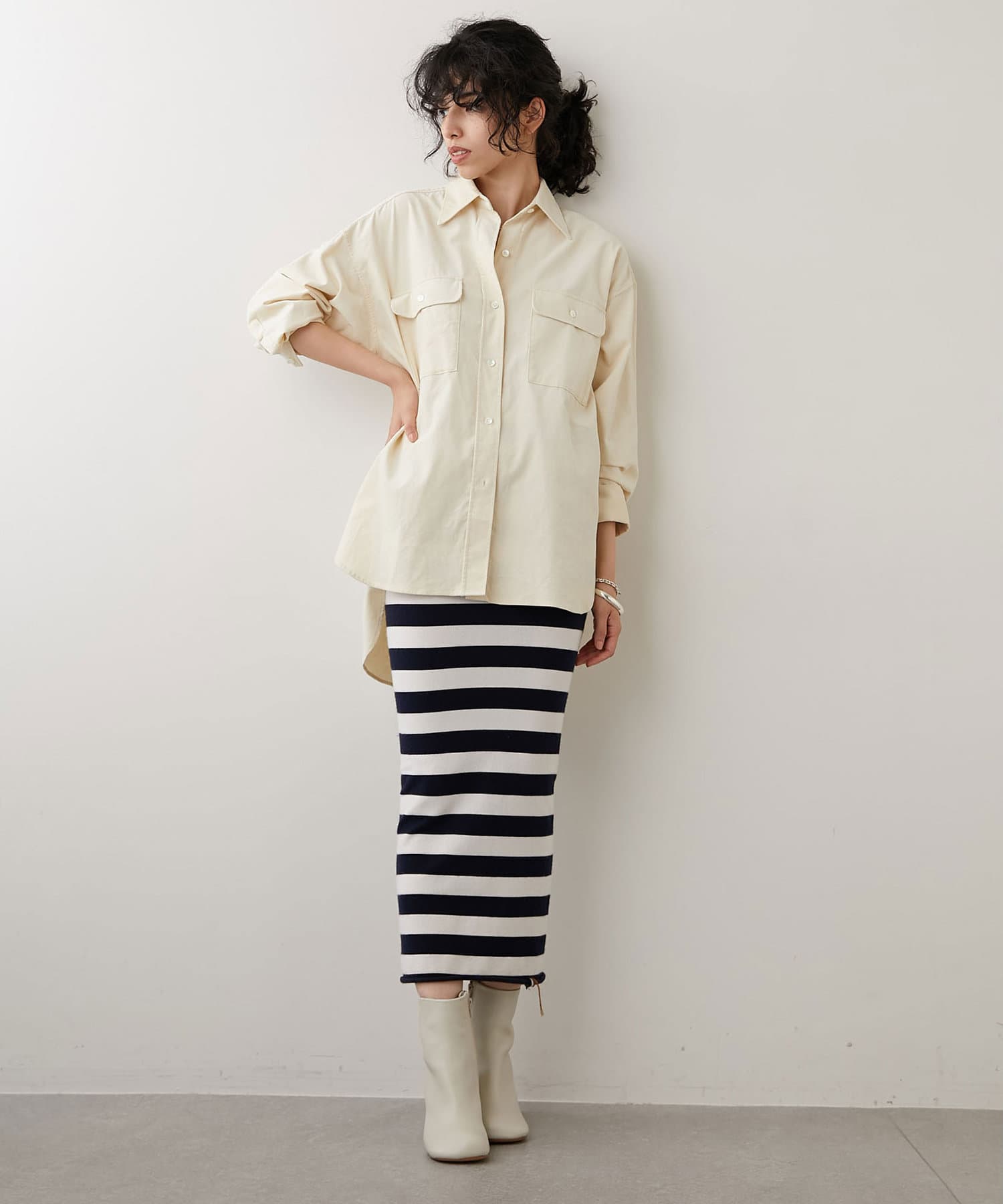 ■ロングスカートやベアワンピとしても着用でき、アレンジ次第で幅広い着こなしが楽しめるミニマルなデザイン。
