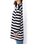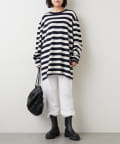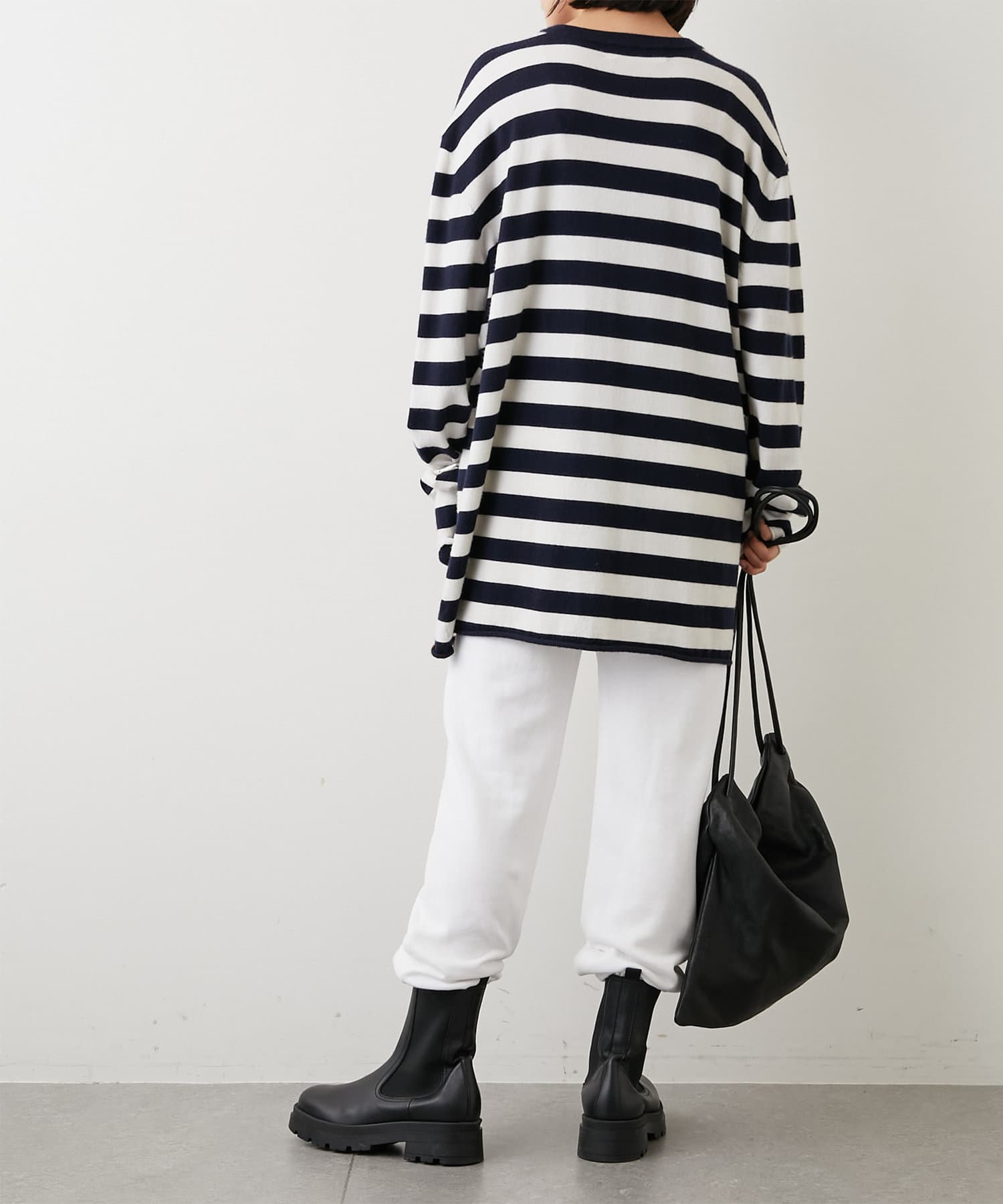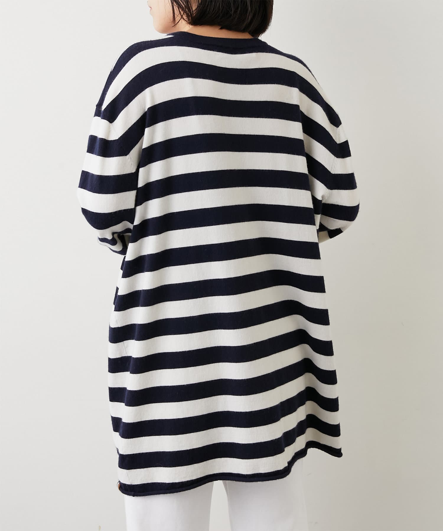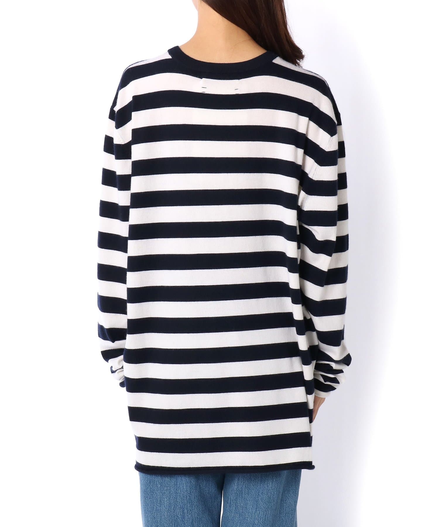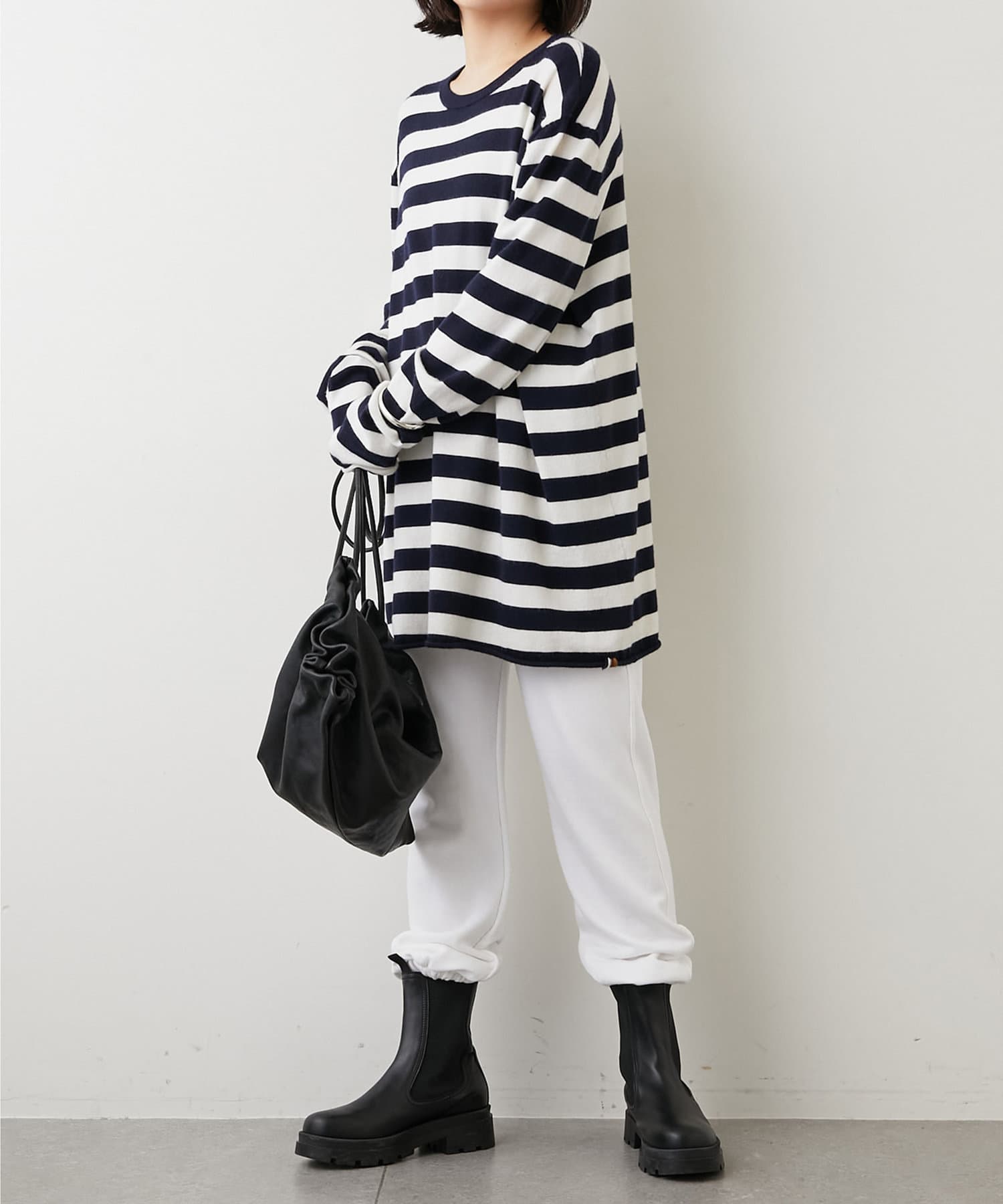 ■マリンスタイルを思わせるネイビー&ホワイトボーダーが印象的なプルオーバーニット。