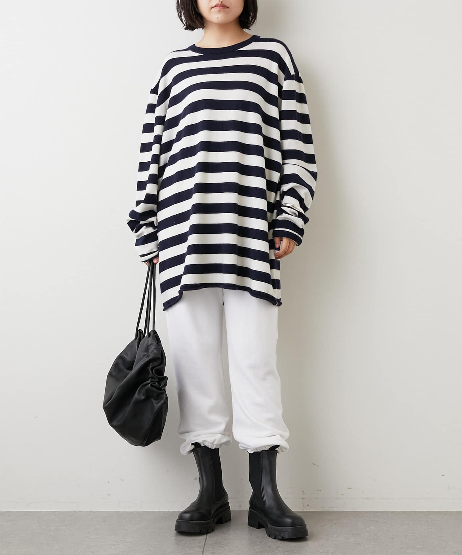 大人のウィンターマリンスタイルを叶える、ネイビー×ホワイトボーダー。