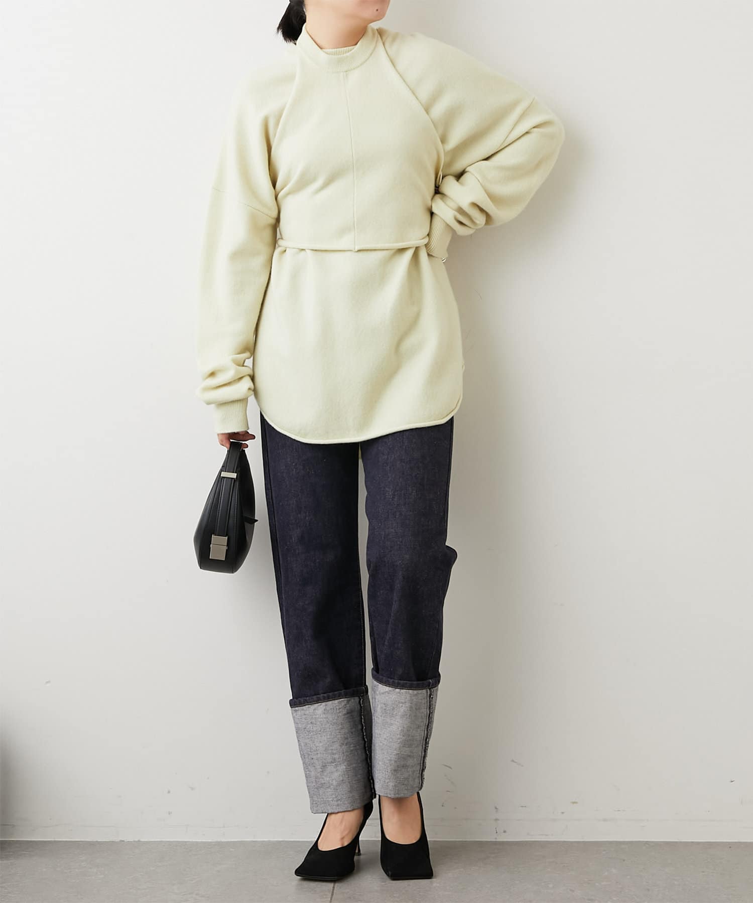 ■長め袖のボリューム感やロールエッジのヘムがエフォートレスな抜け感を演出。