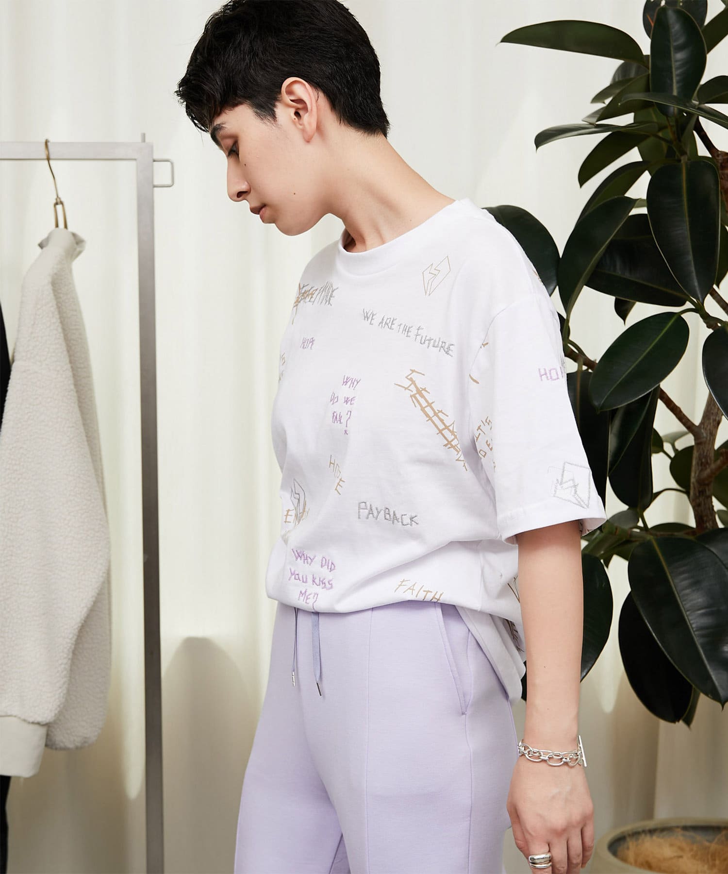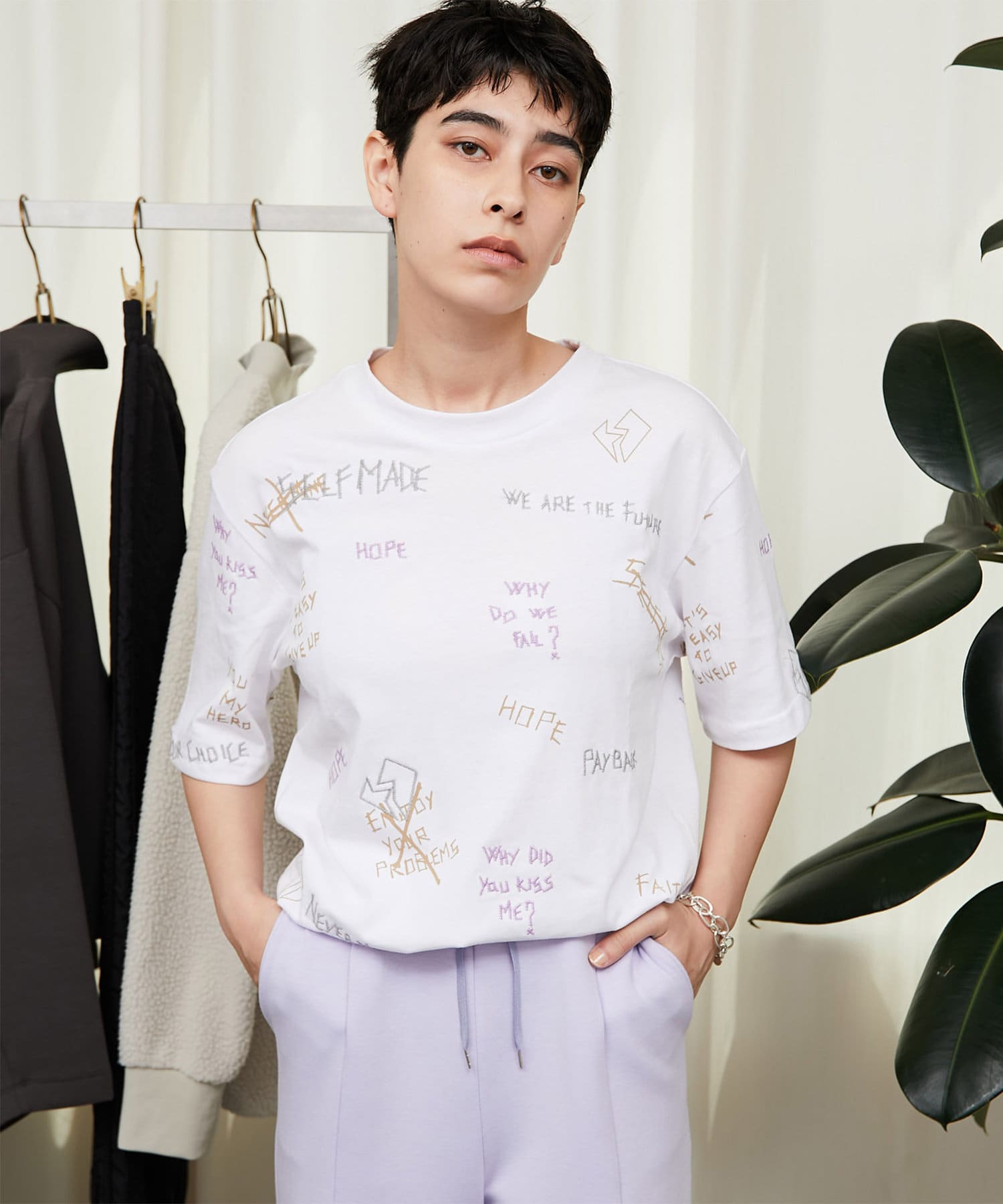 単純にプリントするだけでなくハンドクラフトの要素を取り入れることで、カジュアルなアイテムながらもラグジュアリーな大人のストリートスタイルが決まる一着です。