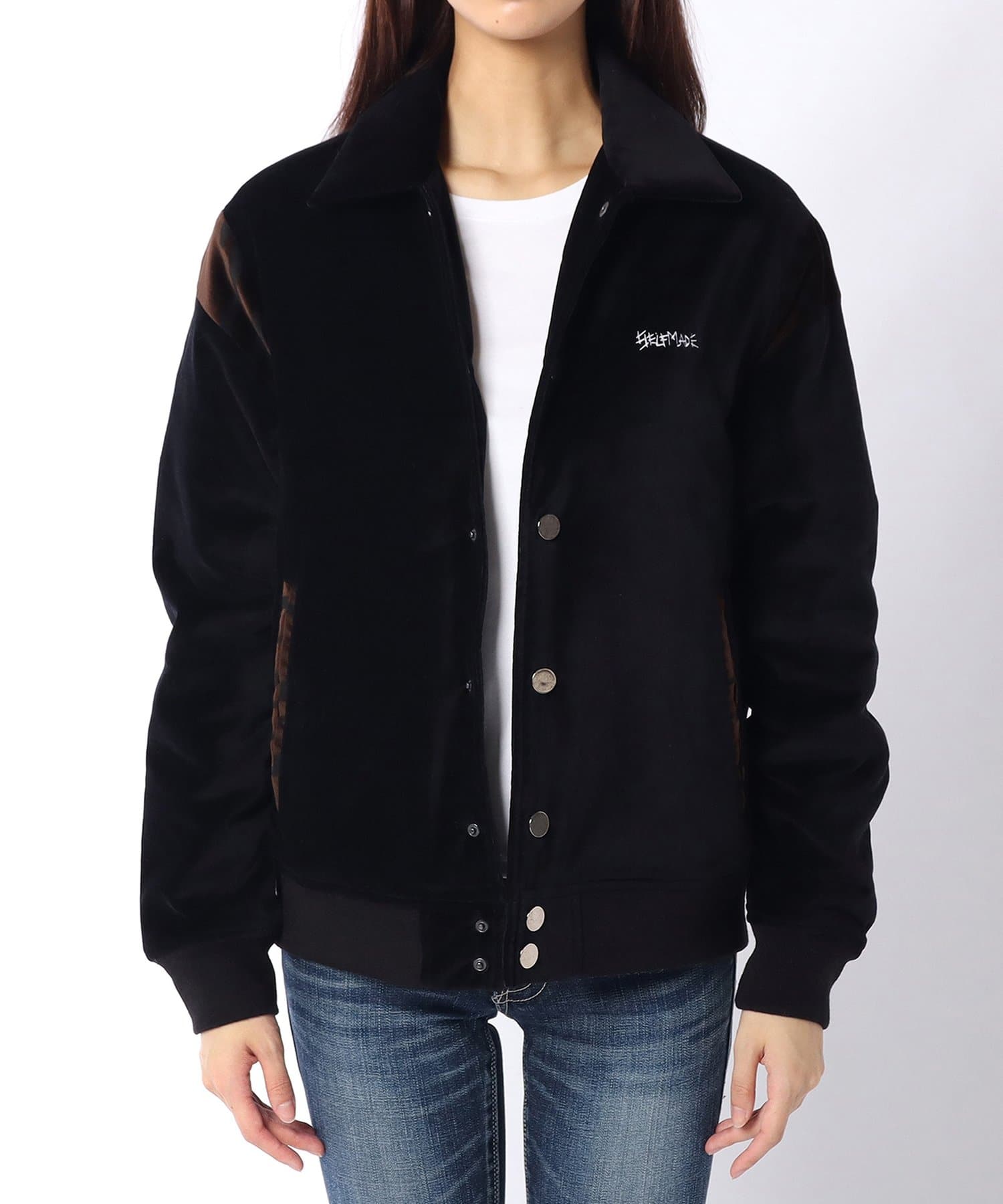 バックスタイルに施された刺繍ロゴが目を惹く、SELF MADE BY GIANFRANCO VILLEGASのスタジャン。