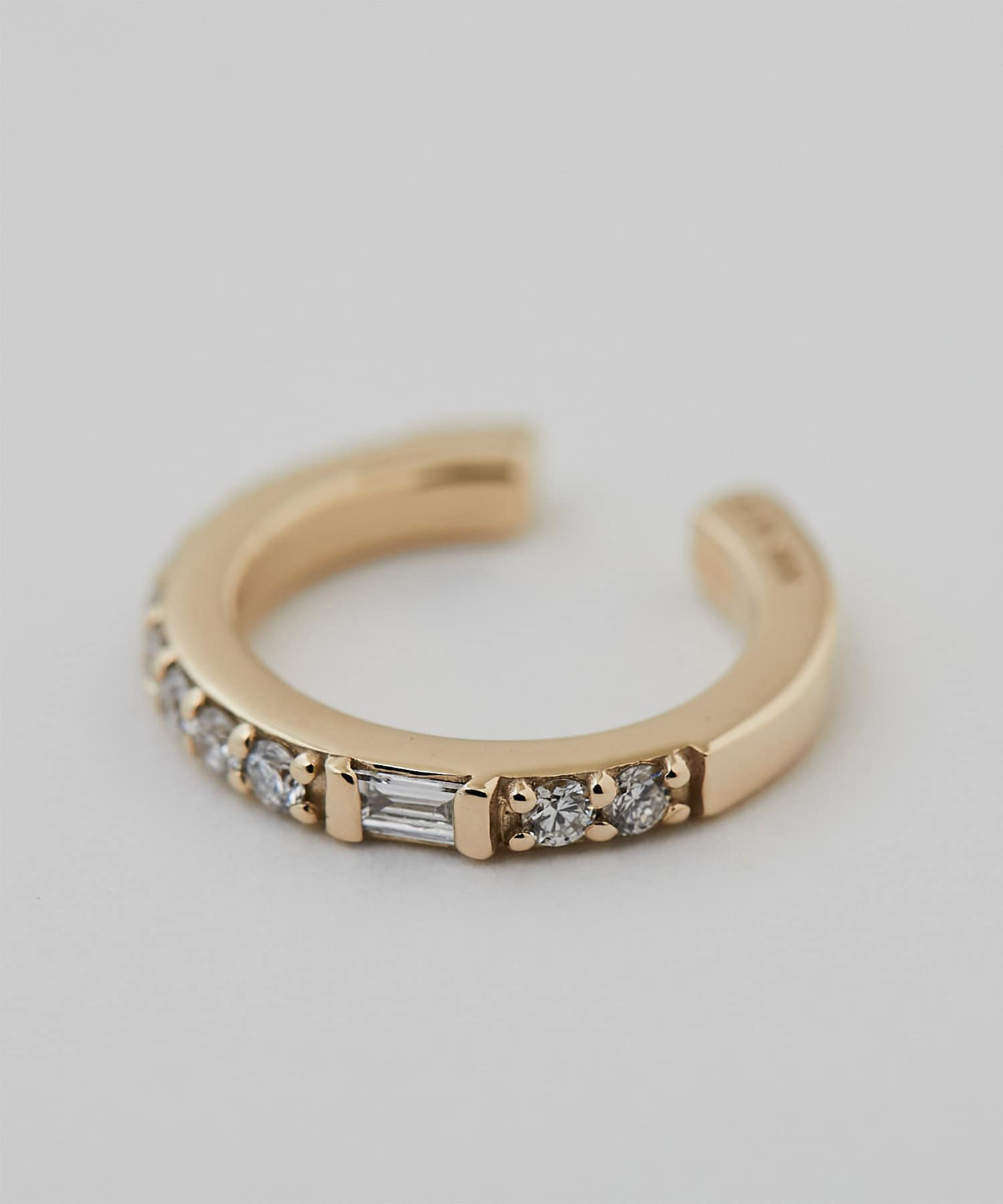 贅沢にあしらわれたダイヤモンドが存在感を放つミニイヤーカフ。