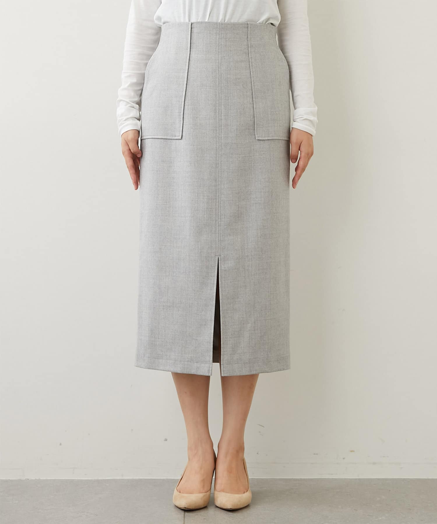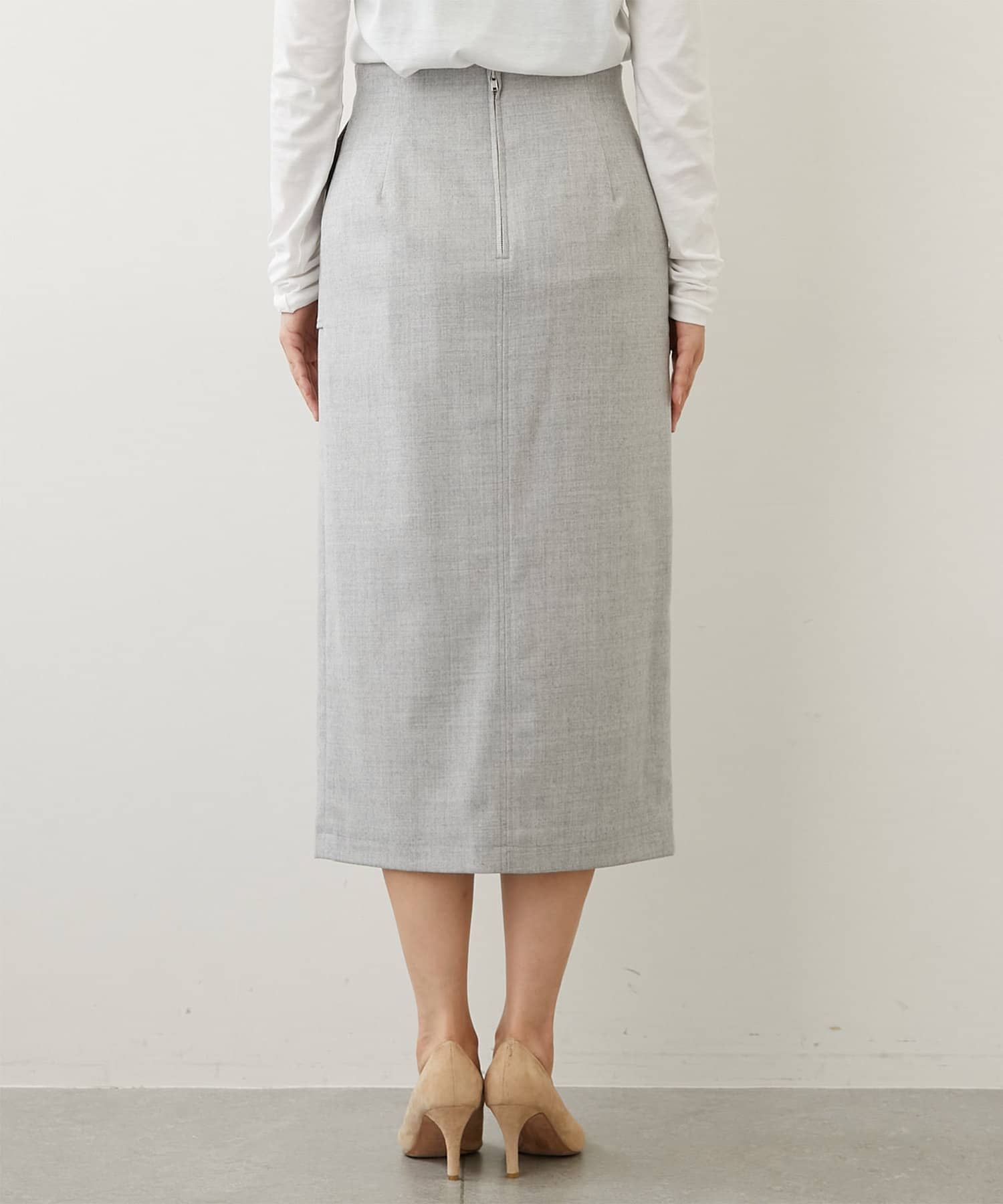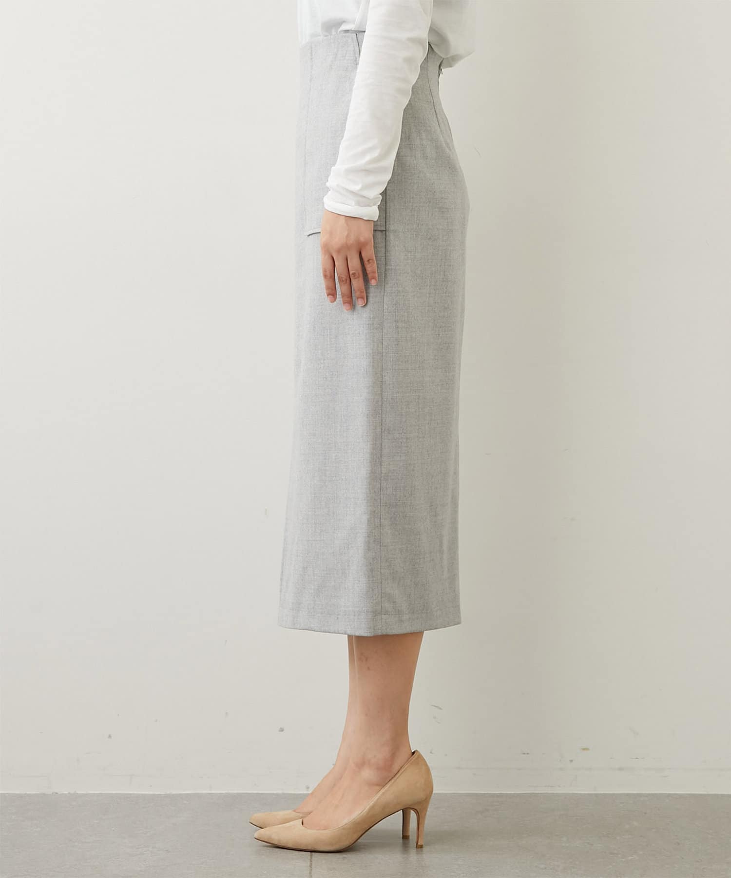 洗練された女性らしさを感じる、ストレートシルエットのタイトスカート。