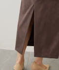 ストレッチ性のある柔らかな生地感と、深めのスリットディテールによって足さばきもよく、ストレスフリーな着心地が魅力です。