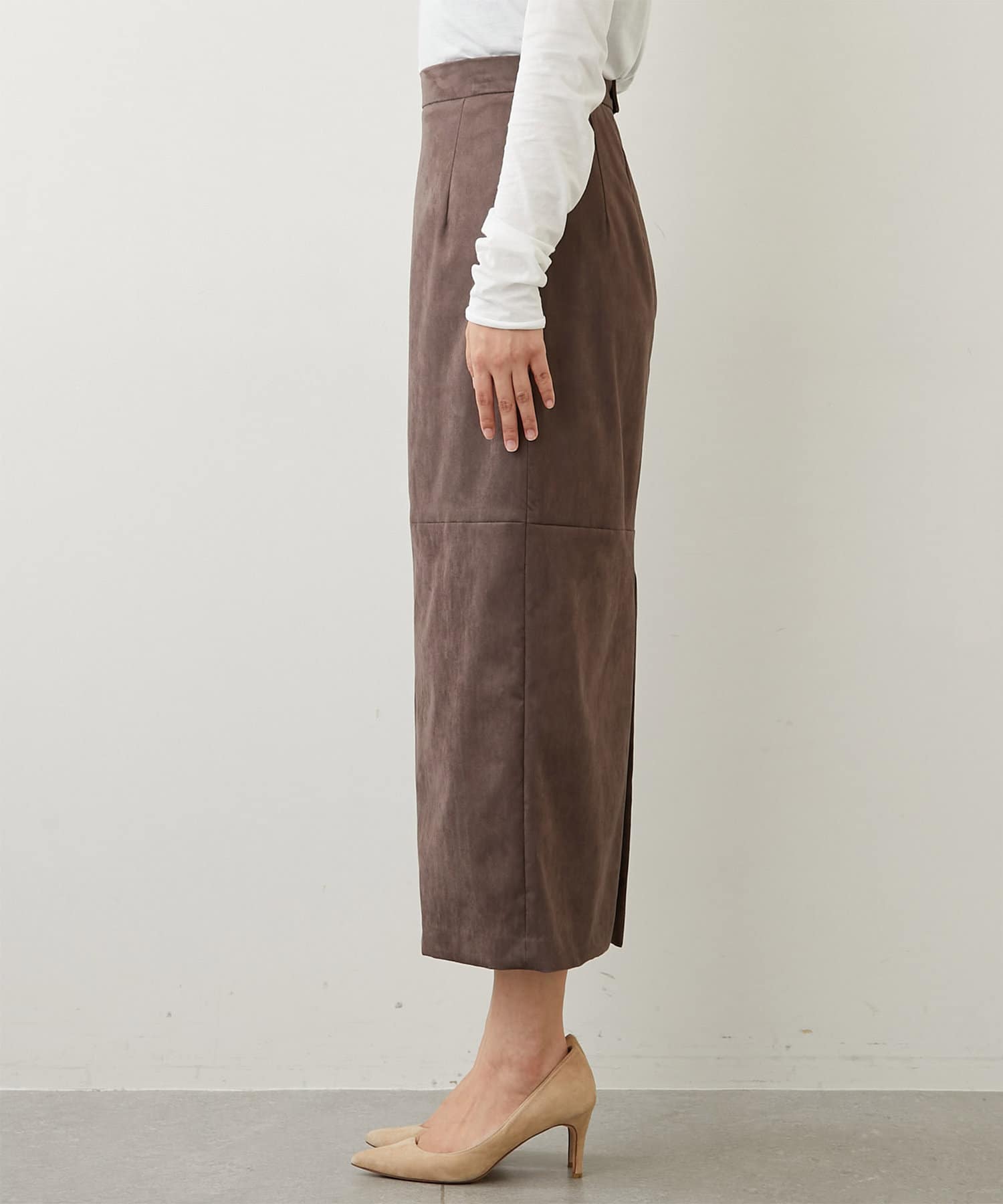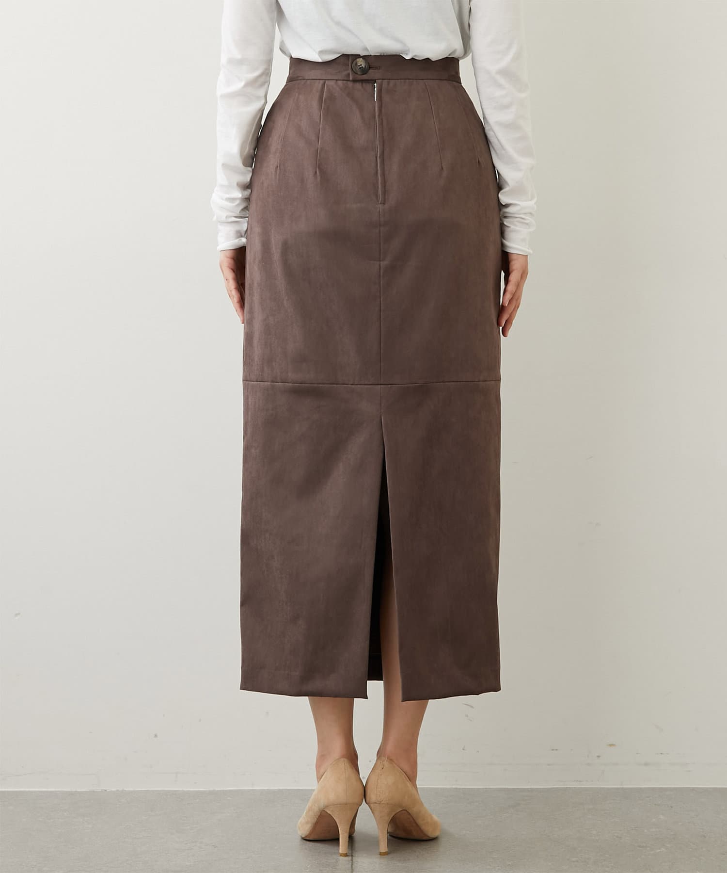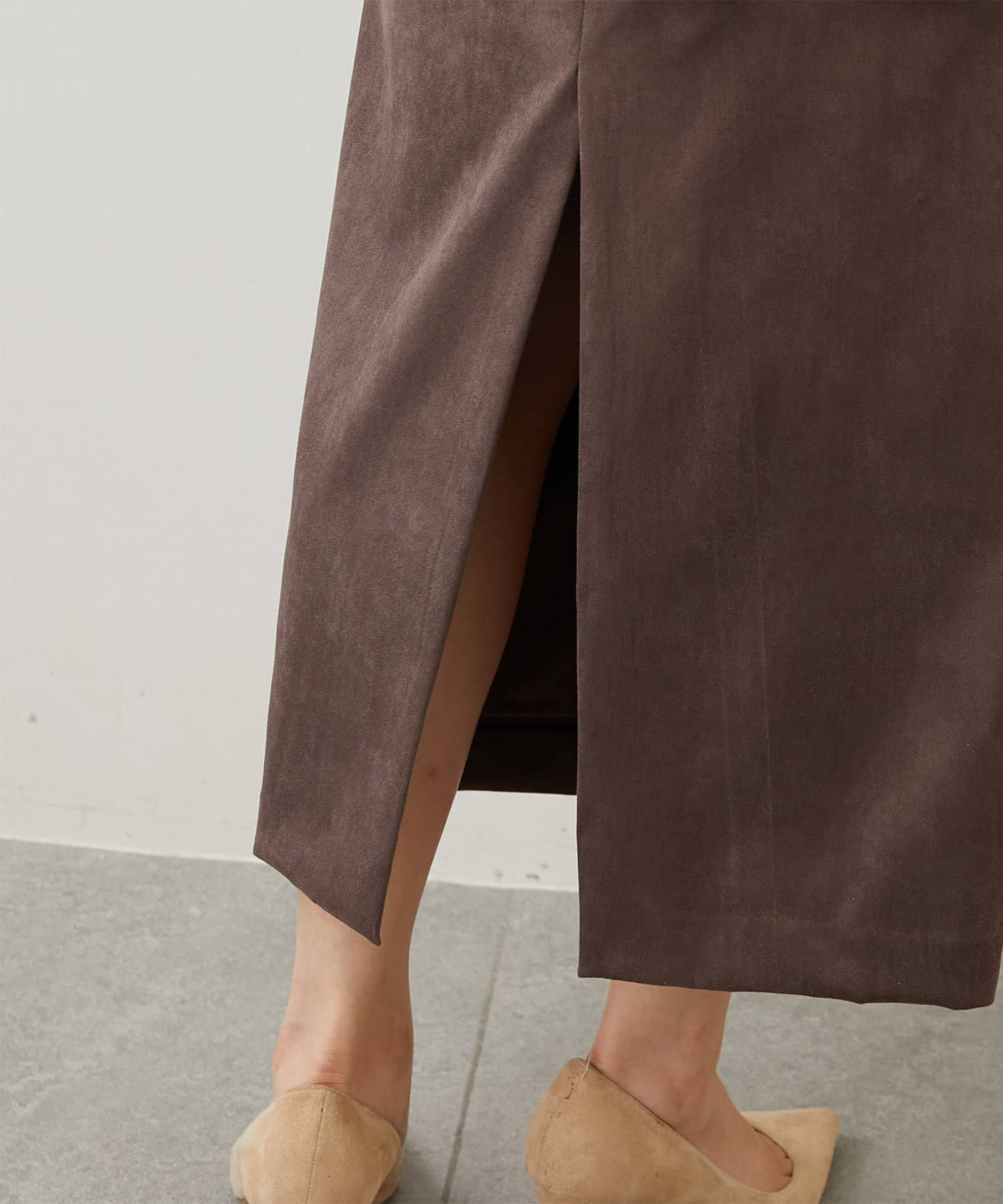 上質感のあるフェイクスエードを贅沢に使用したロングタイトスカート。
