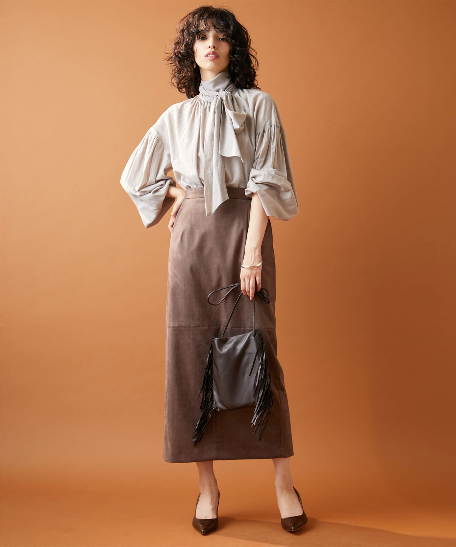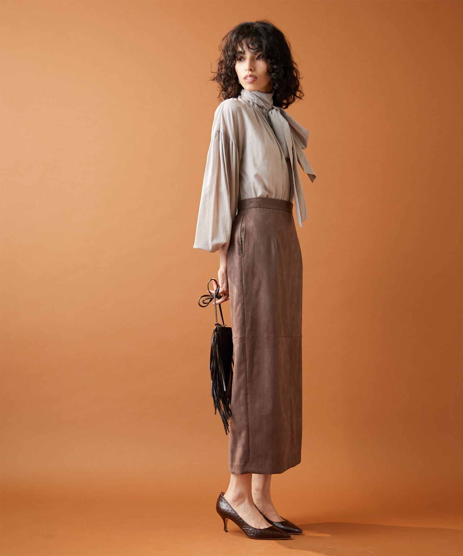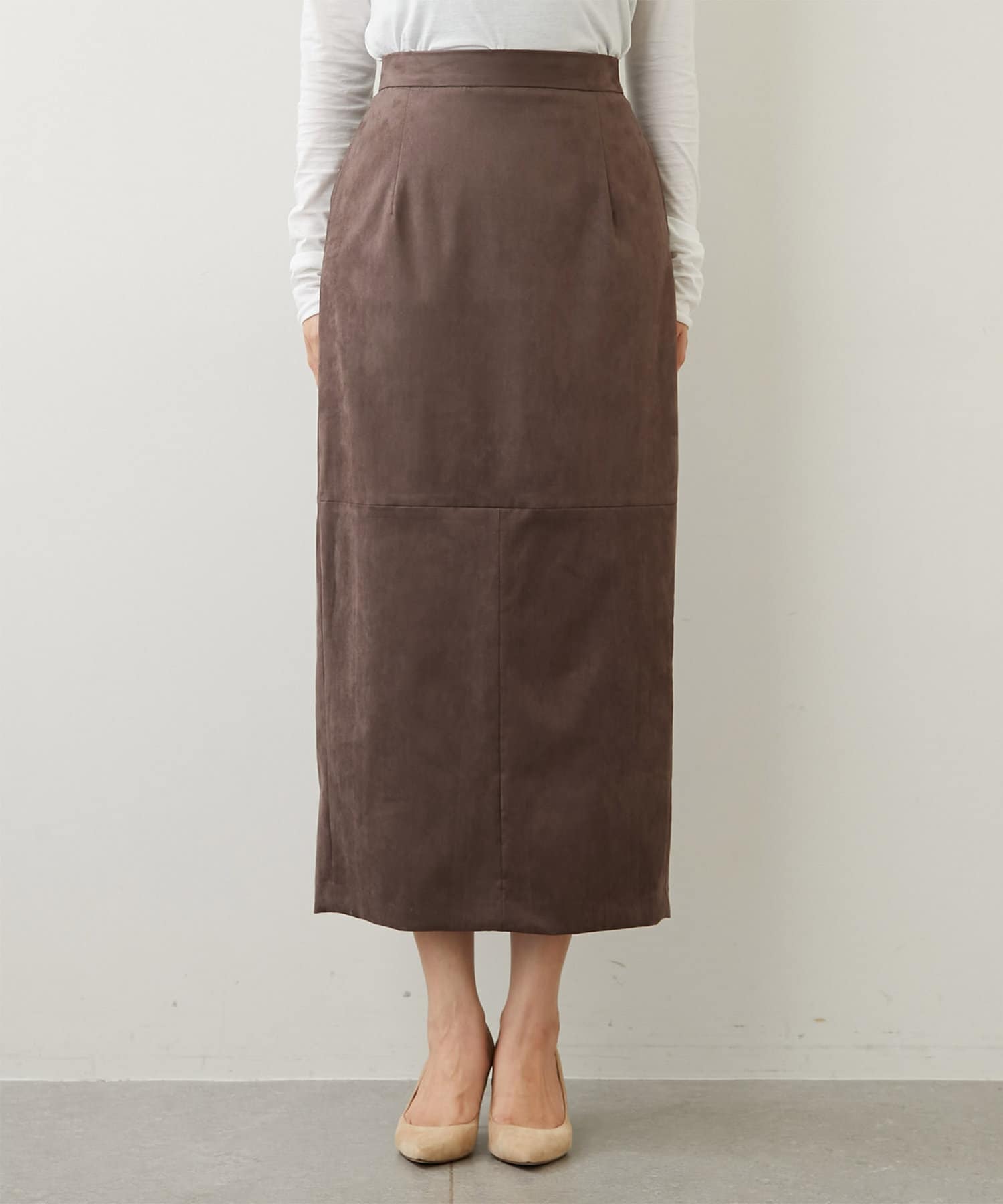 上質感のあるフェイクスエードを贅沢に使用したロングタイトスカート。
