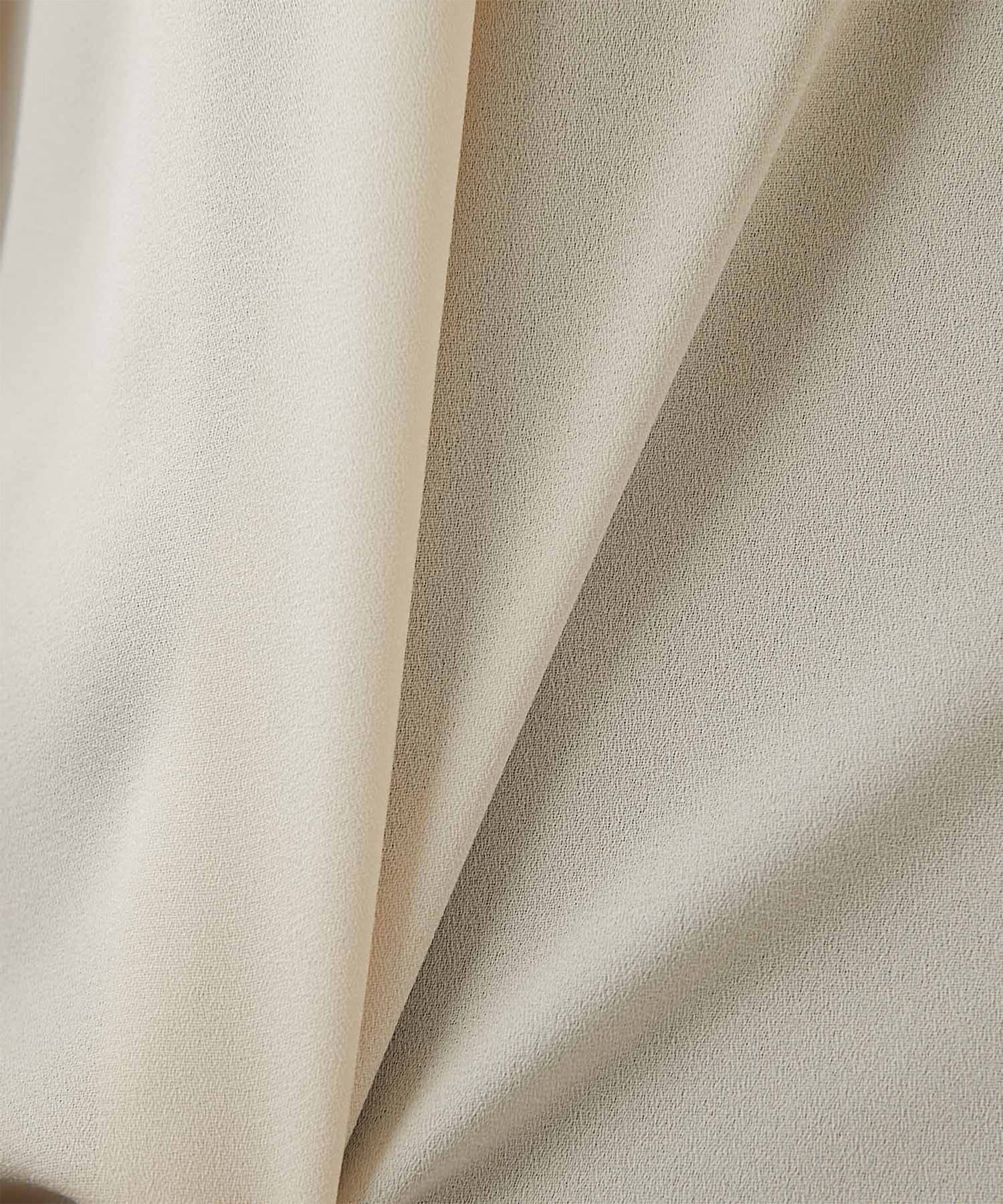 強撚糸によるシャリ感と落ち感が特徴で、程よい透け感と梨地ならではの高級感のある風合いが上品な印象を与えてくれます。