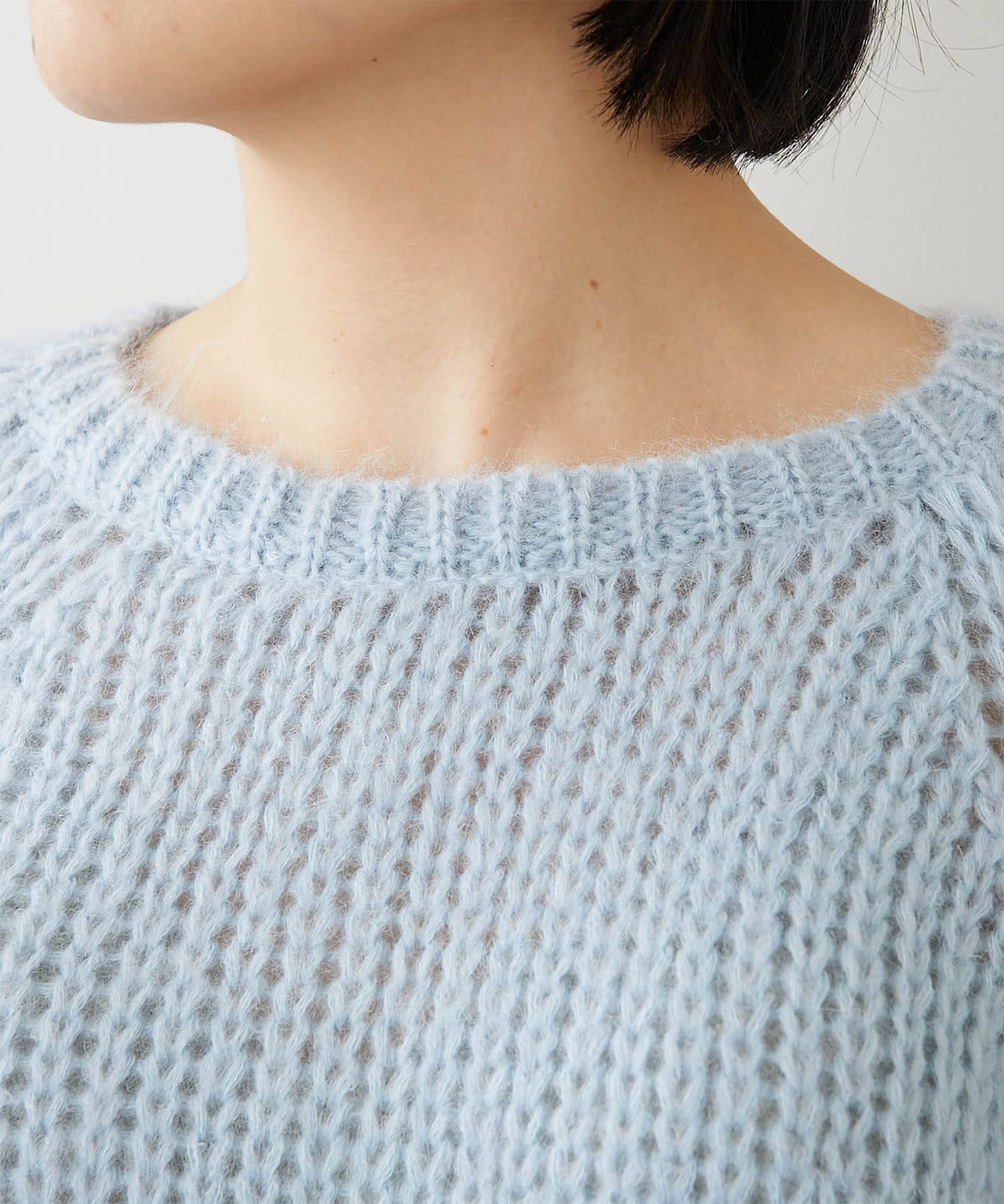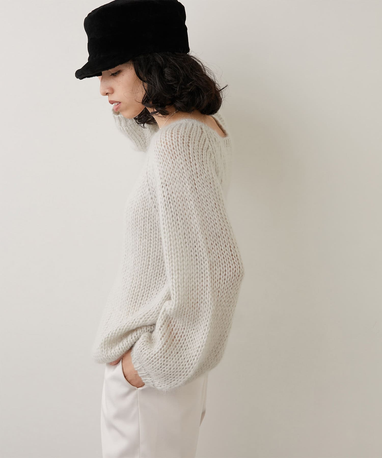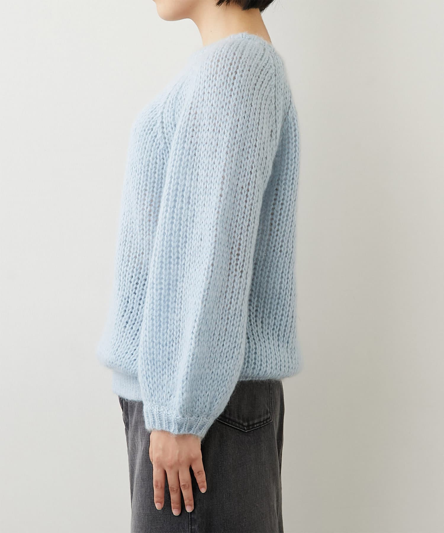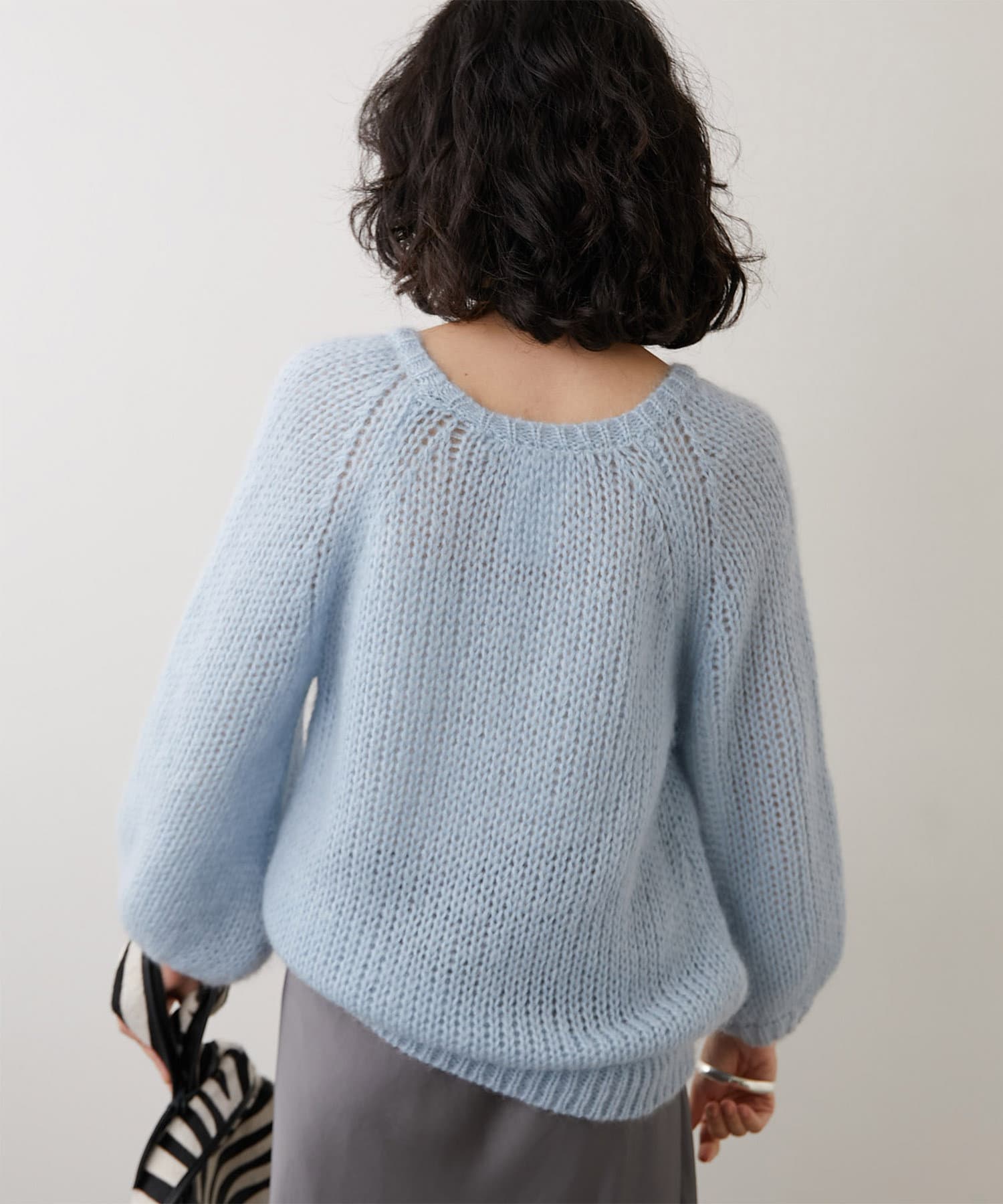 モヘヤのふんわりとした風合いと、ざっくりとした編地が特徴のニットプルオーバー。