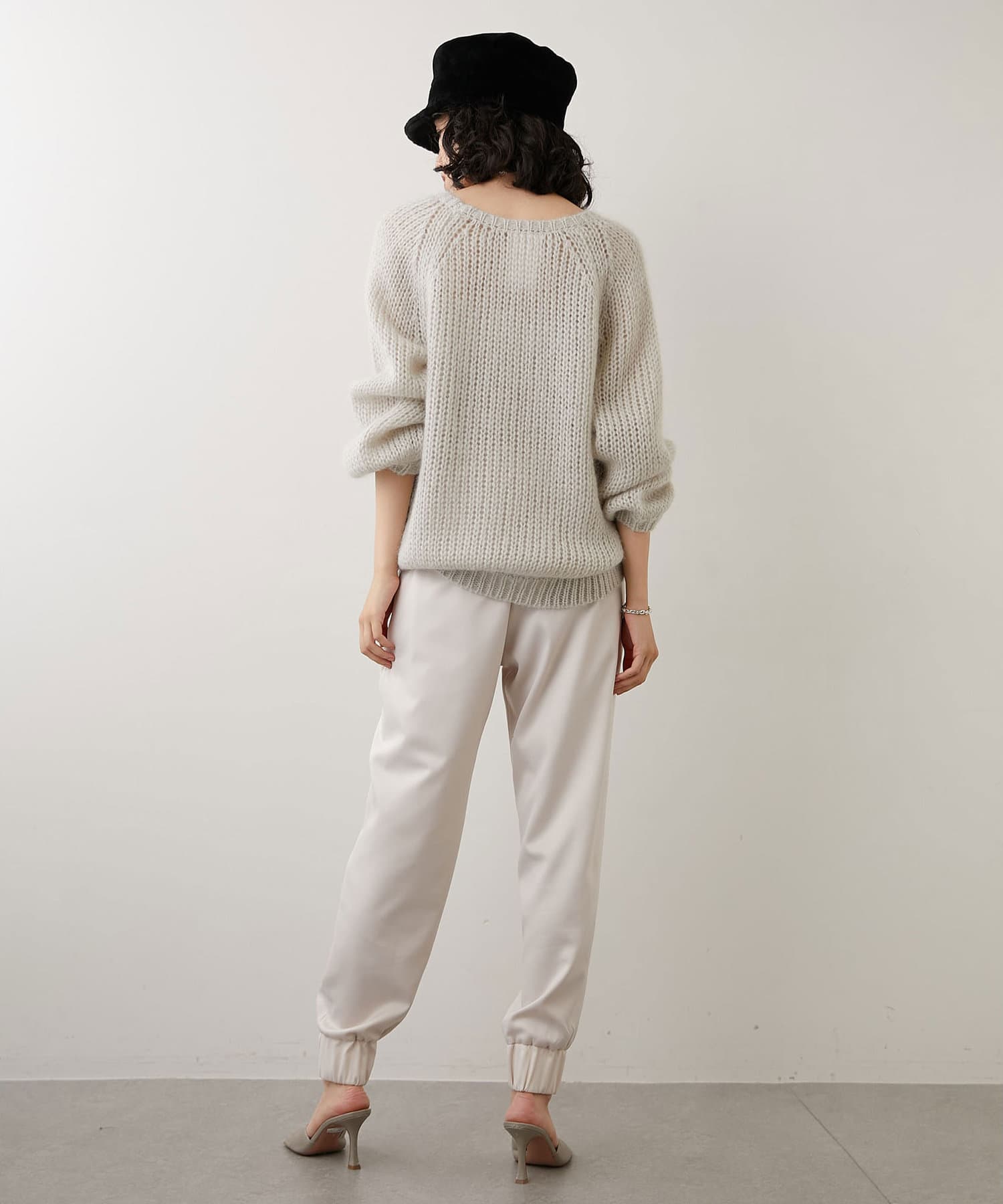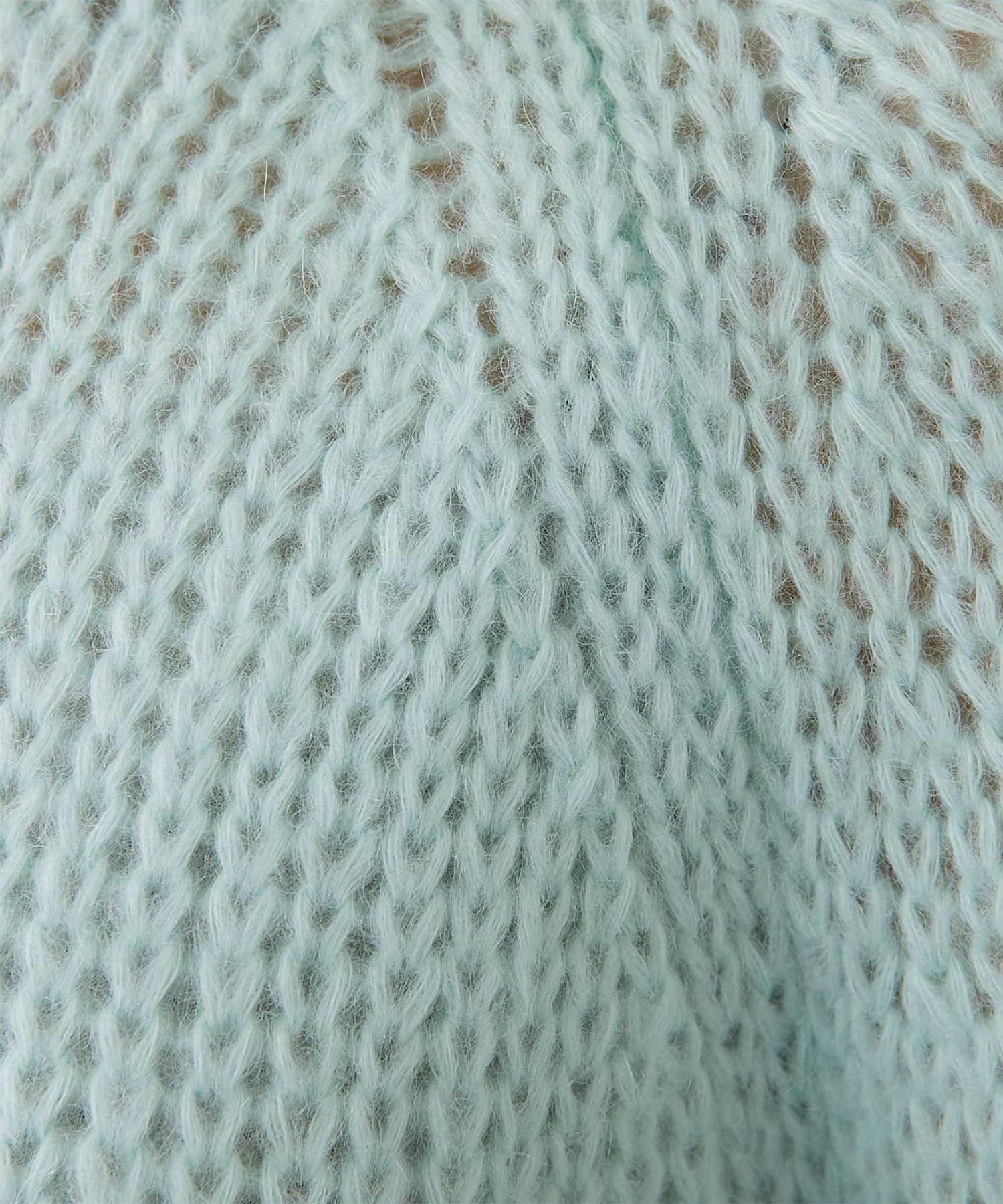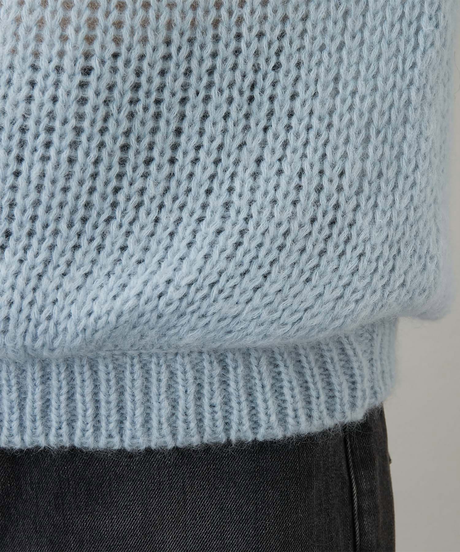 モヘヤのふんわりとした風合いと、ざっくりとした編地が特徴のニットプルオーバー。