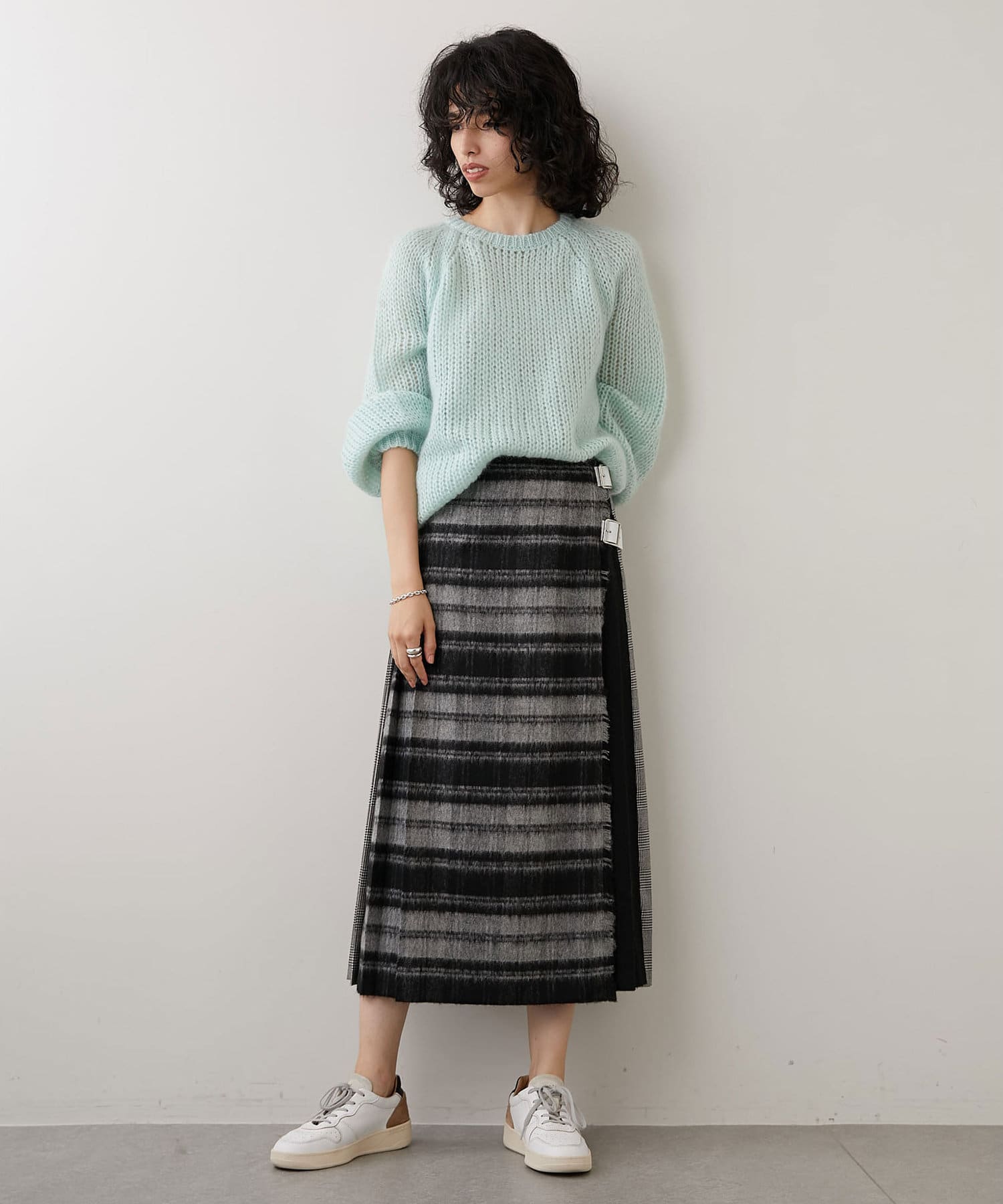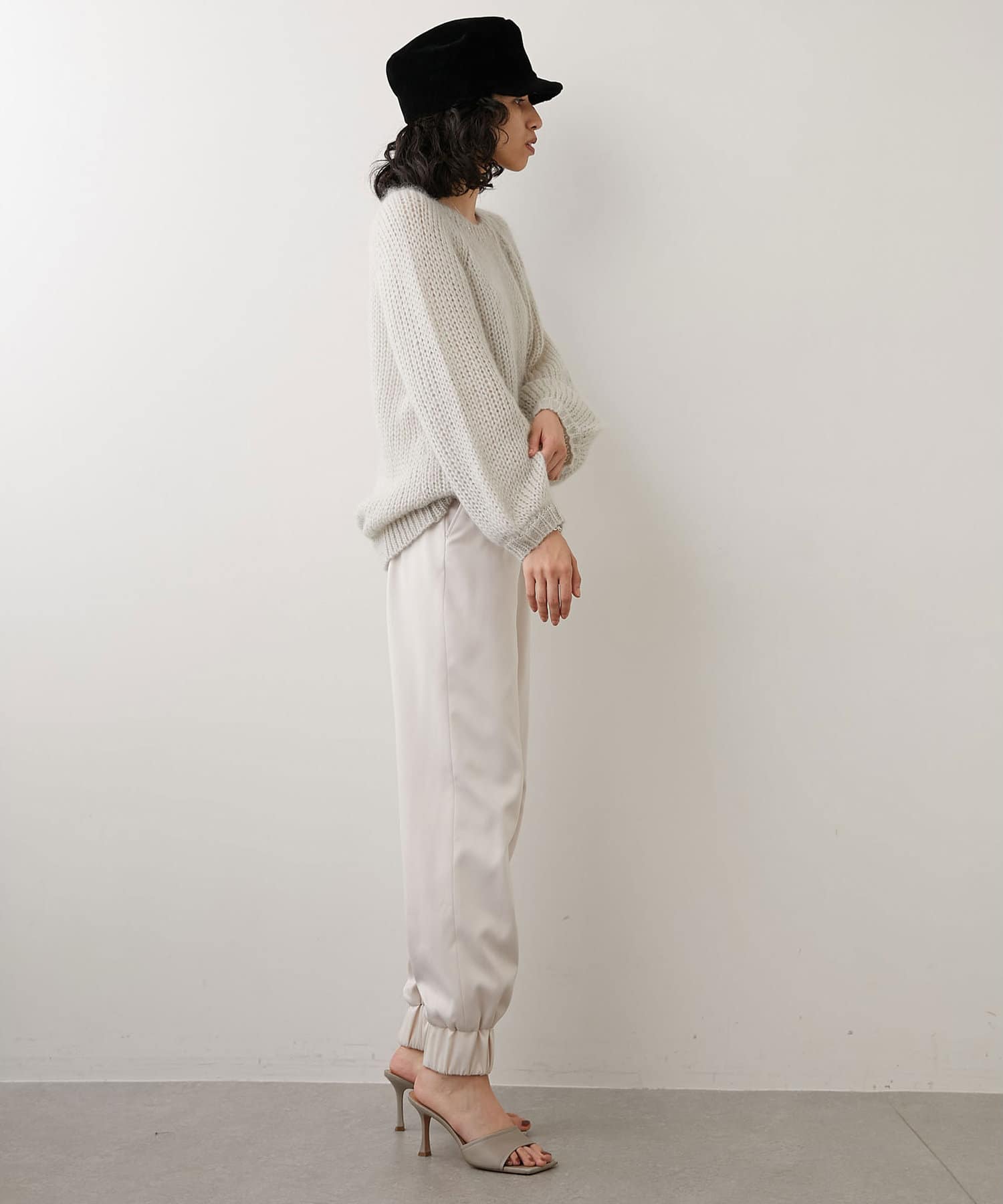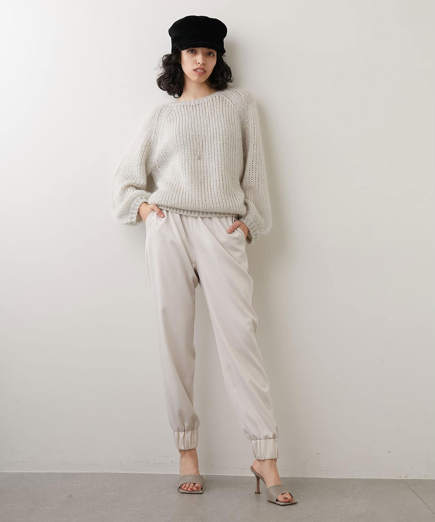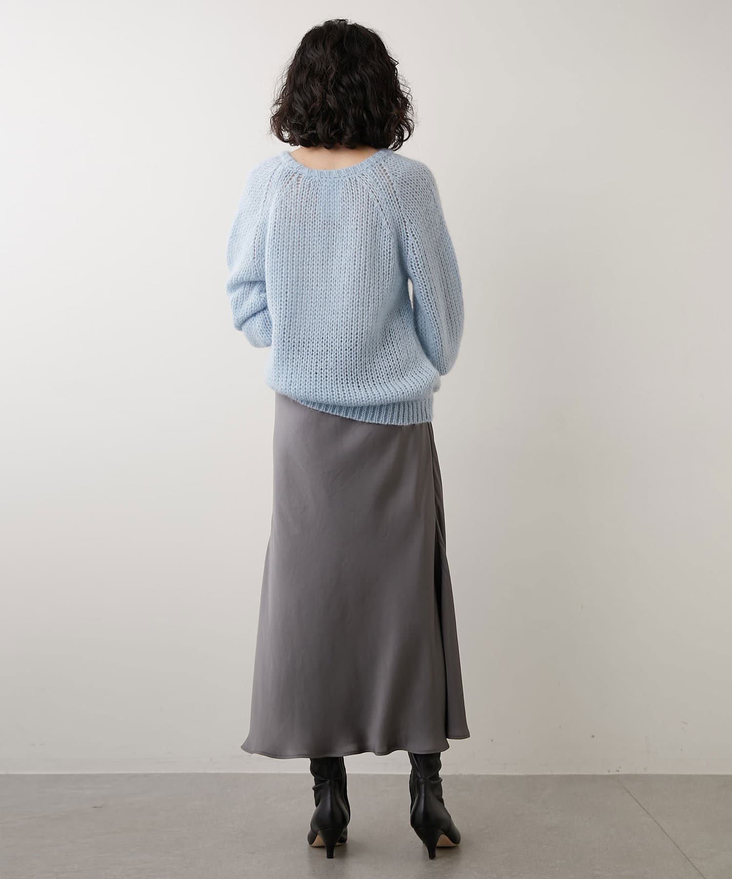 モヘヤのふんわりとした風合いと、ざっくりとした編地が特徴のニットプルオーバー。
