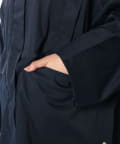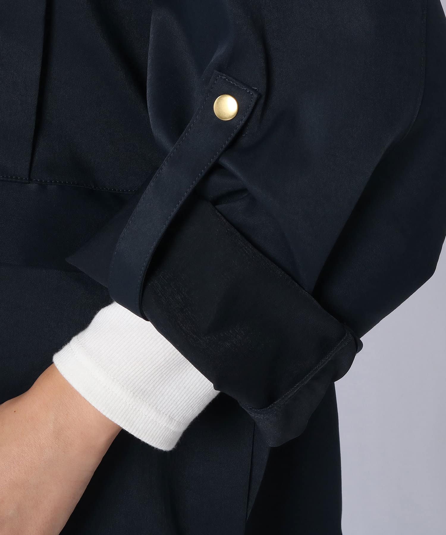 サイドスリットに施したドットボタンは、合わせるアイテムや気分によって開けても閉じてもバランスよく着ていただけ、袖口にも内側にドットボタンつきのタブを施しているので、袖をまくってインナーとのレイヤードを楽しむのもおすすめ。