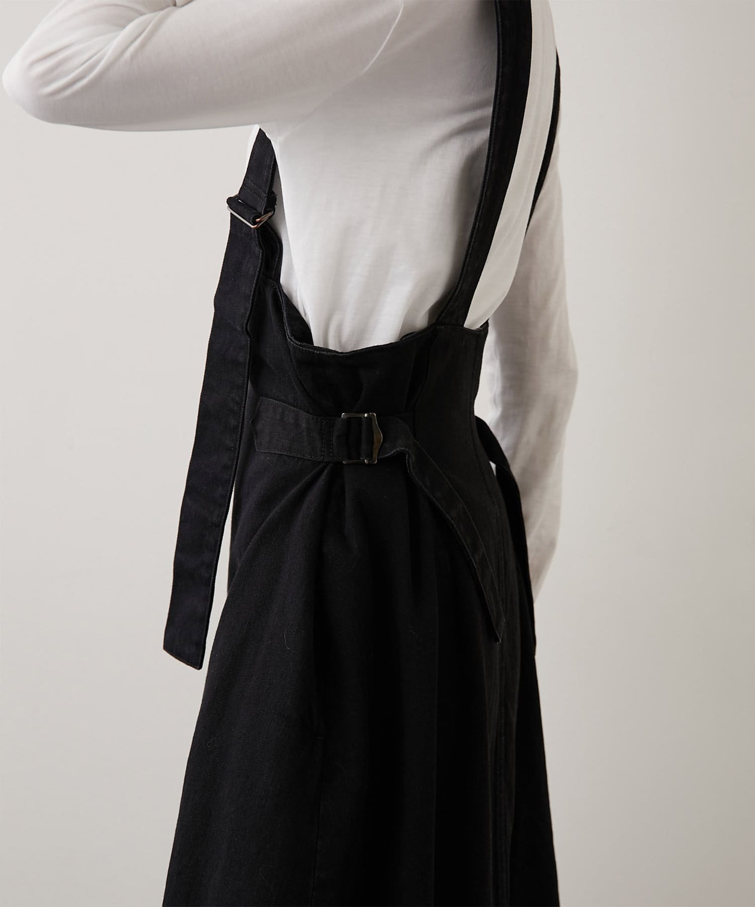 大人らしく着こなせるブラックデニムのジャンパースカート