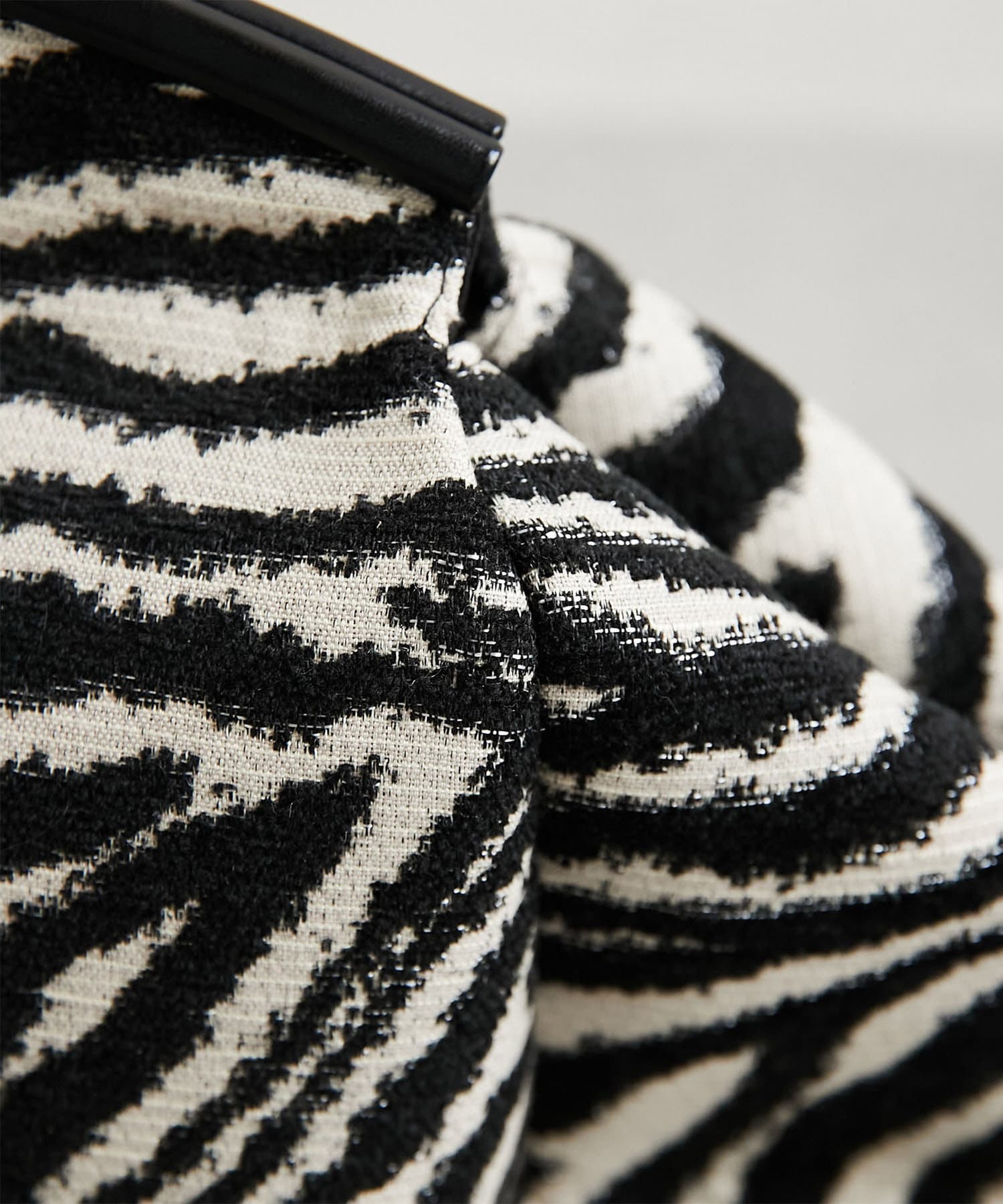立体感のあるシルエットが印象的で、オリジナルのジャガードの質感がゼブラ柄に独特な表情をプラスするデザイン。
