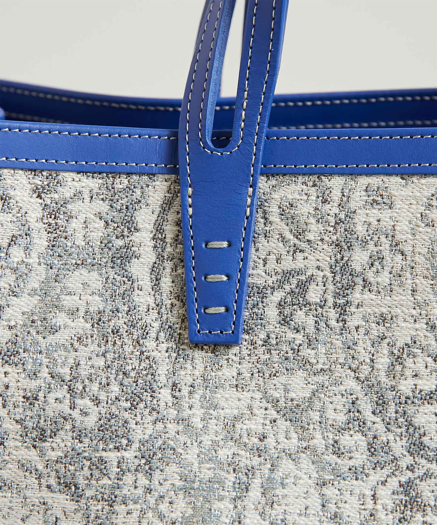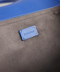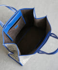 シックで柔らかい色合いのペイズリー柄に、別注カラーの鮮やかなブルーのレザートリミングが目を惹き、他にはないエッジの効いたデザインに仕上げました。