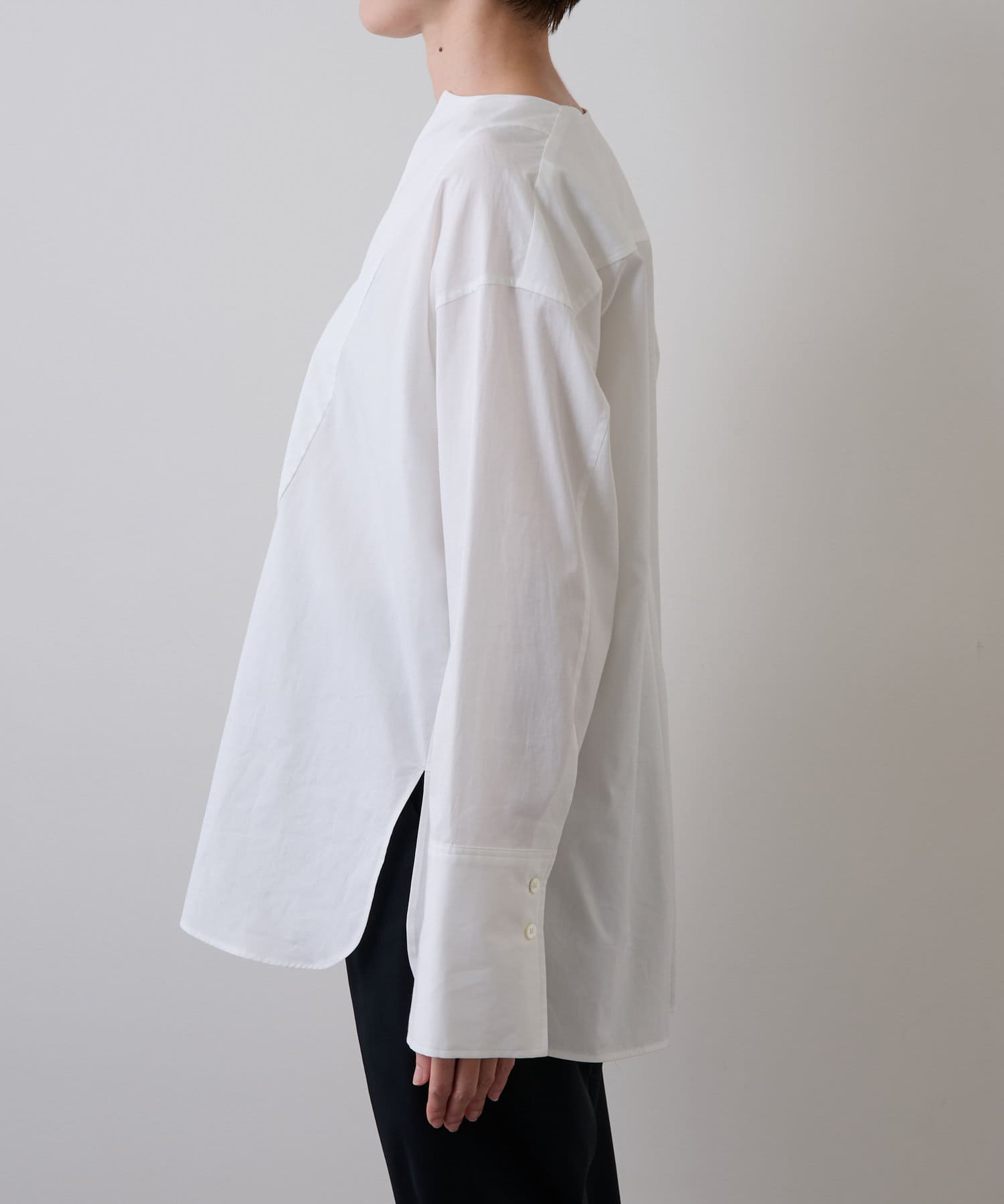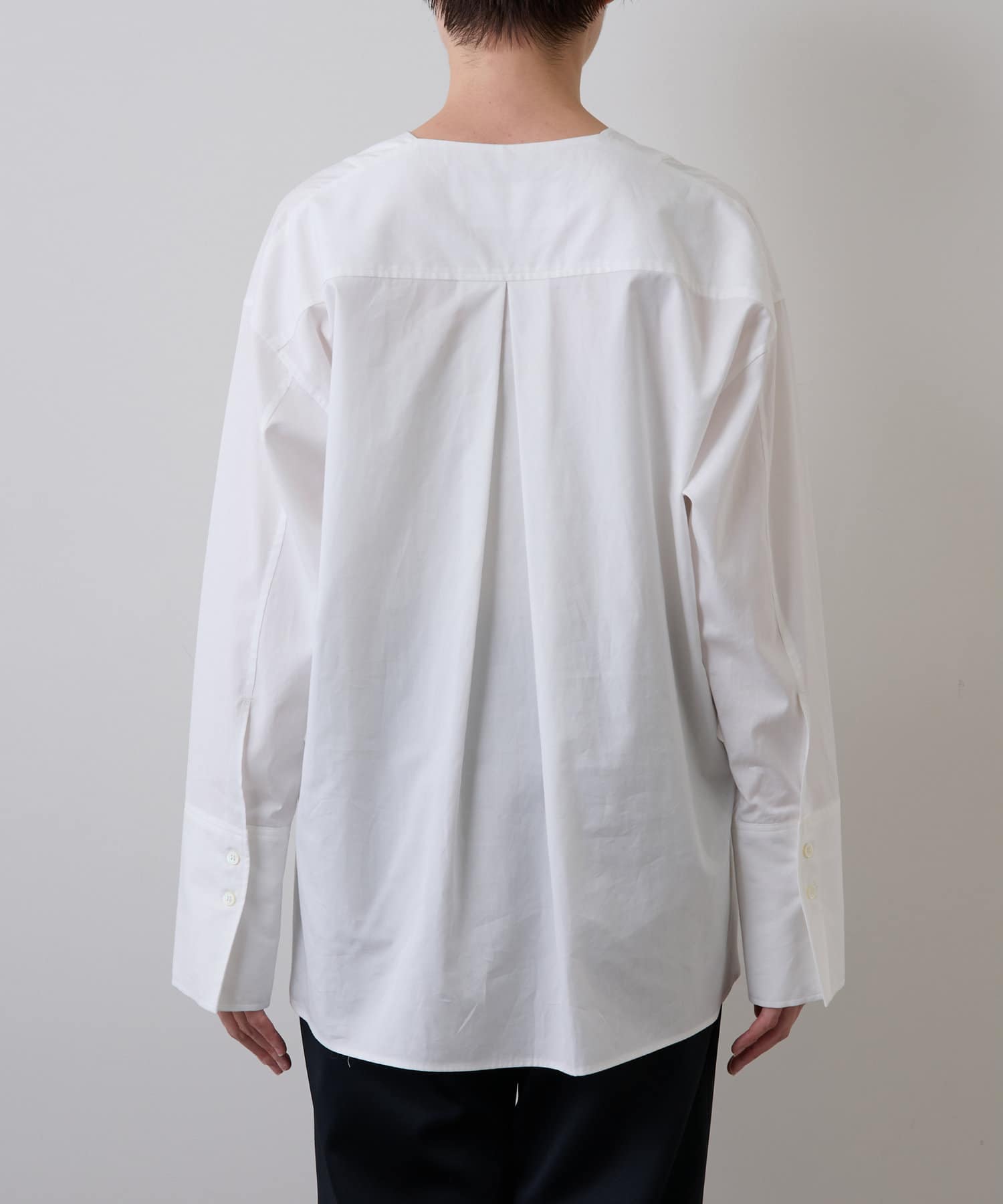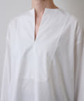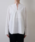 程よいハリ感のある綿素材を使用し、パリッとした風合いとドレスシャツのようなデザインがクリーンな印象をあたえる一着。