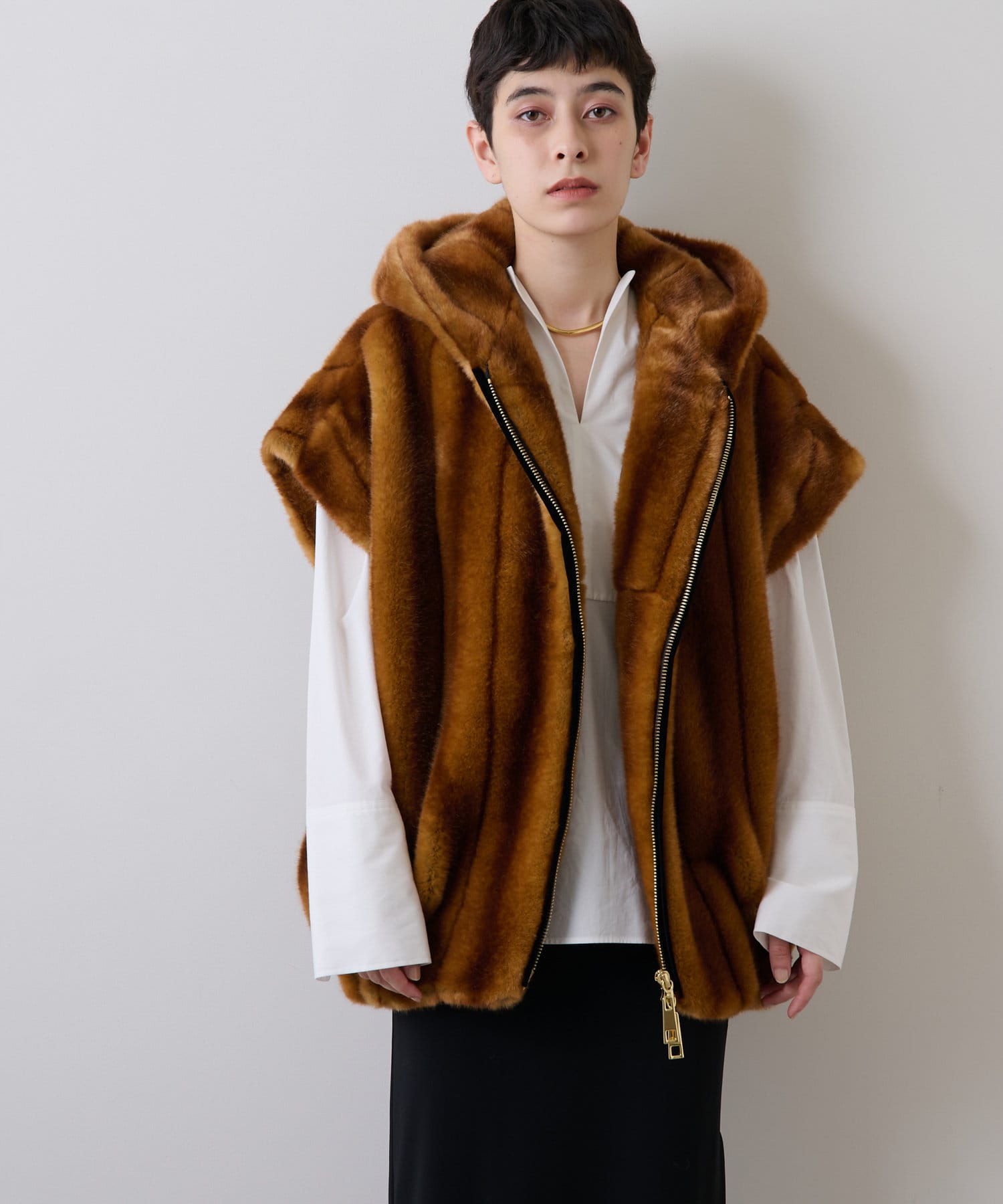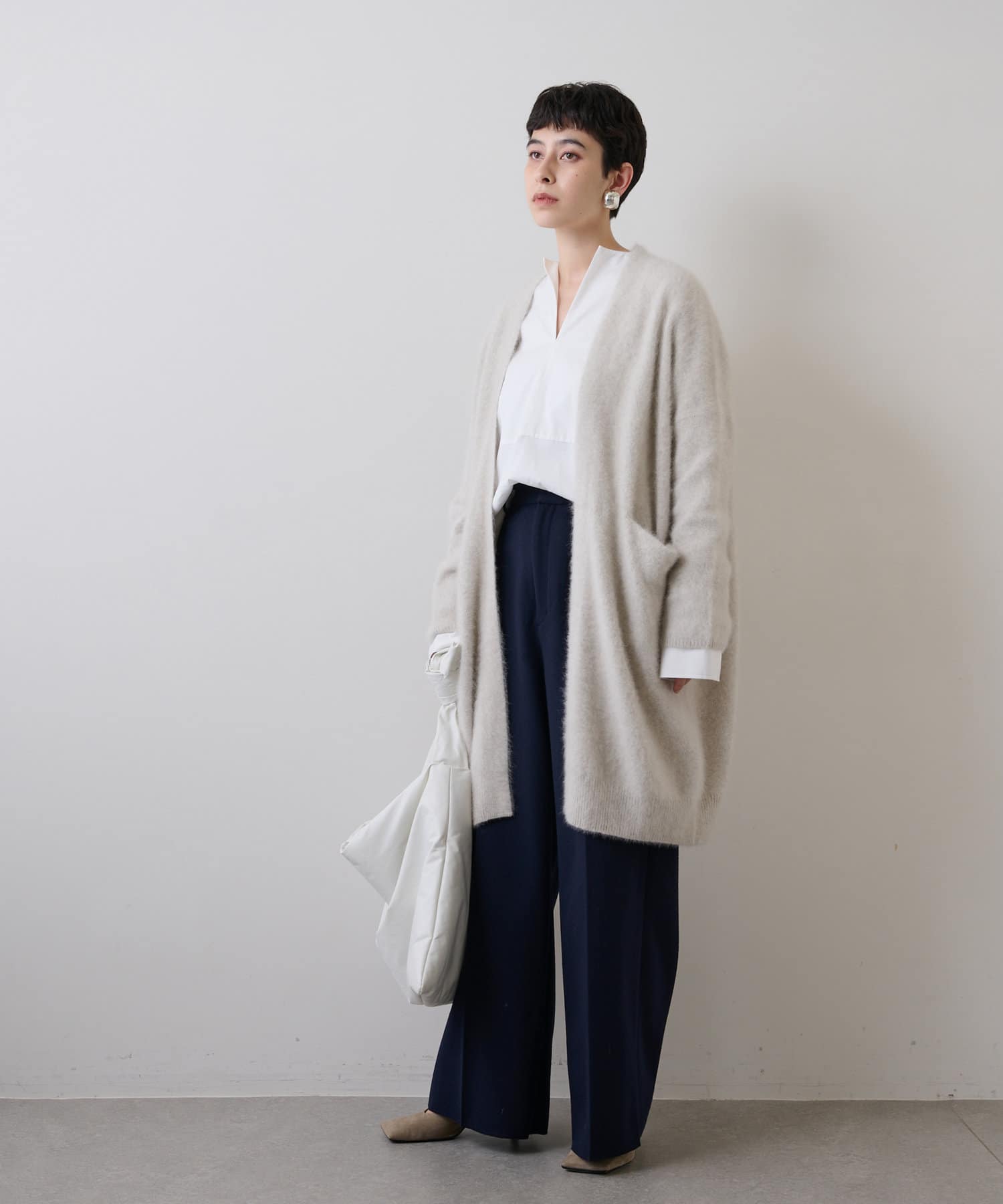 ラウンドヘムや両サイドのスリットが軽やかな抜け感をプラスしてくれるので、ボトムインせずにさらりと着こなしても様になります。