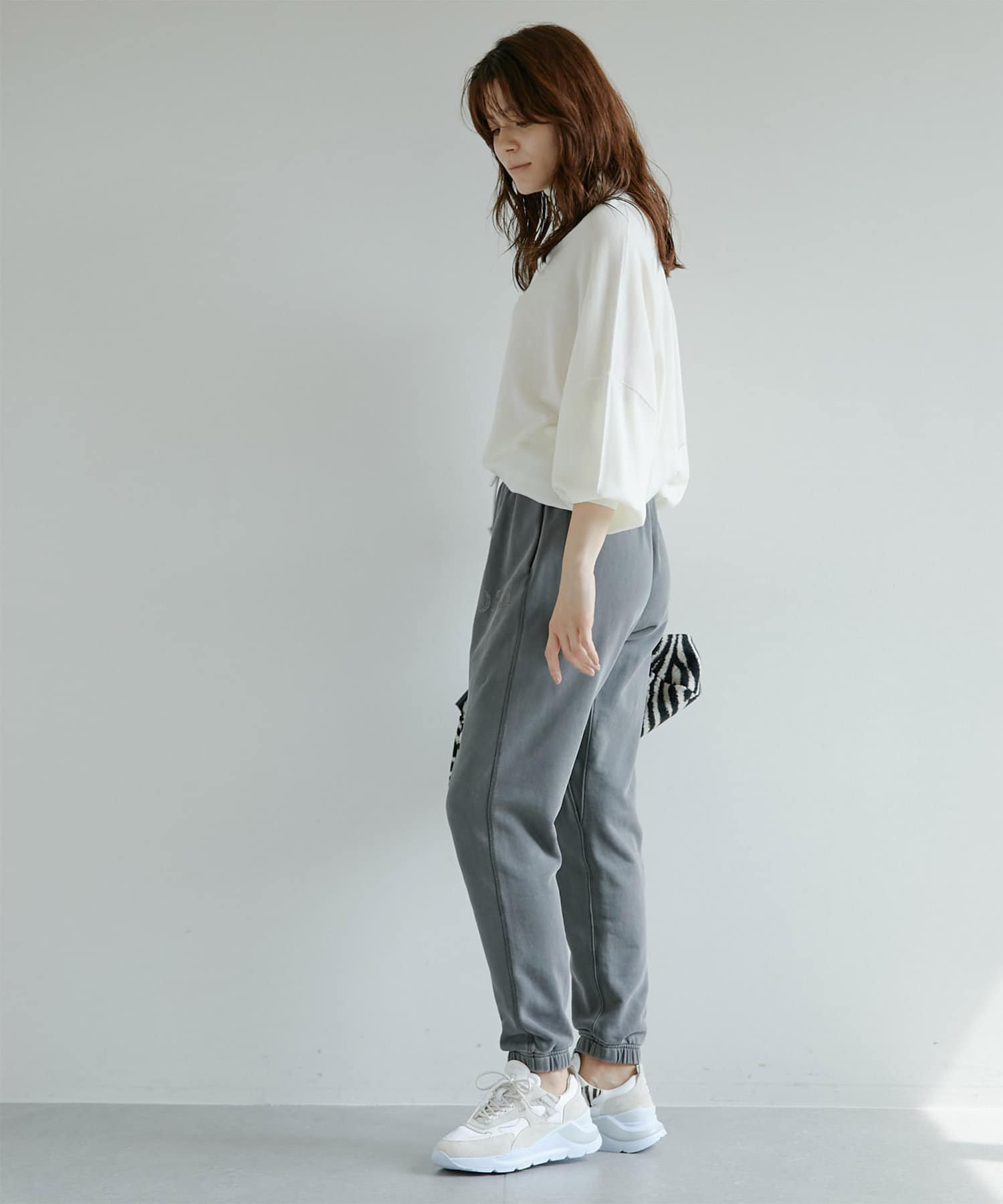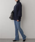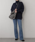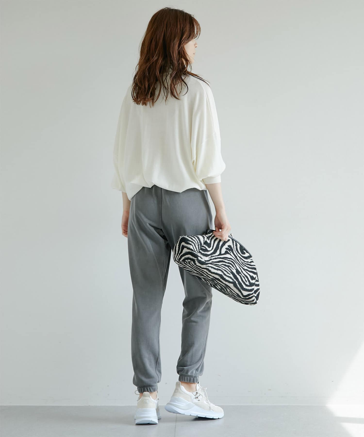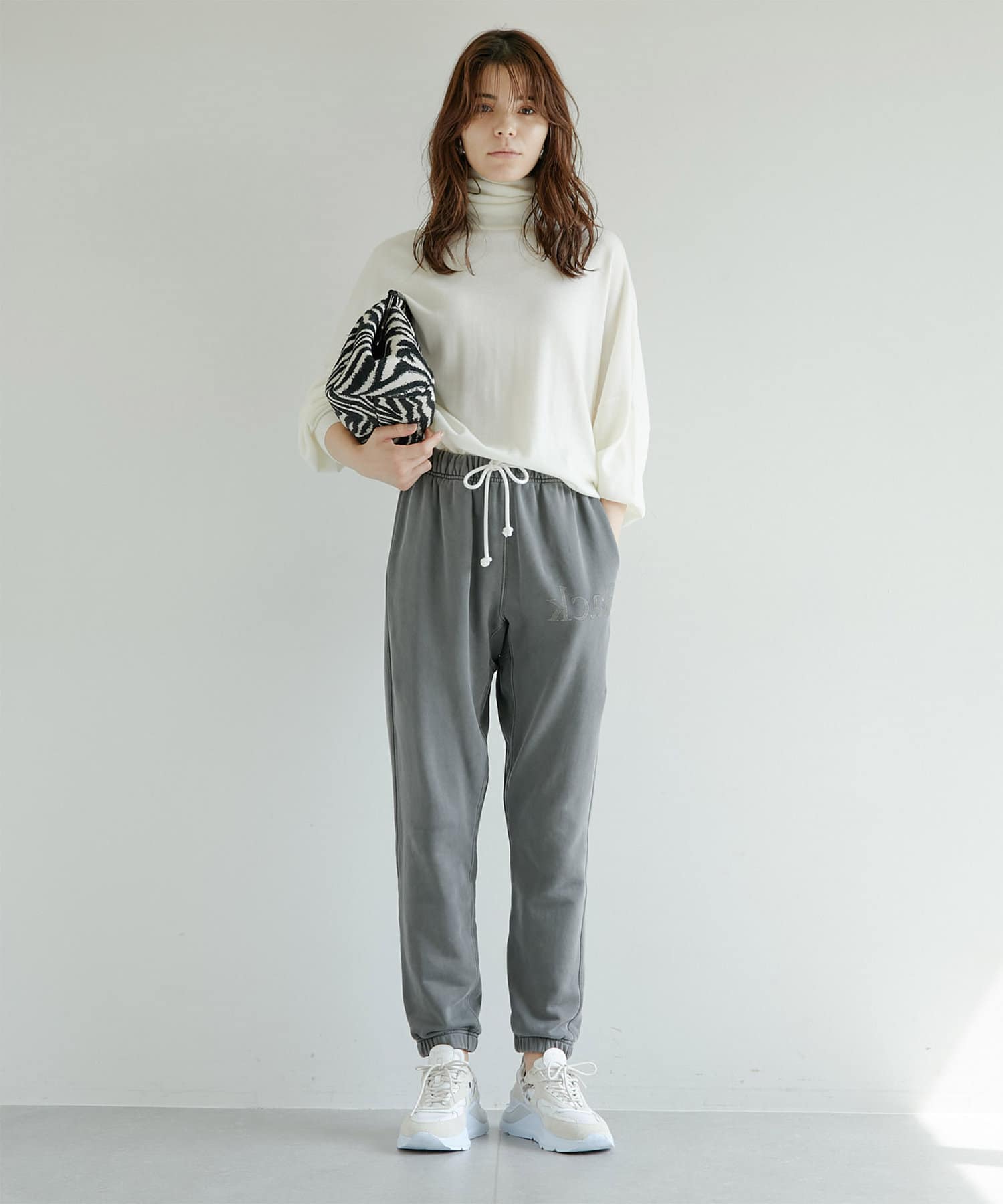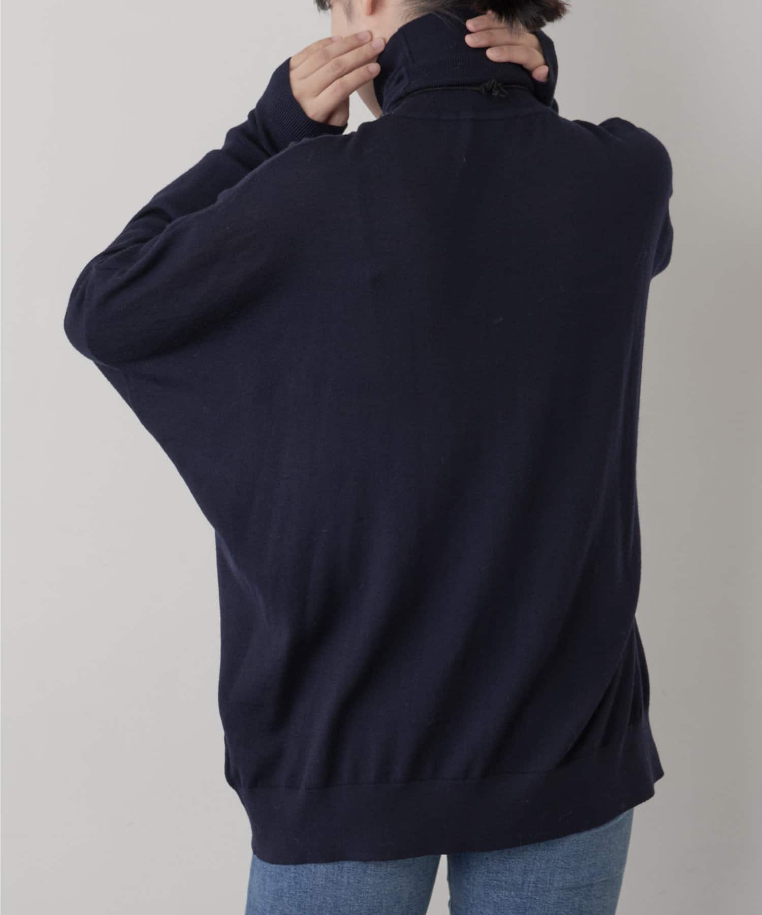 ややワイドに作られたゆったりとしたデザインが気になるボディラインをカバーしつつ、きゅっと絞られた長めの袖口リブや、ネックにぴったりと沿うタートルネック、リブ切り替えの裾がメリハリのあるシルエットを演出してくれます。