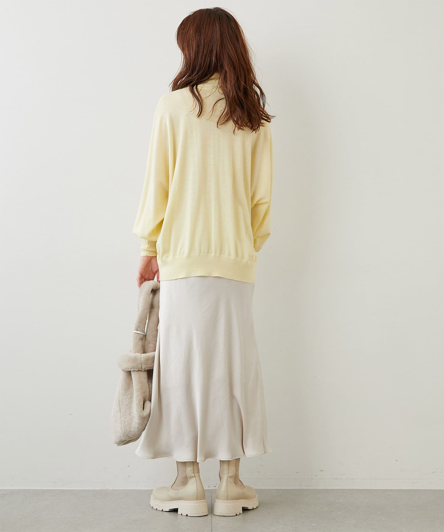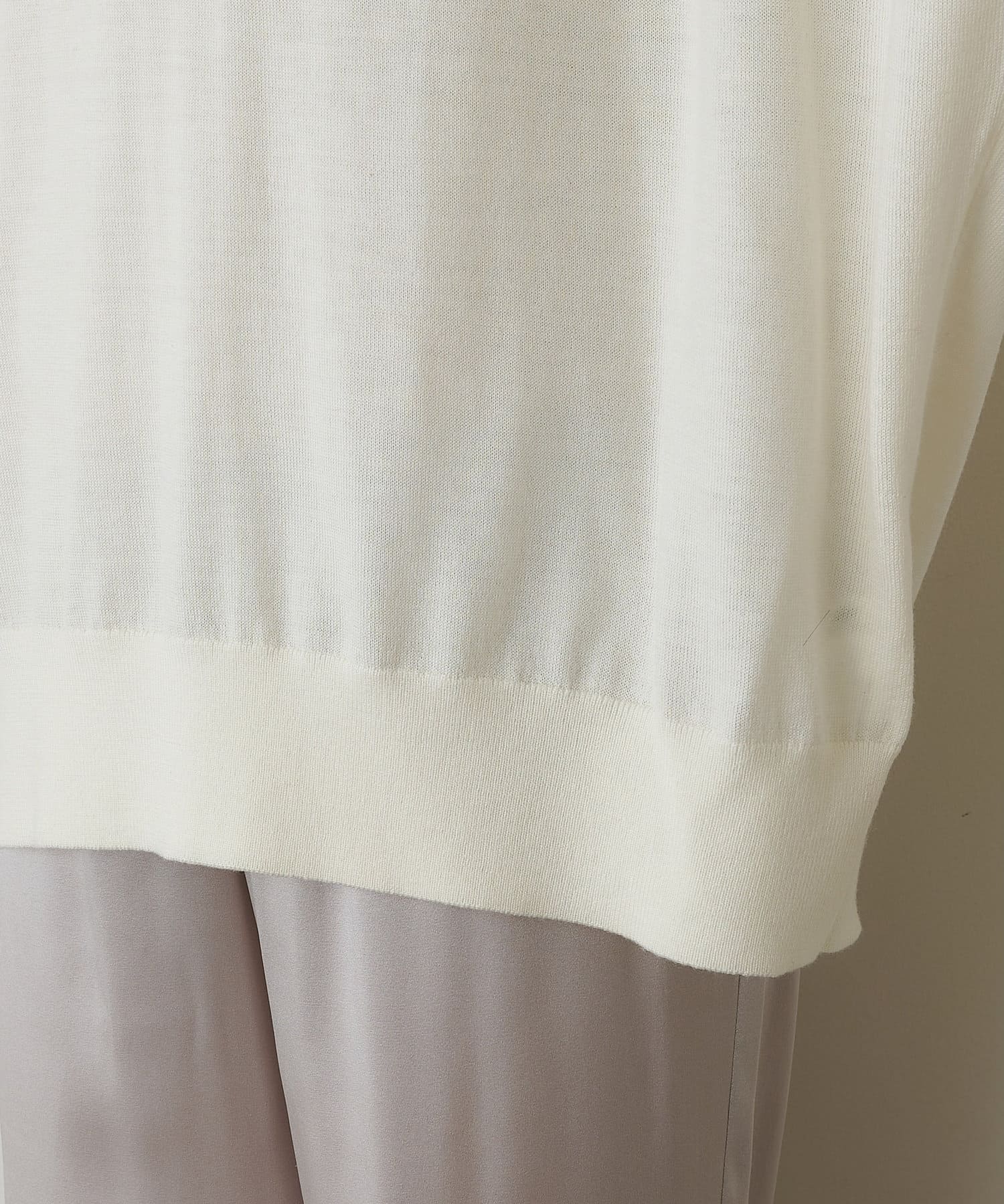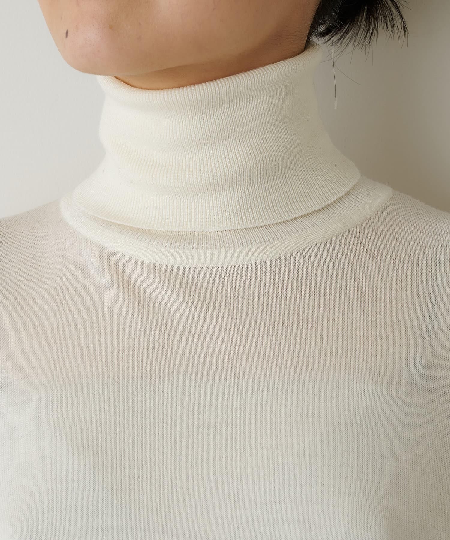 さりげないシアー感が美しく、ボディラインに程よく馴染むハイゲージの滑らかな質感が女性らしいシルエットを演出します。