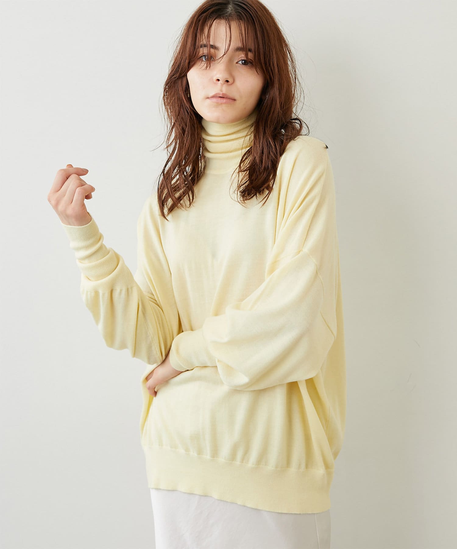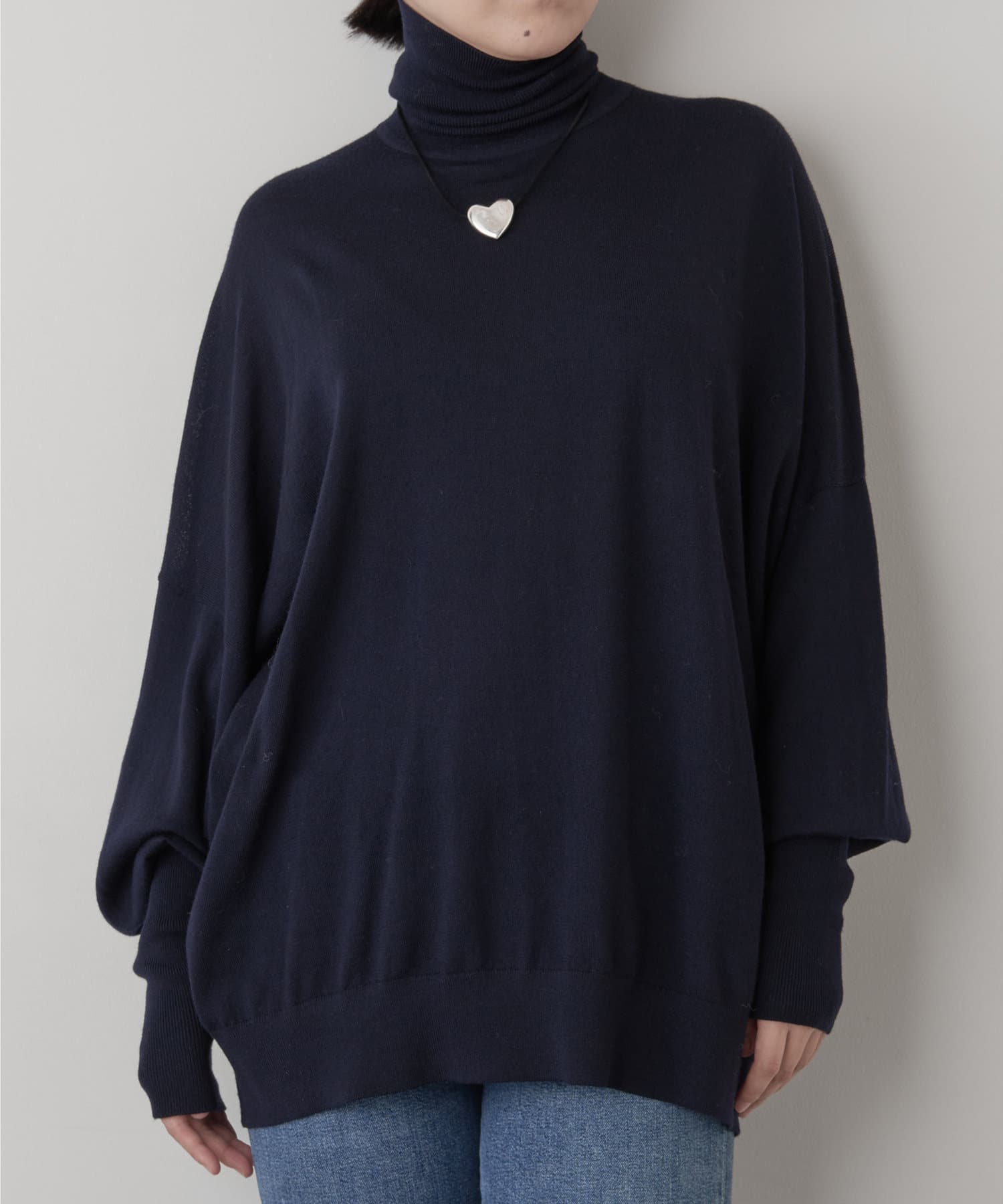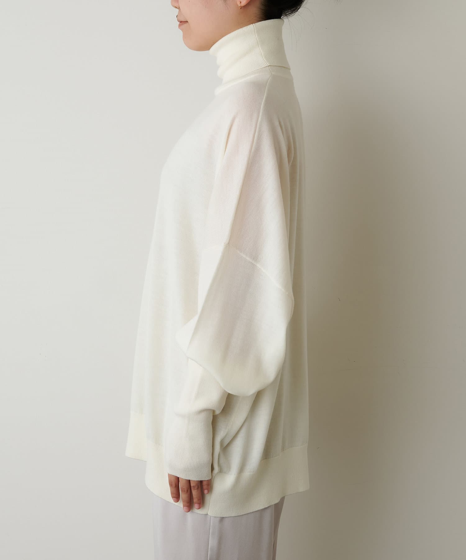 ワイドなシルエットながらもすっきりと洗練感のあるタートルネックプルオーバー。
