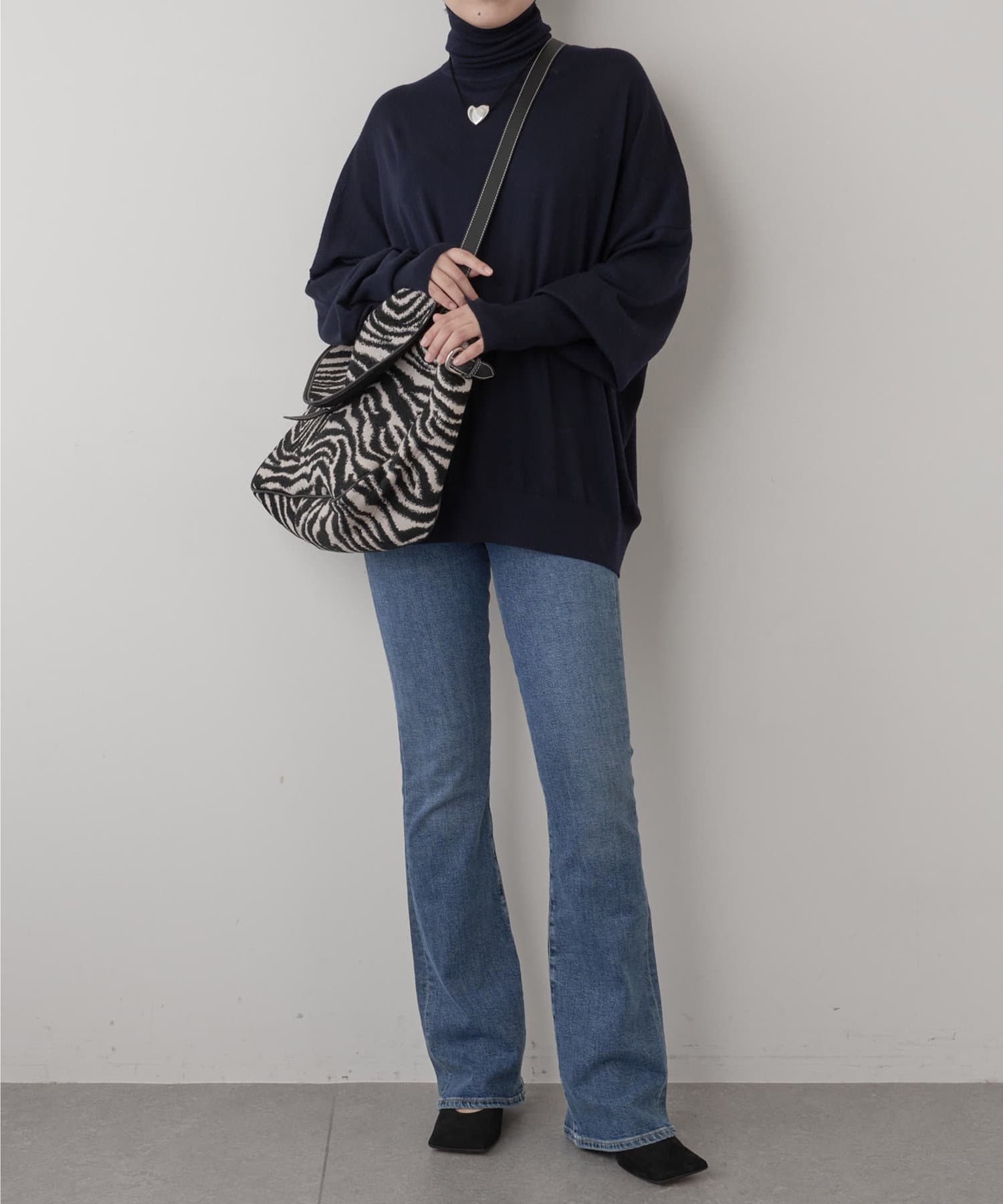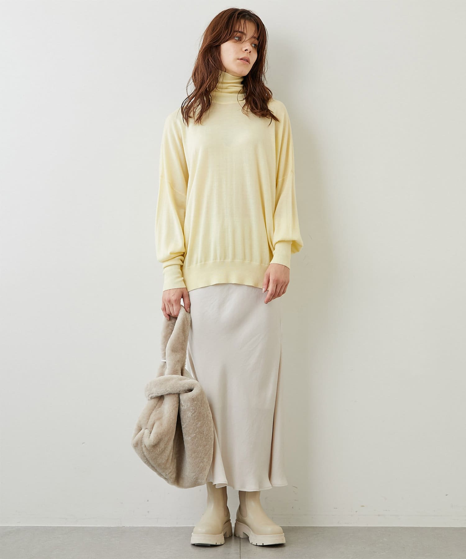 メリハリのあるシルエットが魅力のシンプルタートルニット