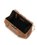 丸みのあるフォルムとレザーのツヤ感にゴールドのパーツがアクセントになった、リッチ感のあるアイテム。