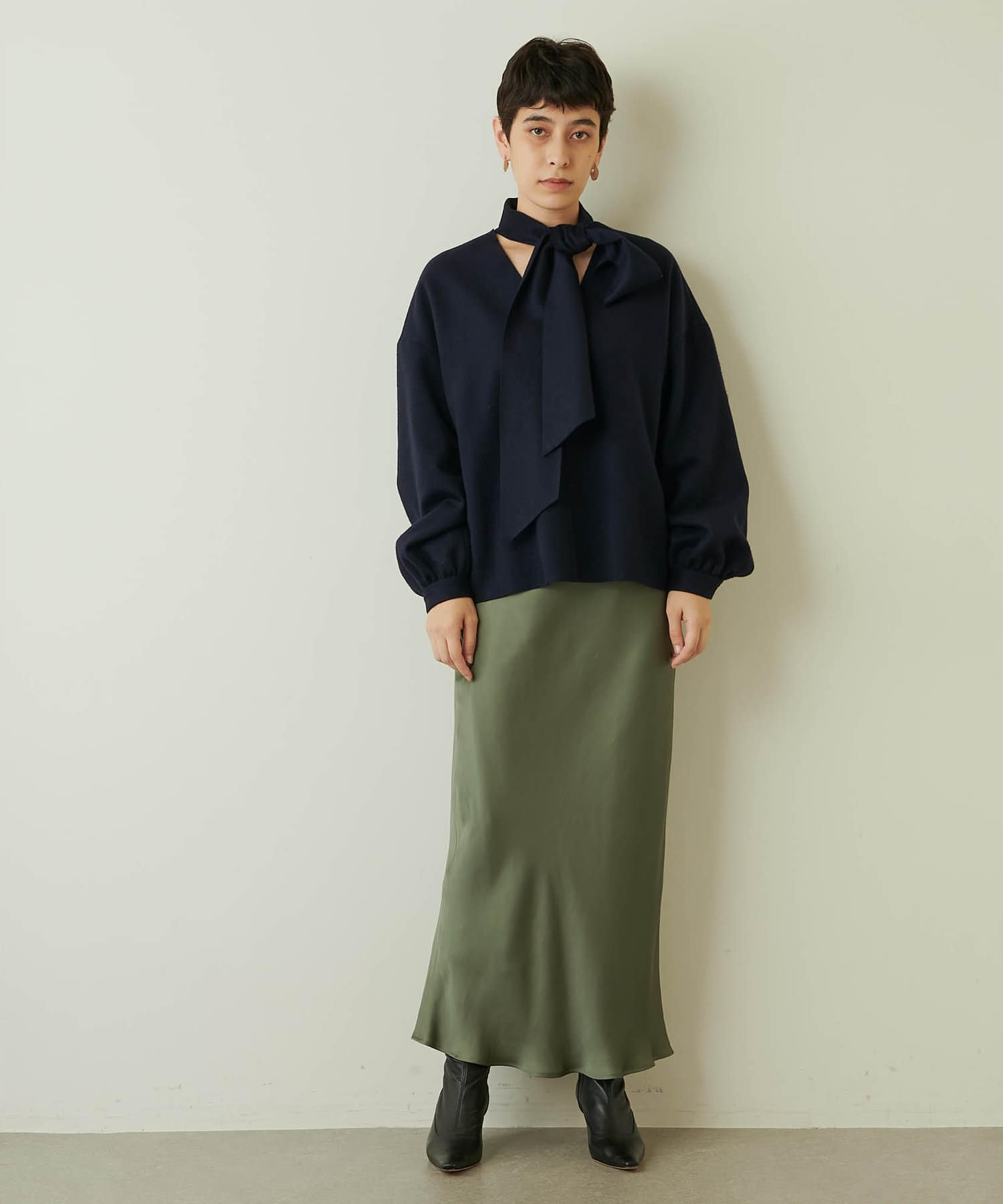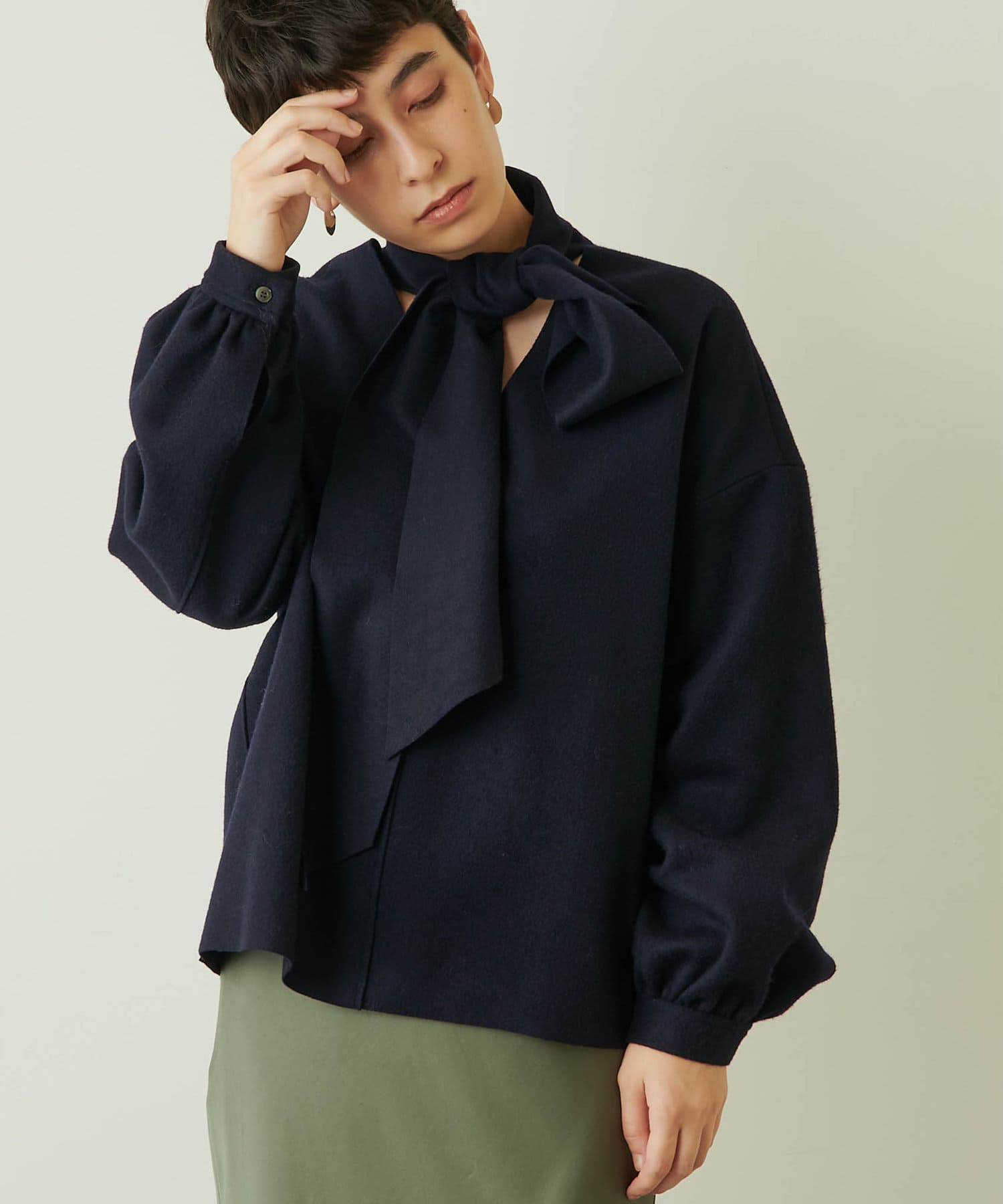 ■ボータイを結んだりラフに垂らしたり、アレンジ次第で様々な雰囲気を楽しめるデザイン。