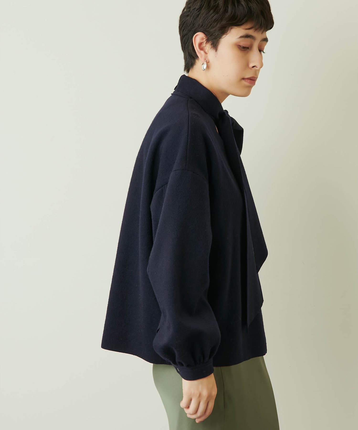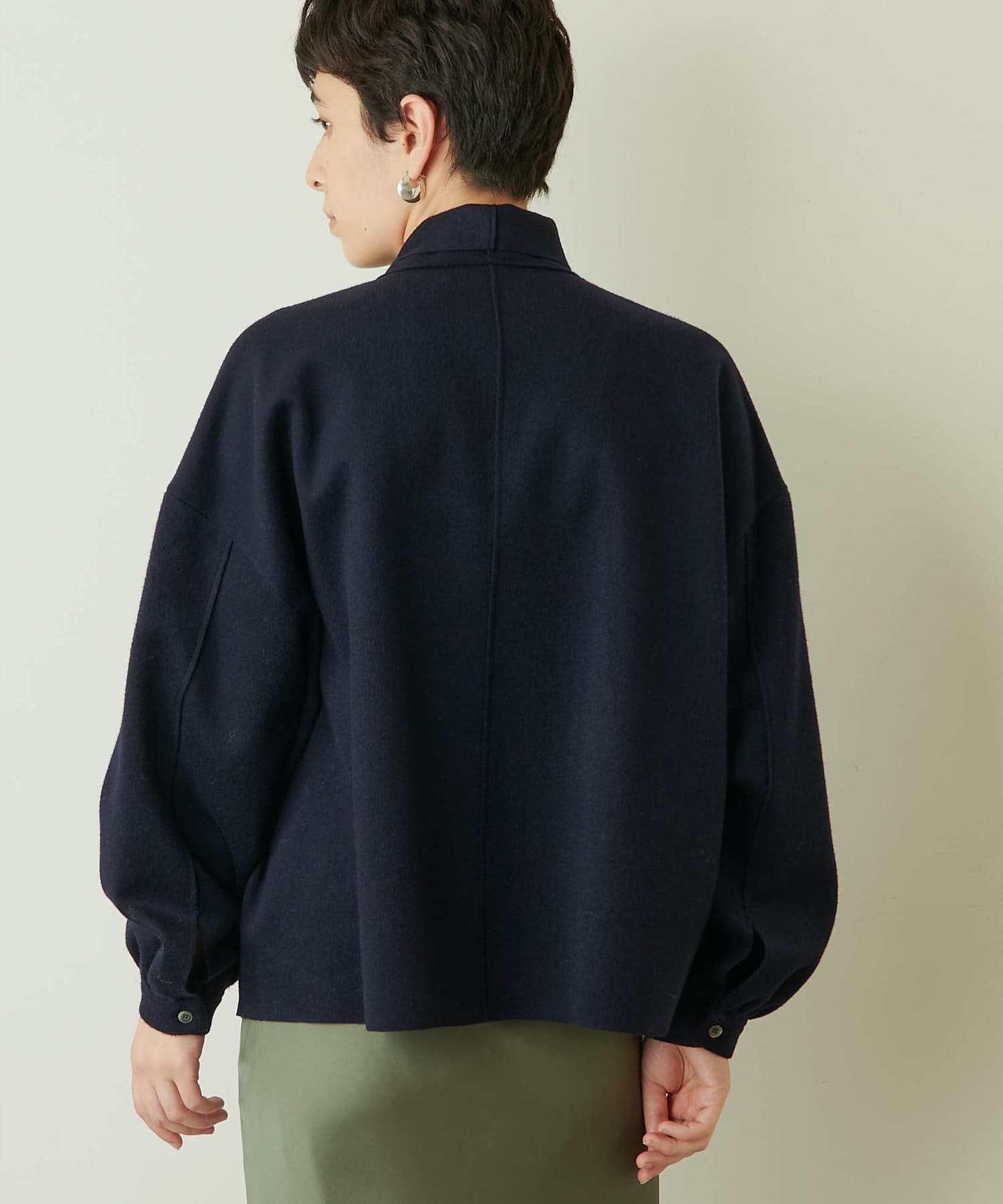 ■コンパクトな着丈や袖のボリューム感など、一枚で様になるこだわりのディテール。
